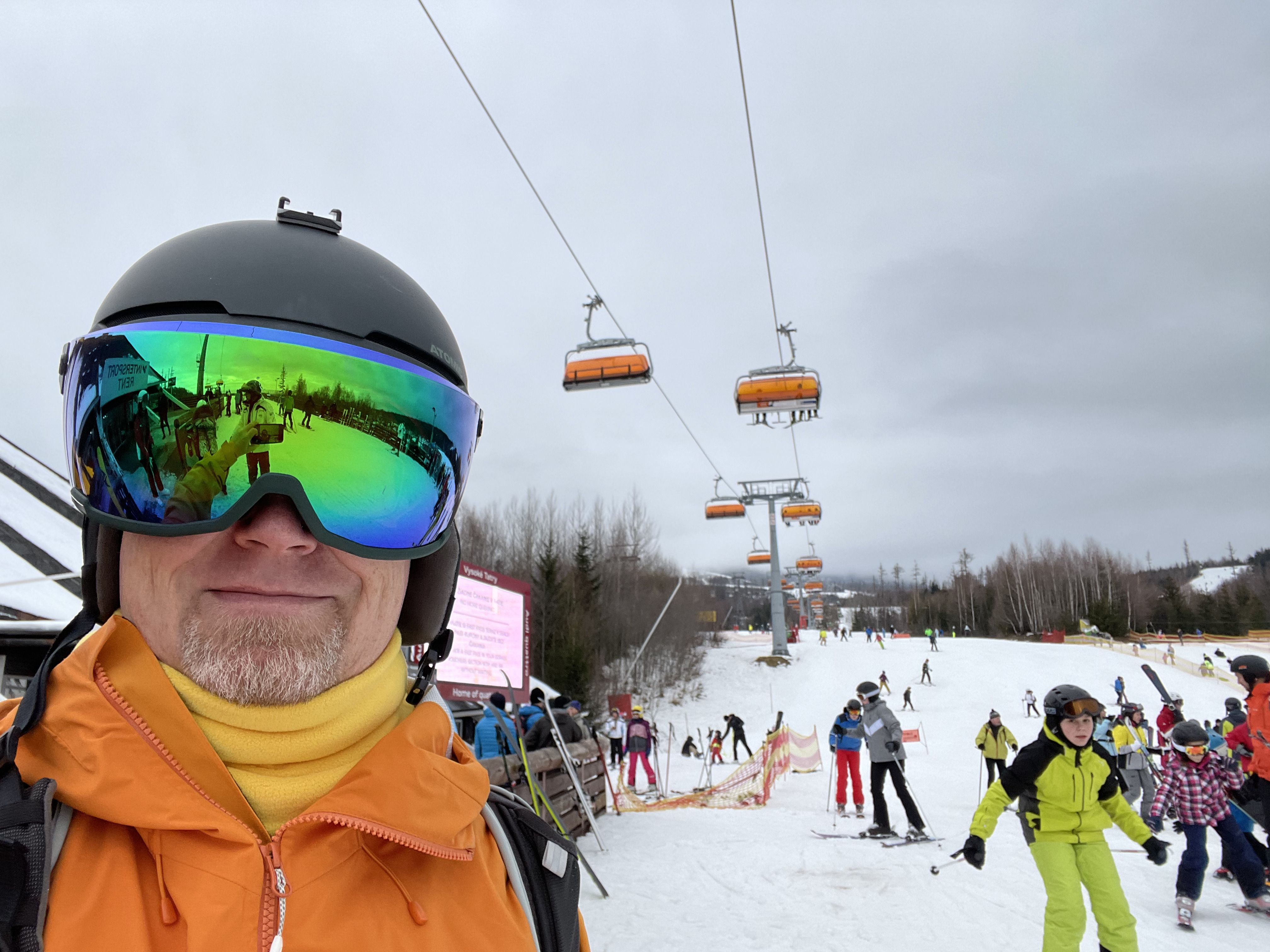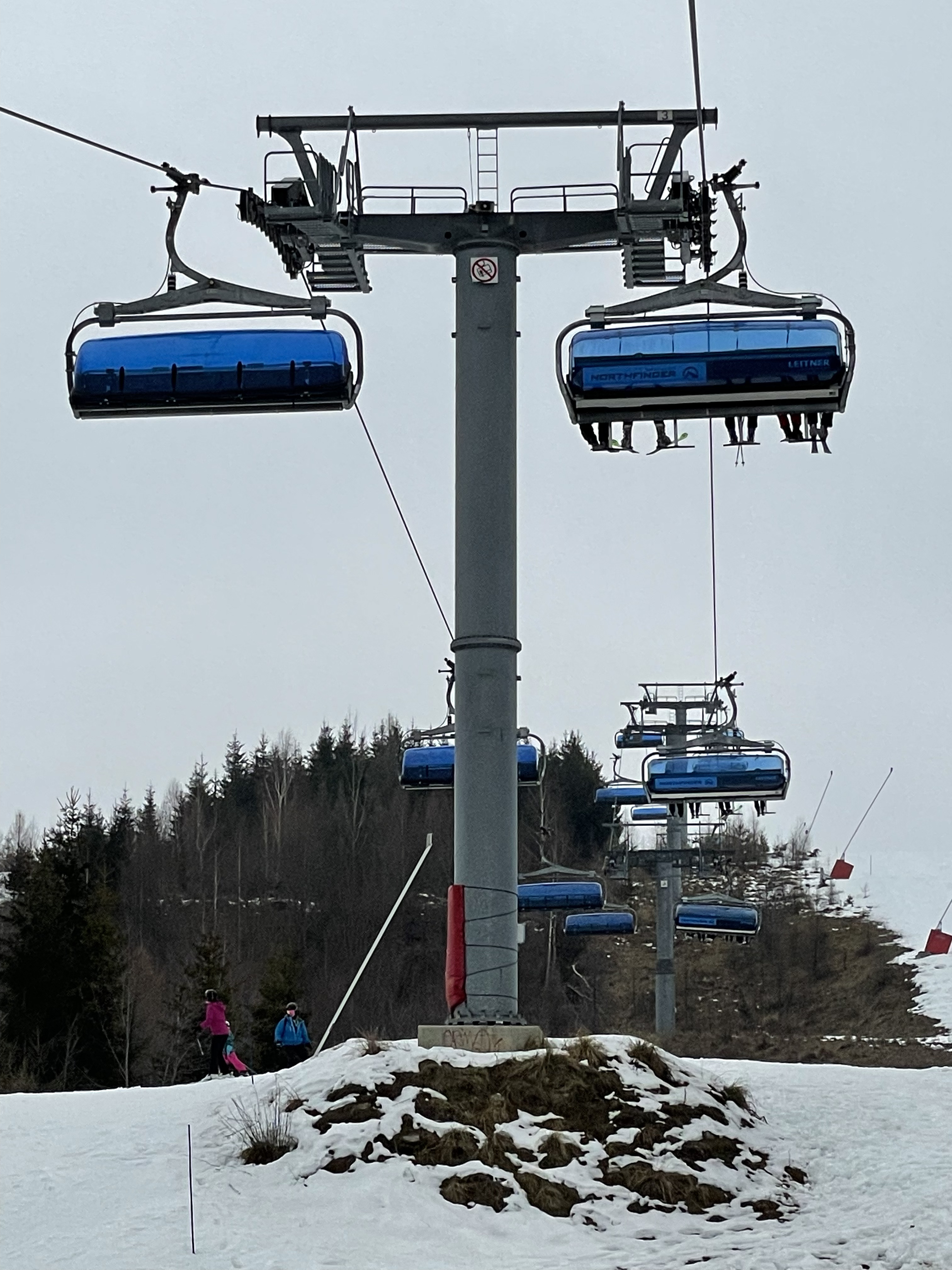 We are at Tatranska Lomnica, a short drive from the Polish-Slovakian border. This is the highest Slovakian ski resort, at 2196 meters. And today that has caused the fog to set on highest parts of the mountain, so we actually have to skip the topmost lift. But the rest of the mountain is open.