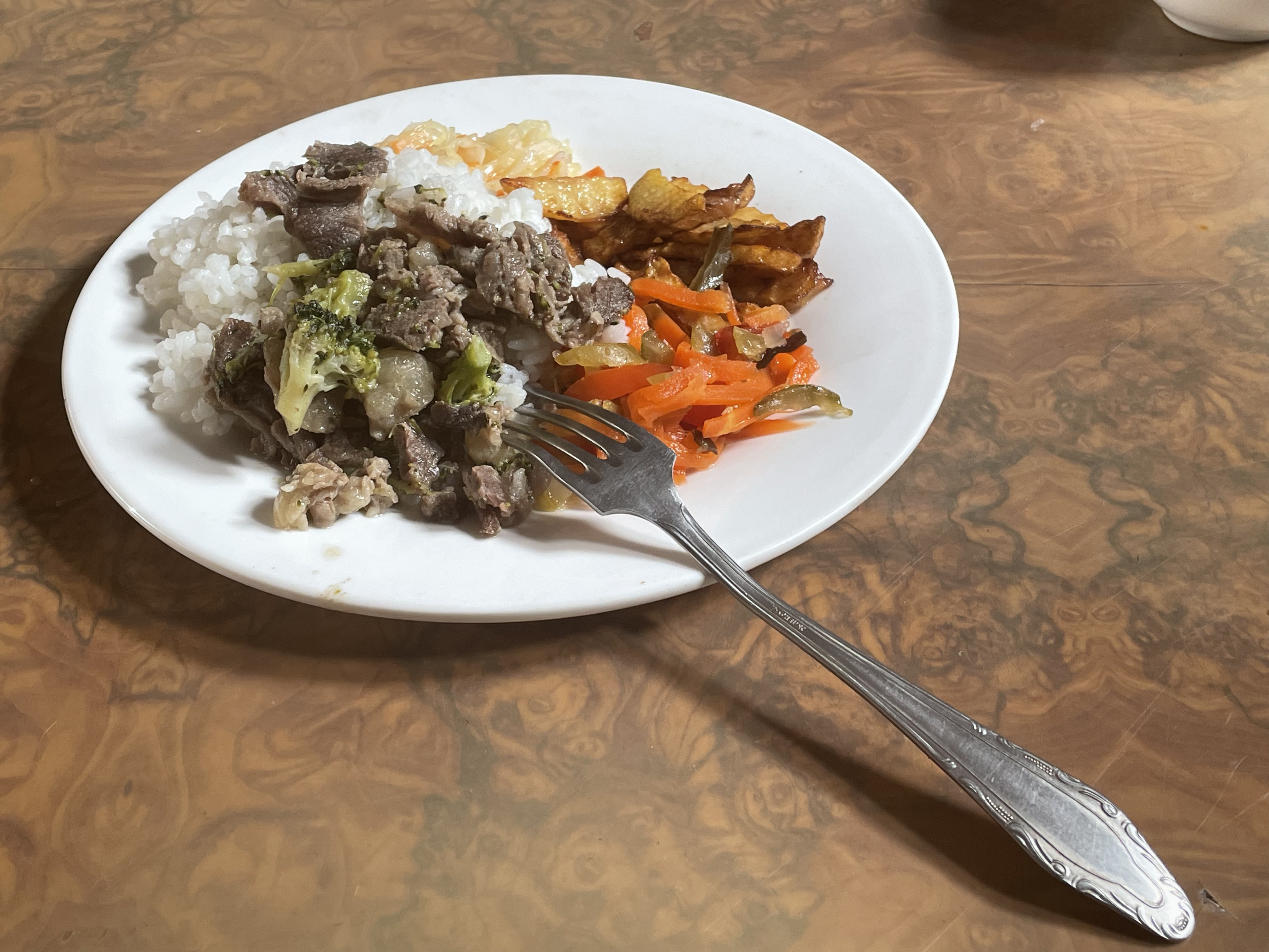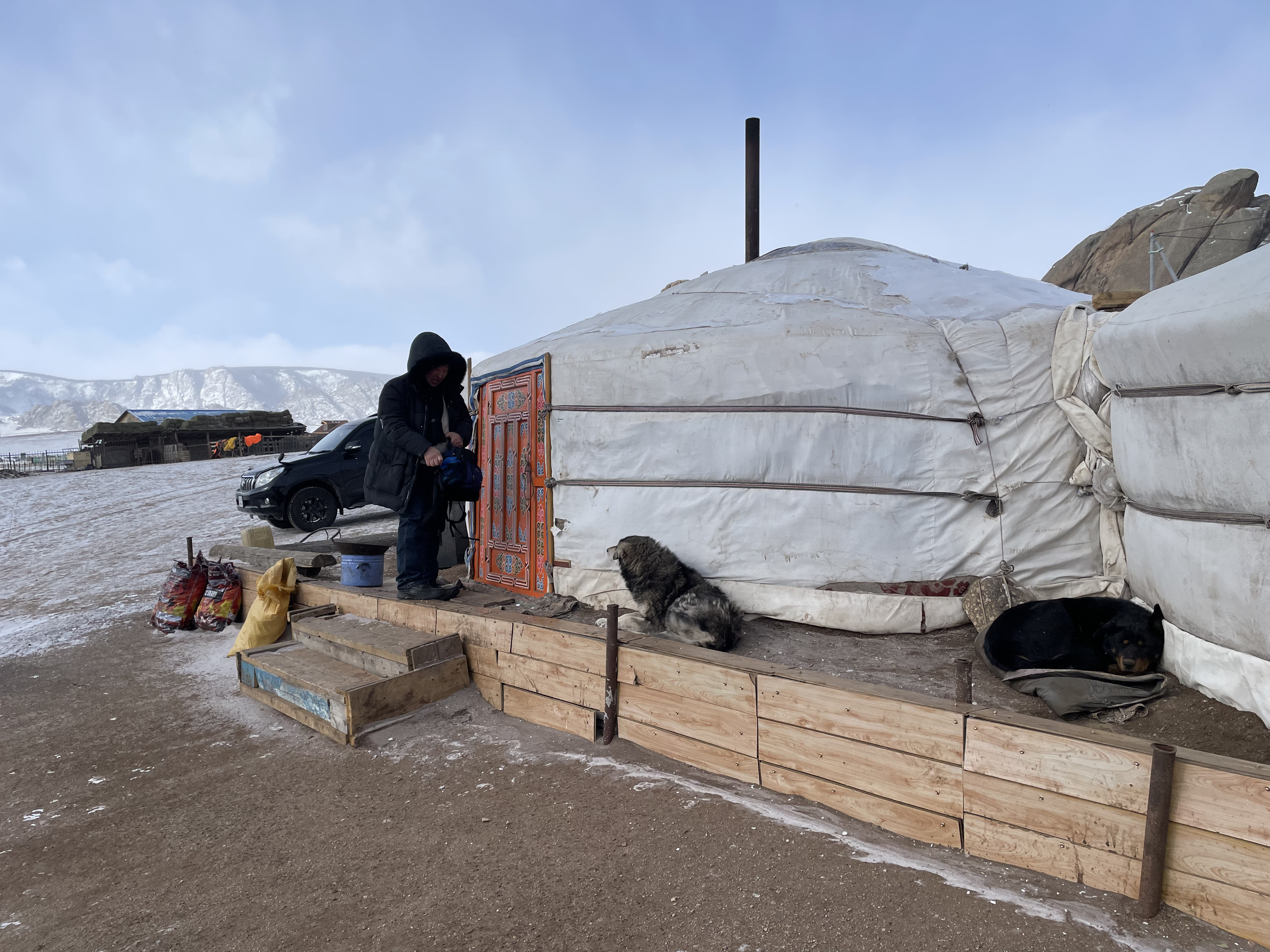Anyway, it was a very nice walk in the mountains, and I saw some smaller cavelets or mini-caves along the way, and spectacular red rock. And met a very nice family living in a Ger (yurt tent), and had a superb lunch, though of course all meals are probably superb after a roundtrip 10km walk in the mountains :-)