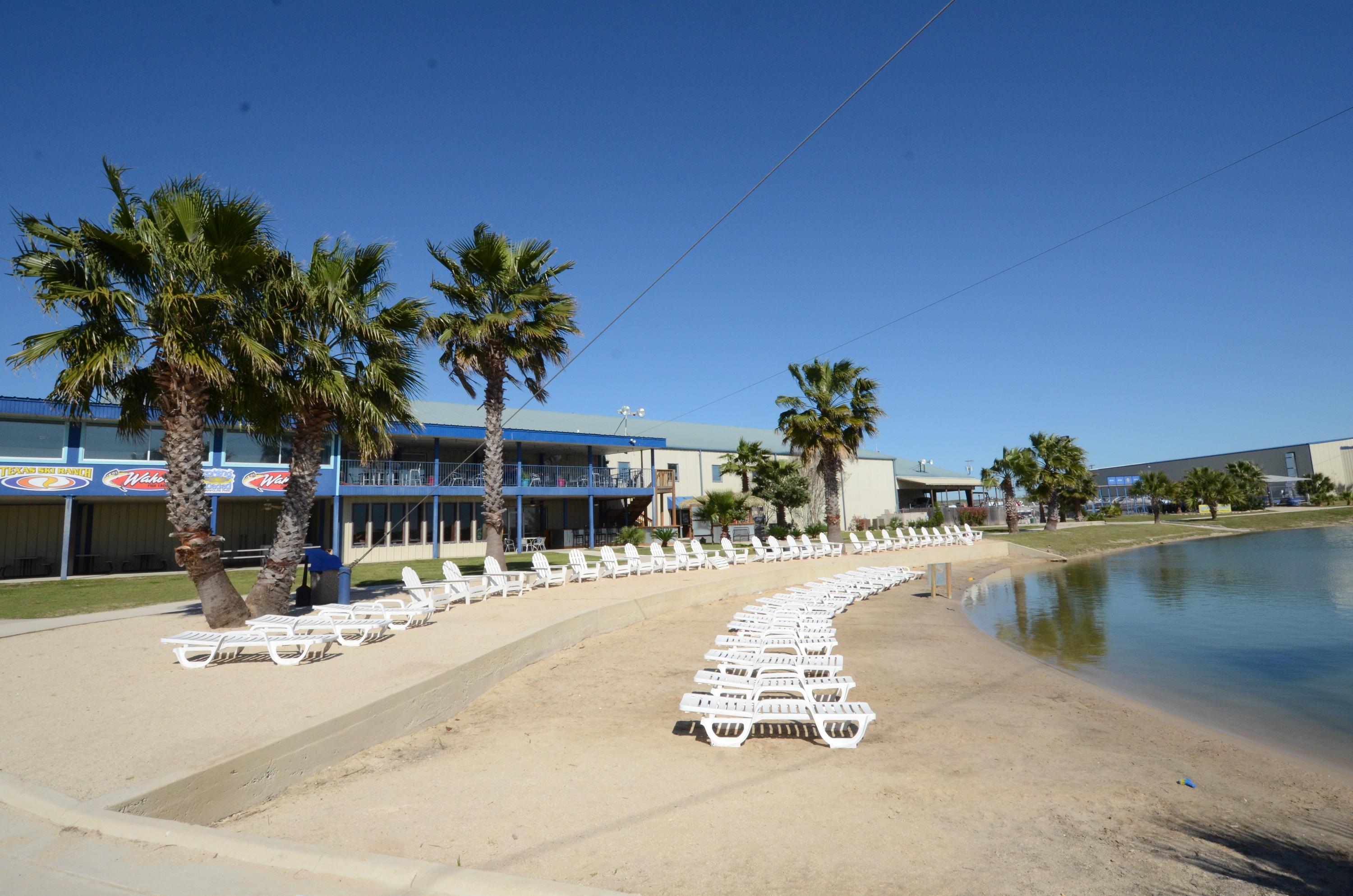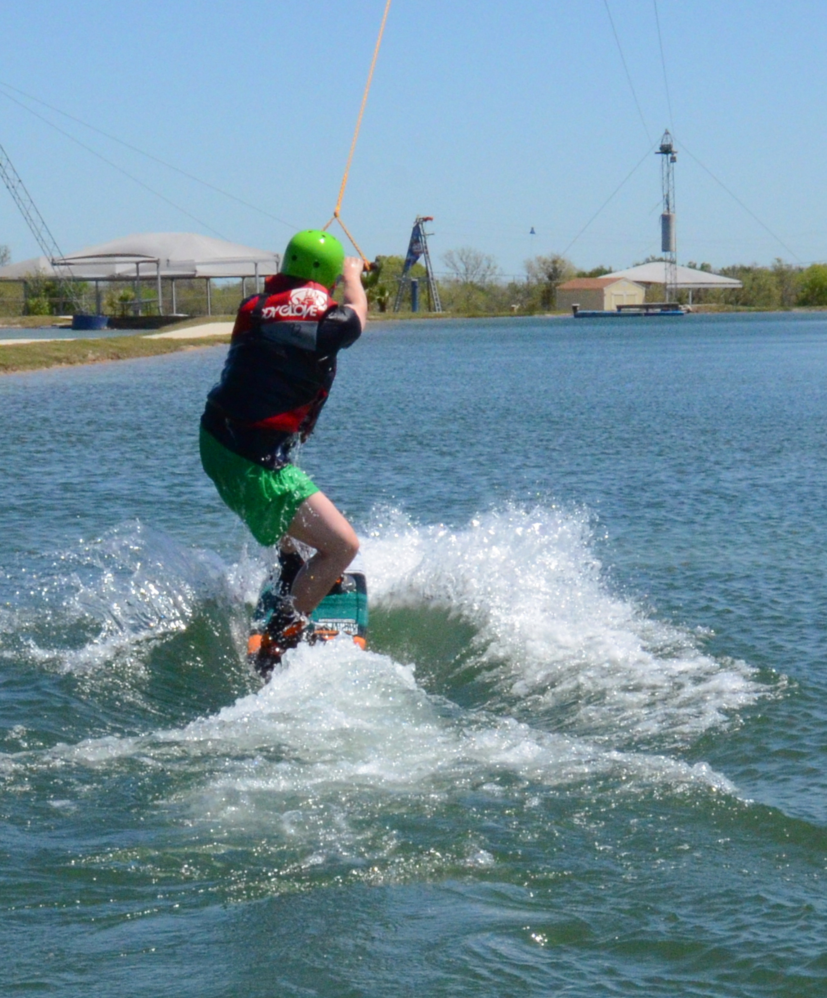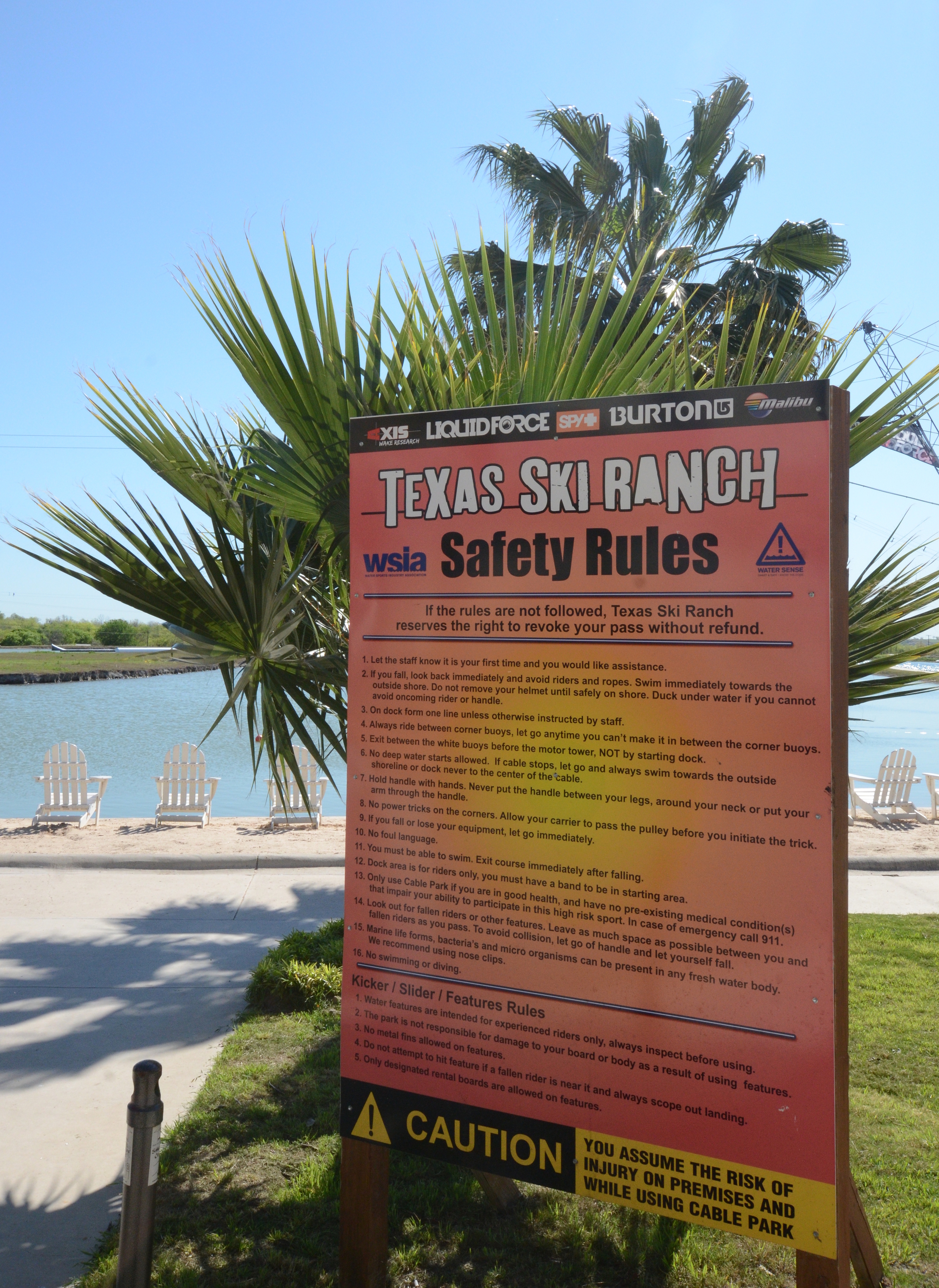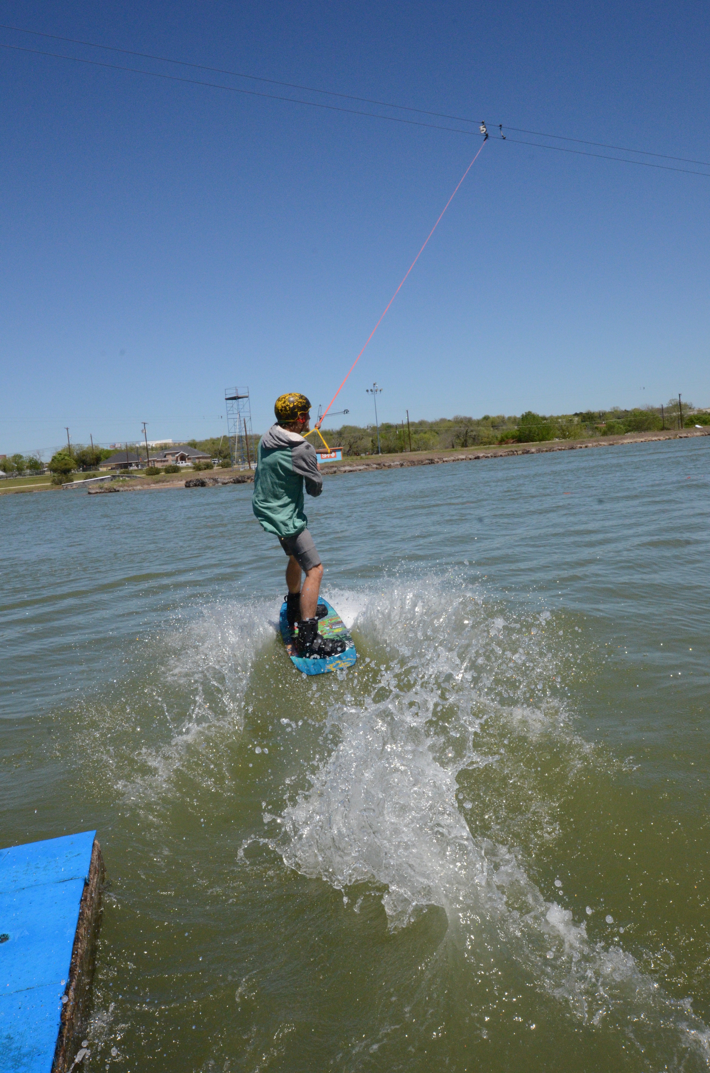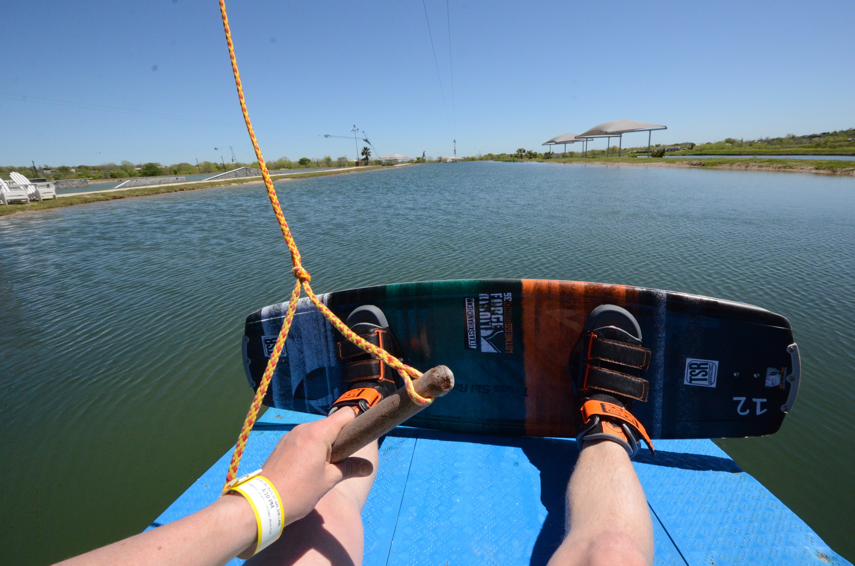 But what would I find from the ranch? The ranch sports a small hill covered by blue plastic, cables for wake boarding on a small pond, climbing wall, boating pond, and beach chairs. And of course, friendly Texans and sunshine. Not to mention cowboy hats and boots (on me, at least).