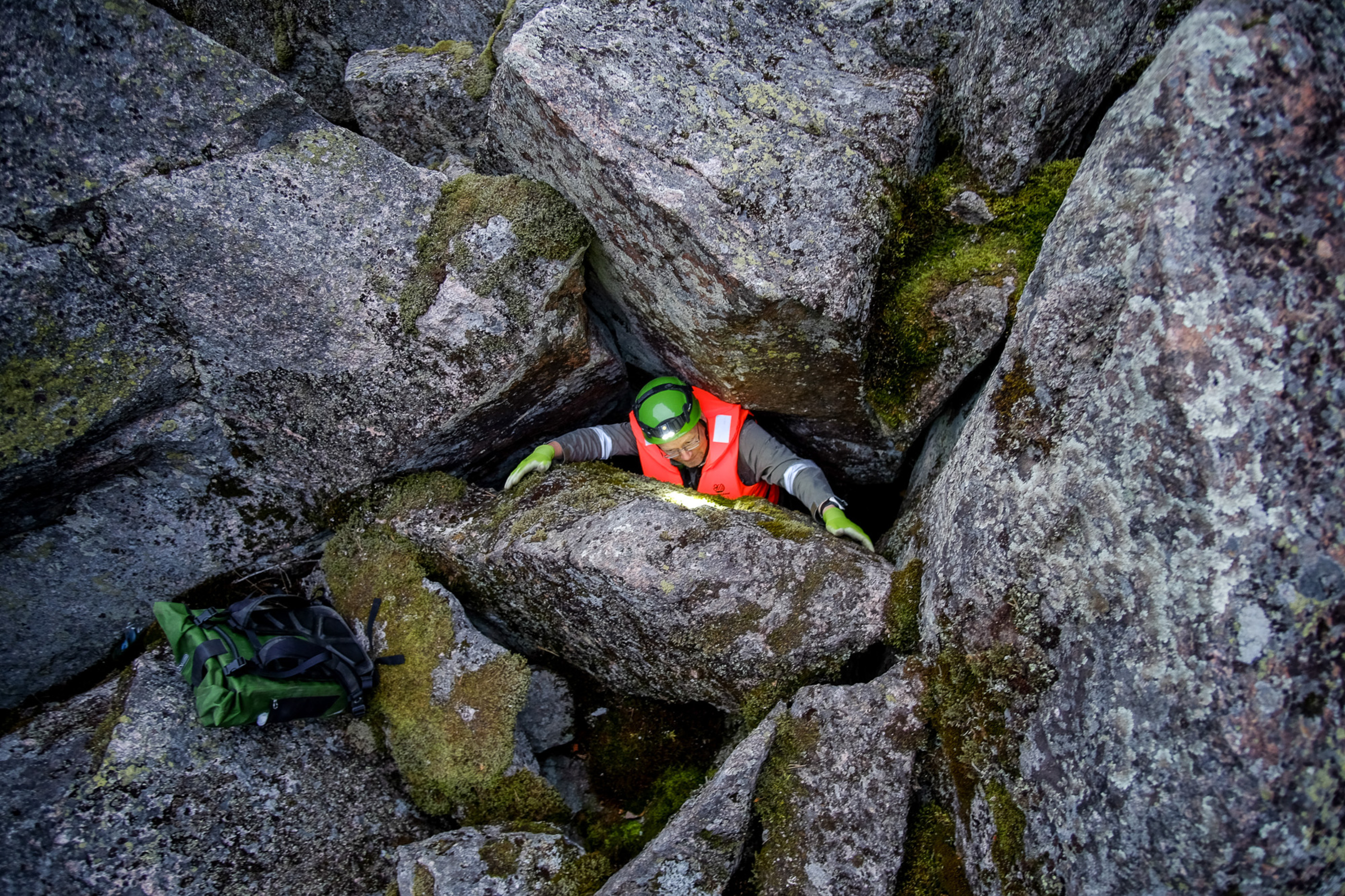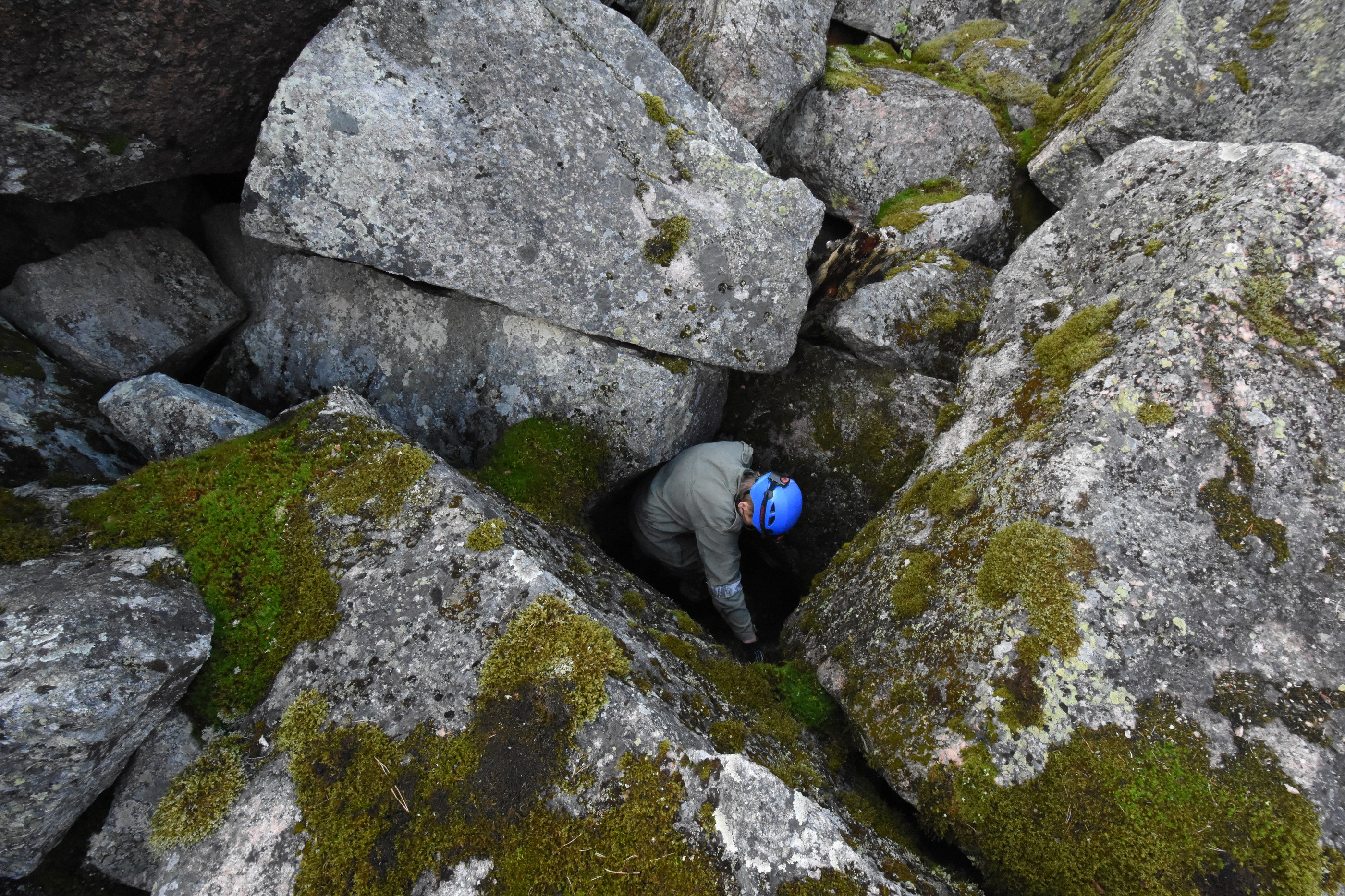 One of the problems is that there are often a large number of routes, between and under the rocks. And a large number of entrances, with light being visible from inside the cave in several places.