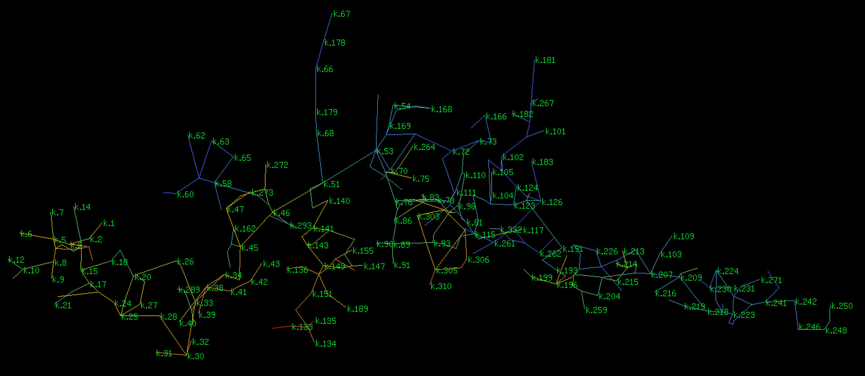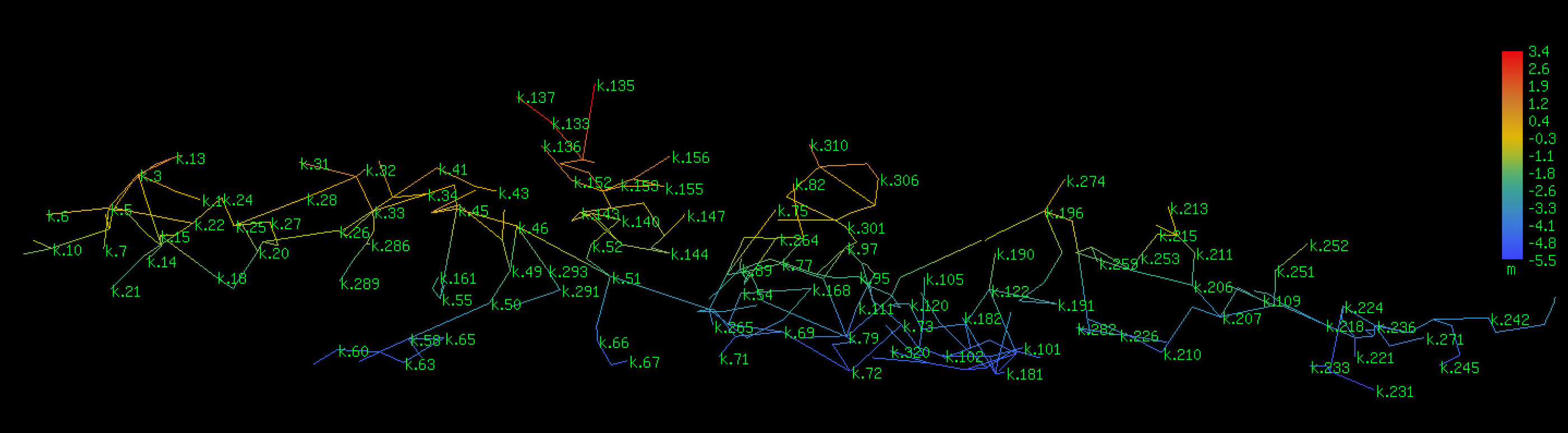 The full survex model file can be found here. The Survex software can be downloaded from here. In our case, the Survex file itself has been automatically generated from a new description language "Cave Form" that I developed. The source file for this description of the Korkberget cave can be found here, and the necessary CavForm2Survex software here.