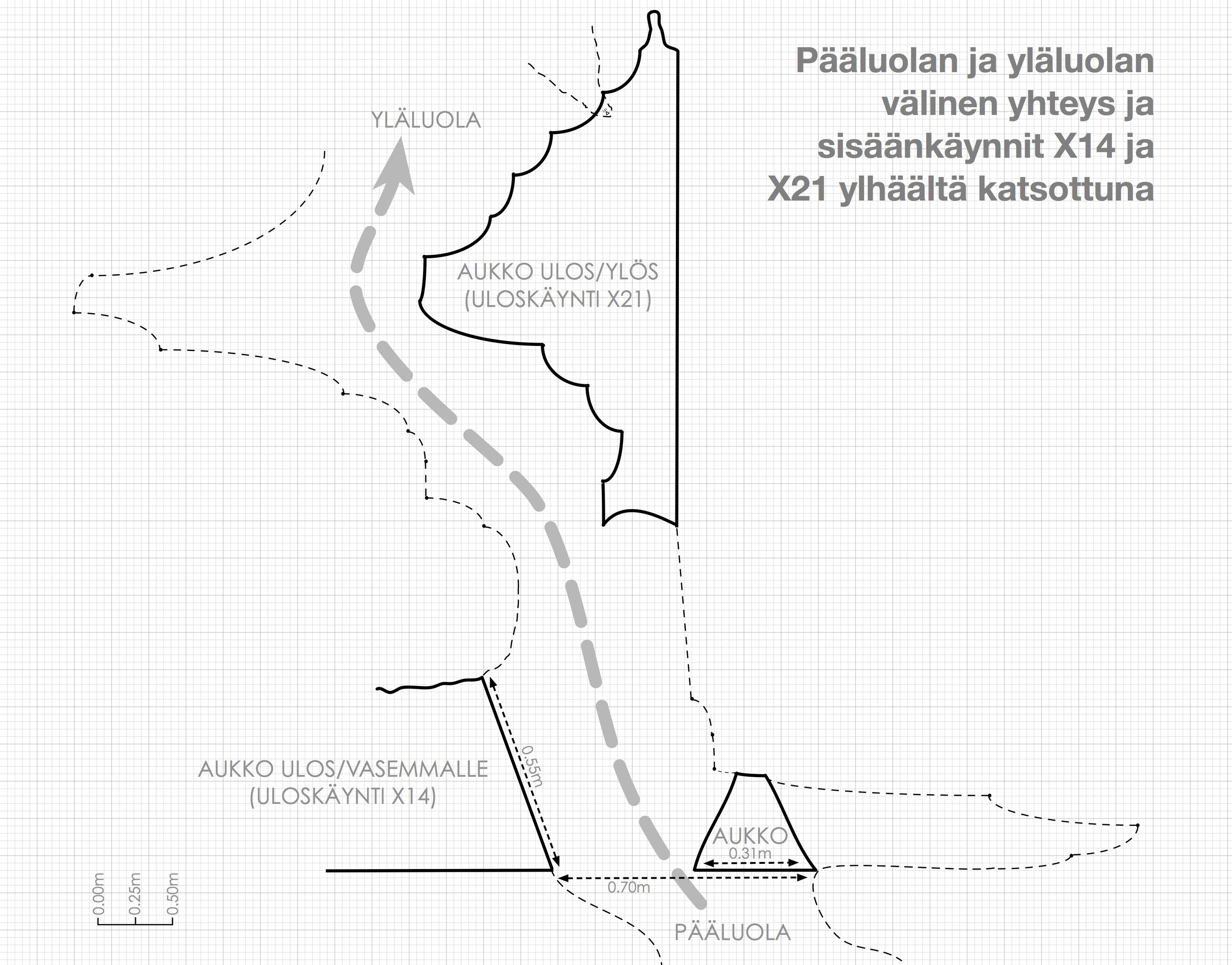 Here is the connection from Pääluola to Yläluola as seen from above: