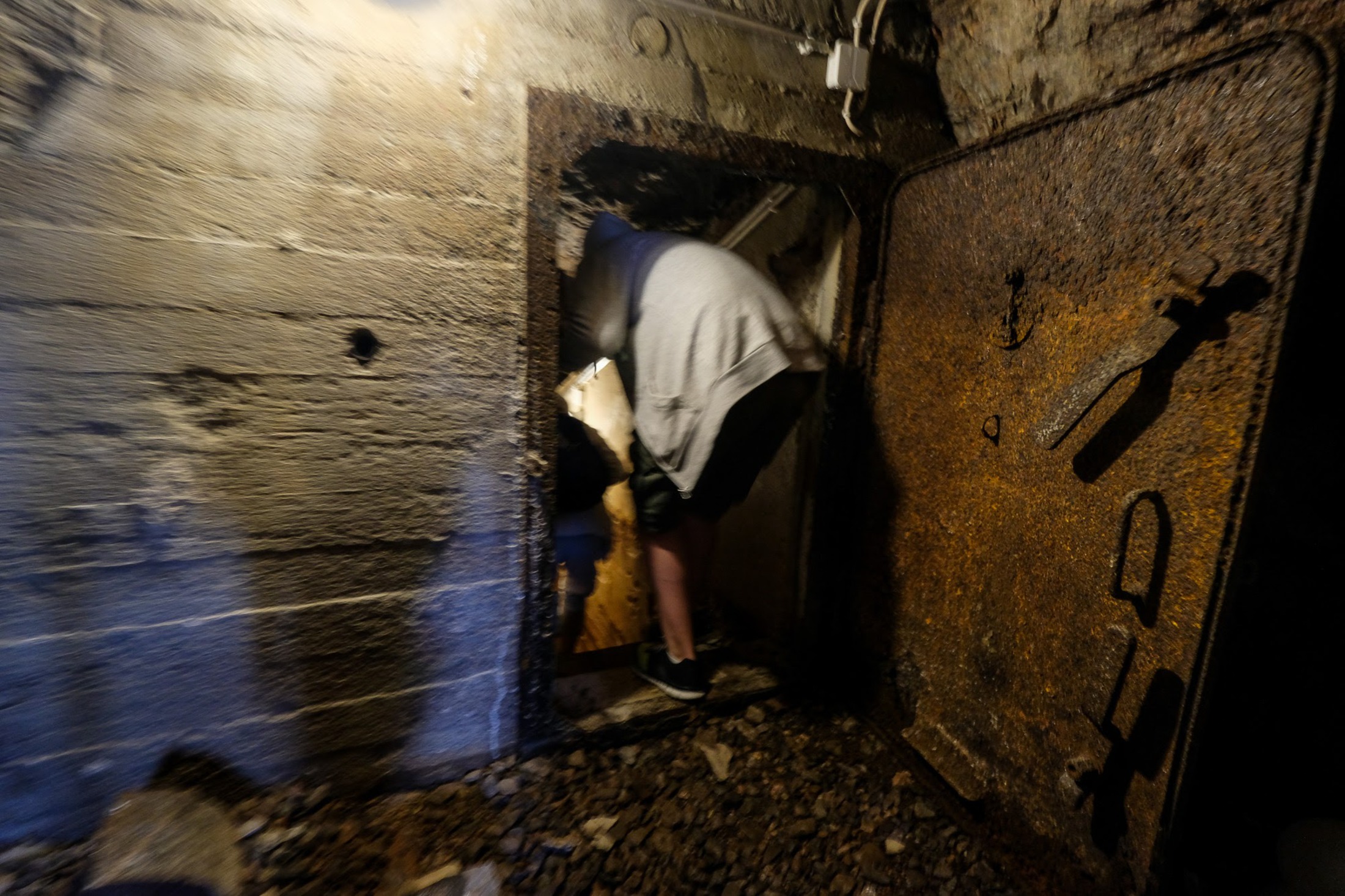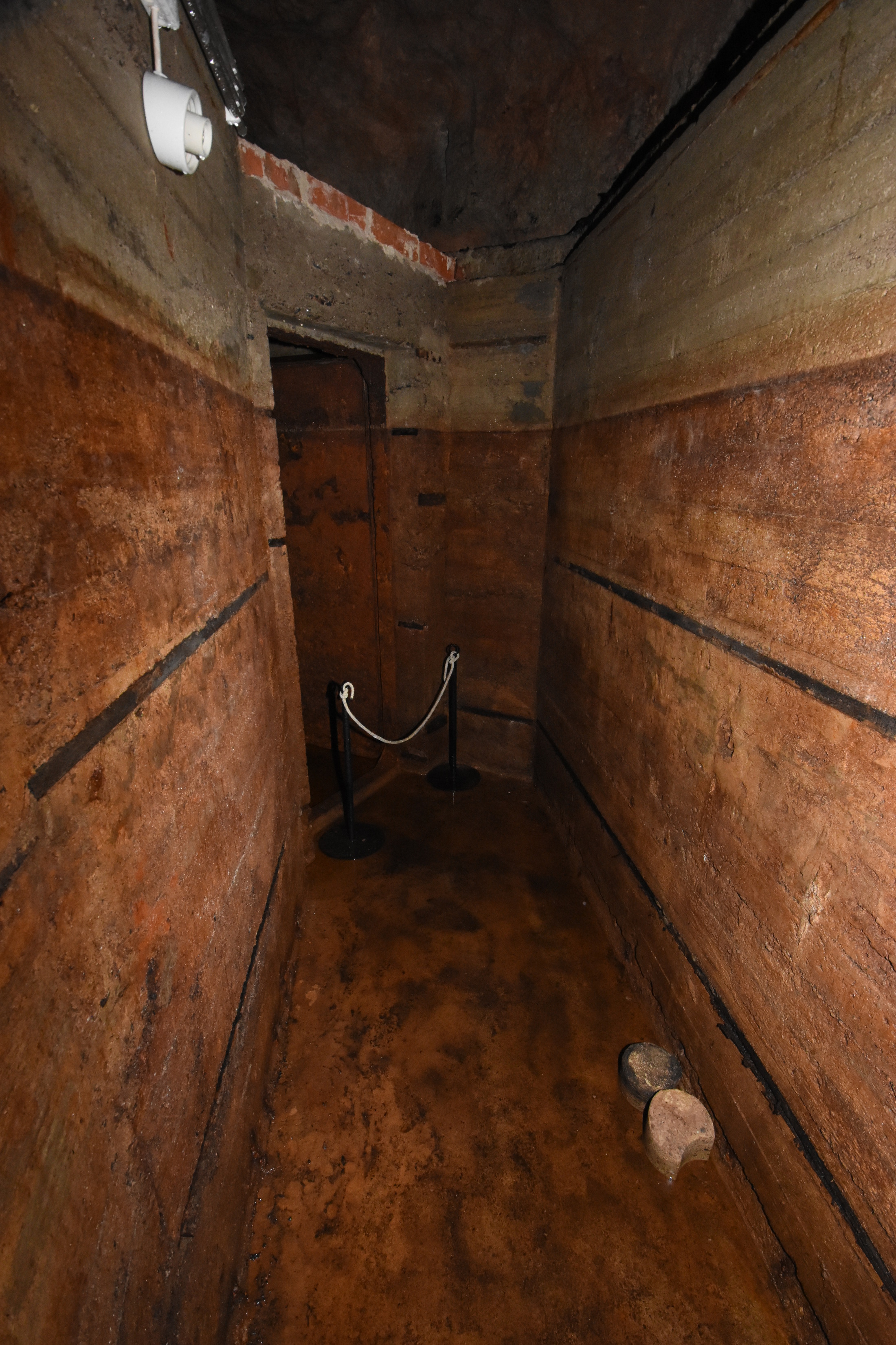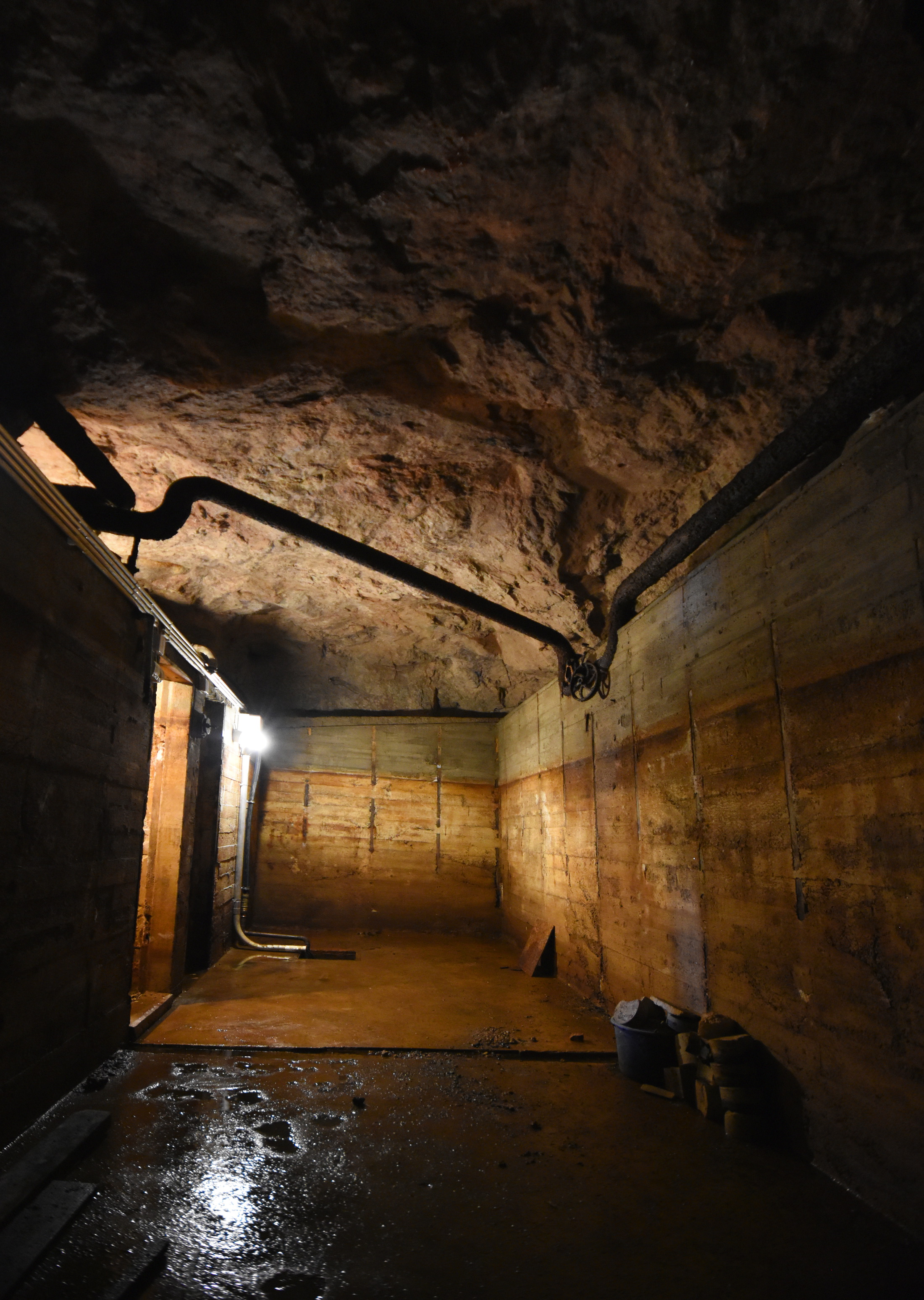 A damp place. In the recent rains it had flooded. And earlier before they started the renovation, it was half-filled with water. Due to damage, the internal (wooden?) roofs of the bunker rooms no longer exist.