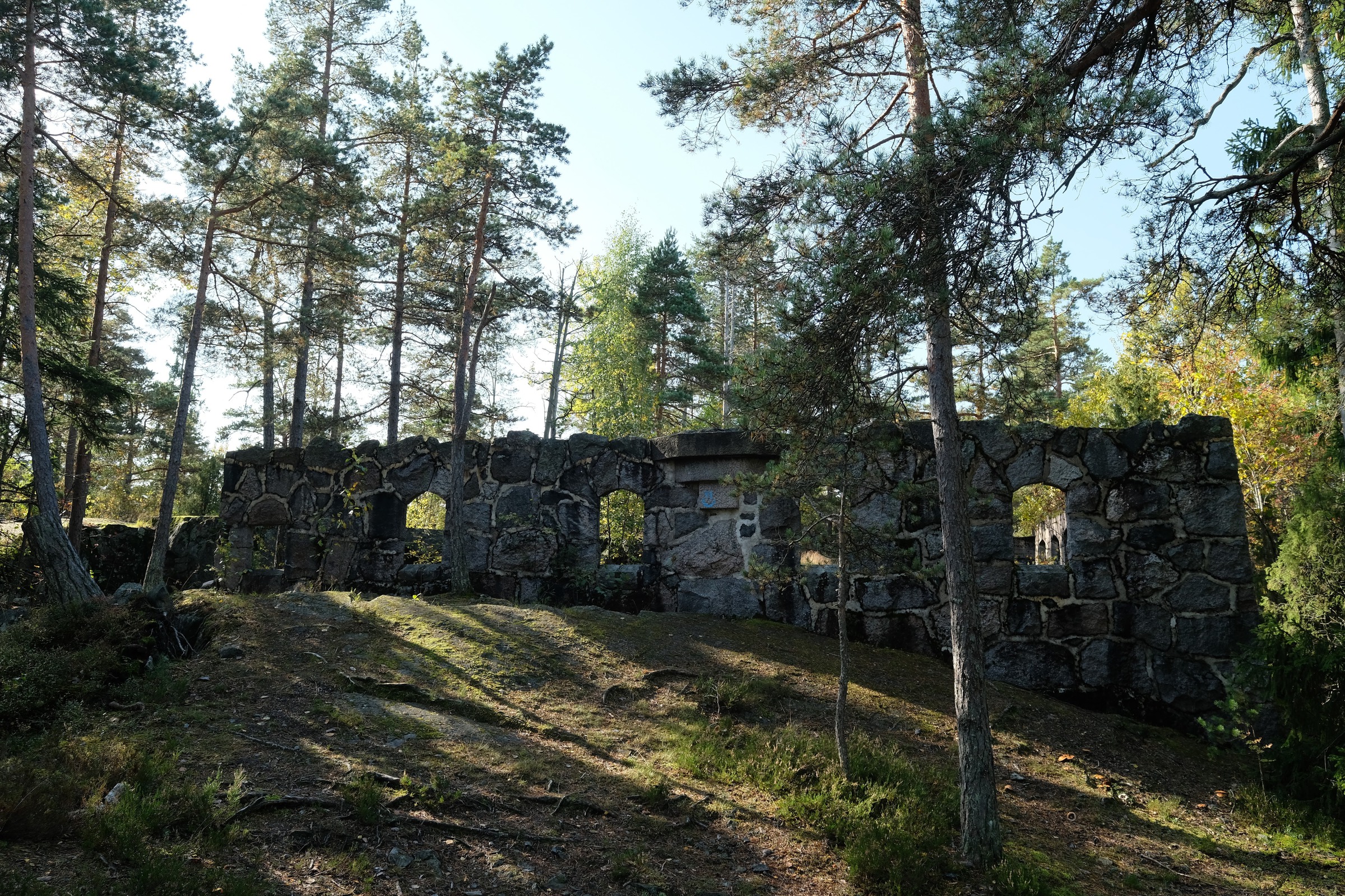 Franz Stockmann and his wife started the construction of a great new house on a rocky hill in Kauniainen in 1918. Sadly, in 1920 they both died in the Spanish flu pandemic. The house was not completed. Almost hundred years later, the ruins are still in surprisingly good shape.