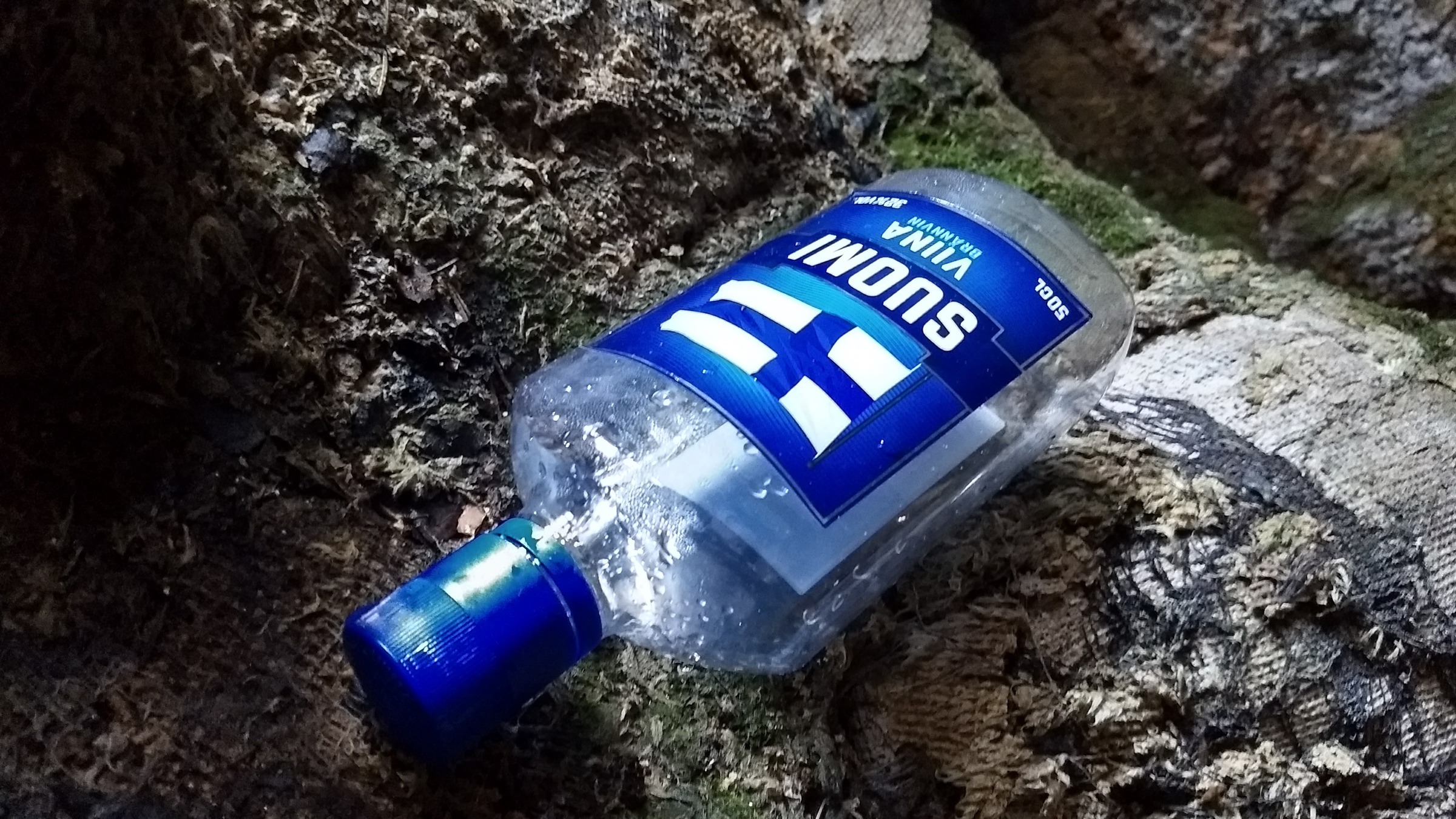 In Finnish national style, of course somebody had been drinking vodka in the cellar, and left their bottle:
