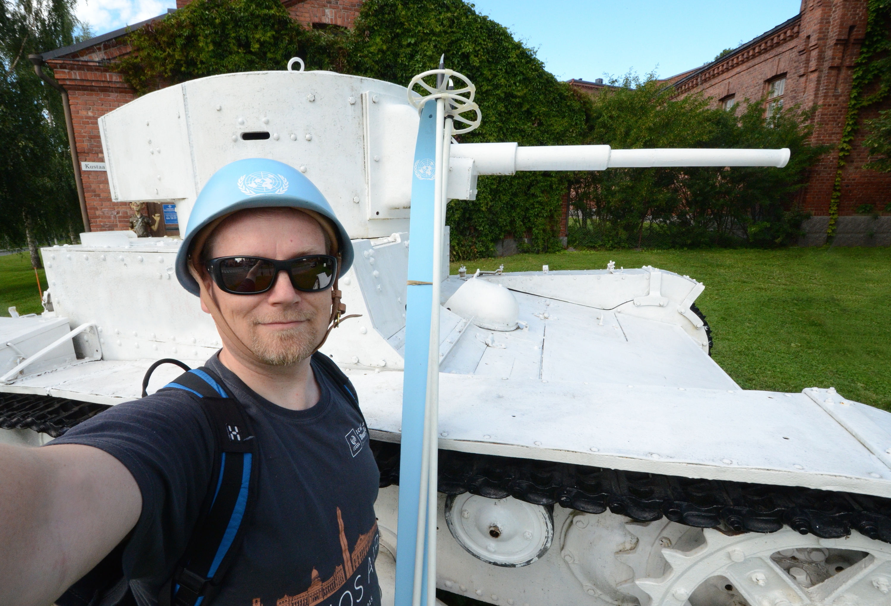 Hi! I am from the United Nations. I have a tank, but it is small, white and not scary at all. Honest! I also have skis, beautiful light blue skis.