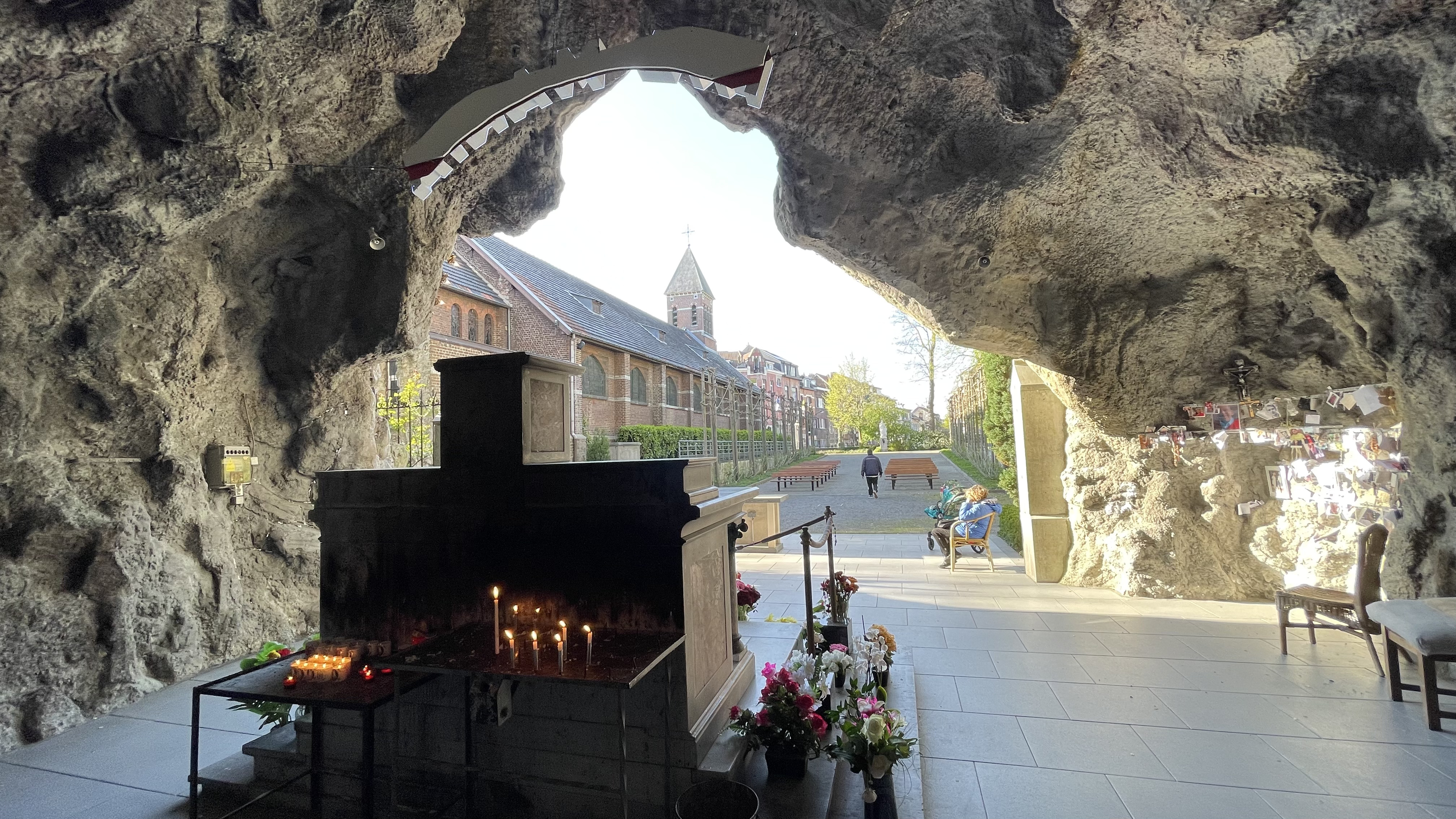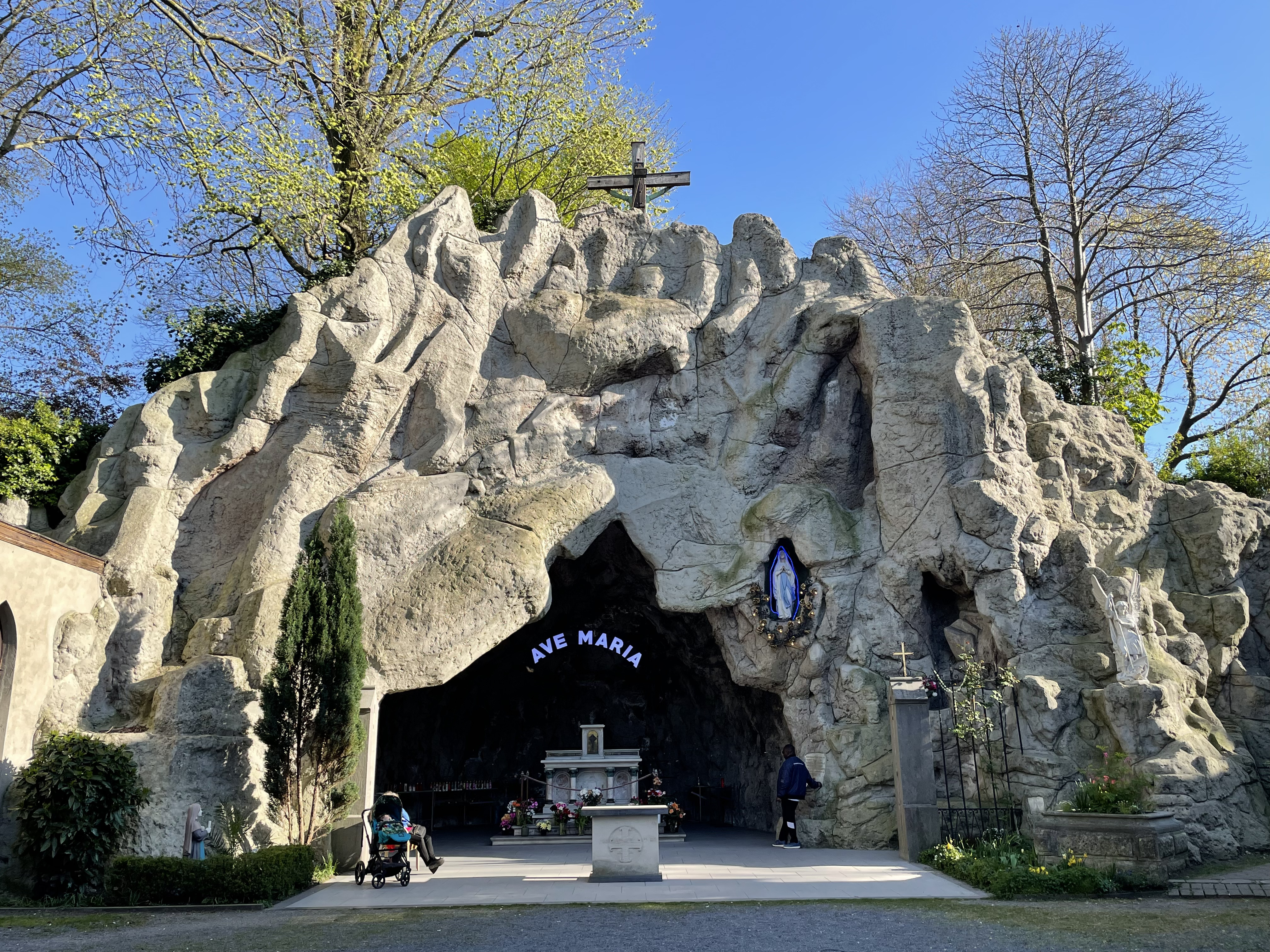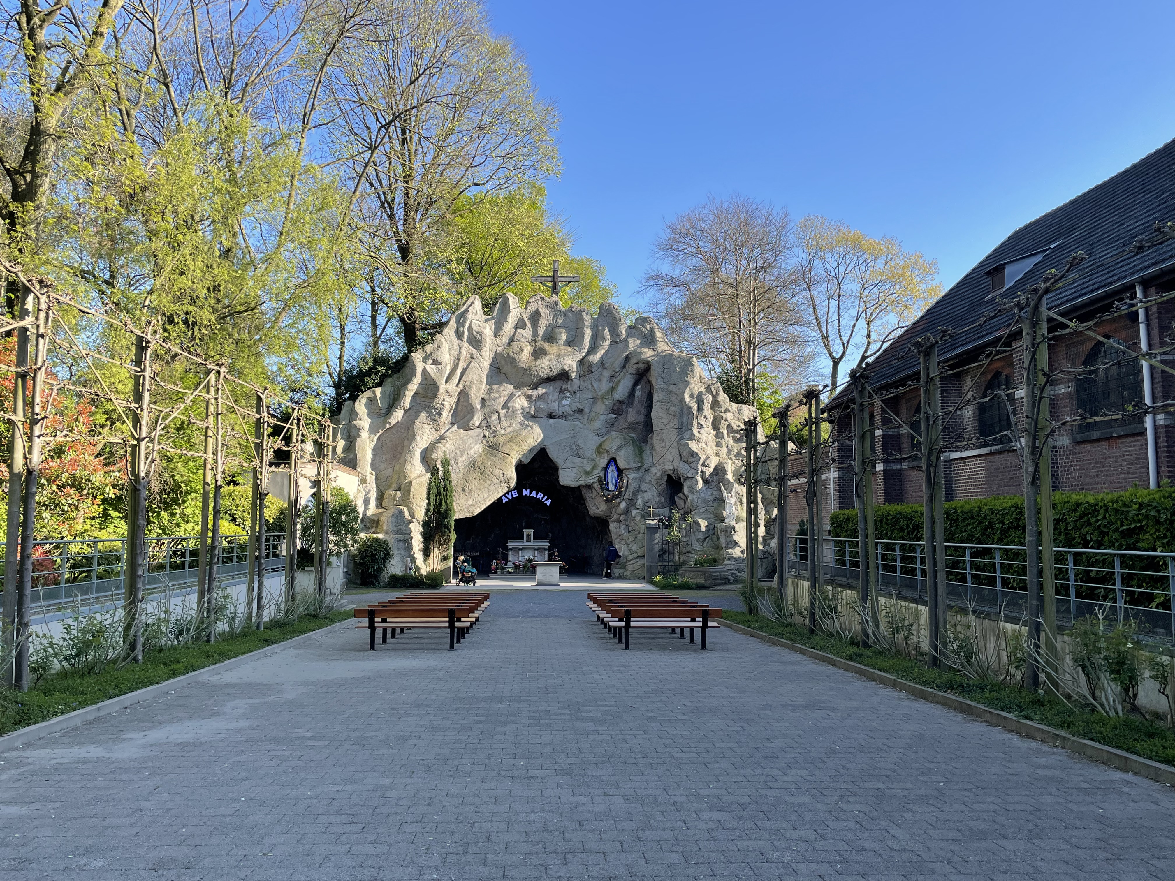 Business trip to Brussels, are there caves? Sadly, there are no caves in town, and I don't have enough free time in the evenings to venture outside. However, there's an intriguing thing in town: a copy of the famous Grotte de Lourdes from France. A chapel or a place of worship.