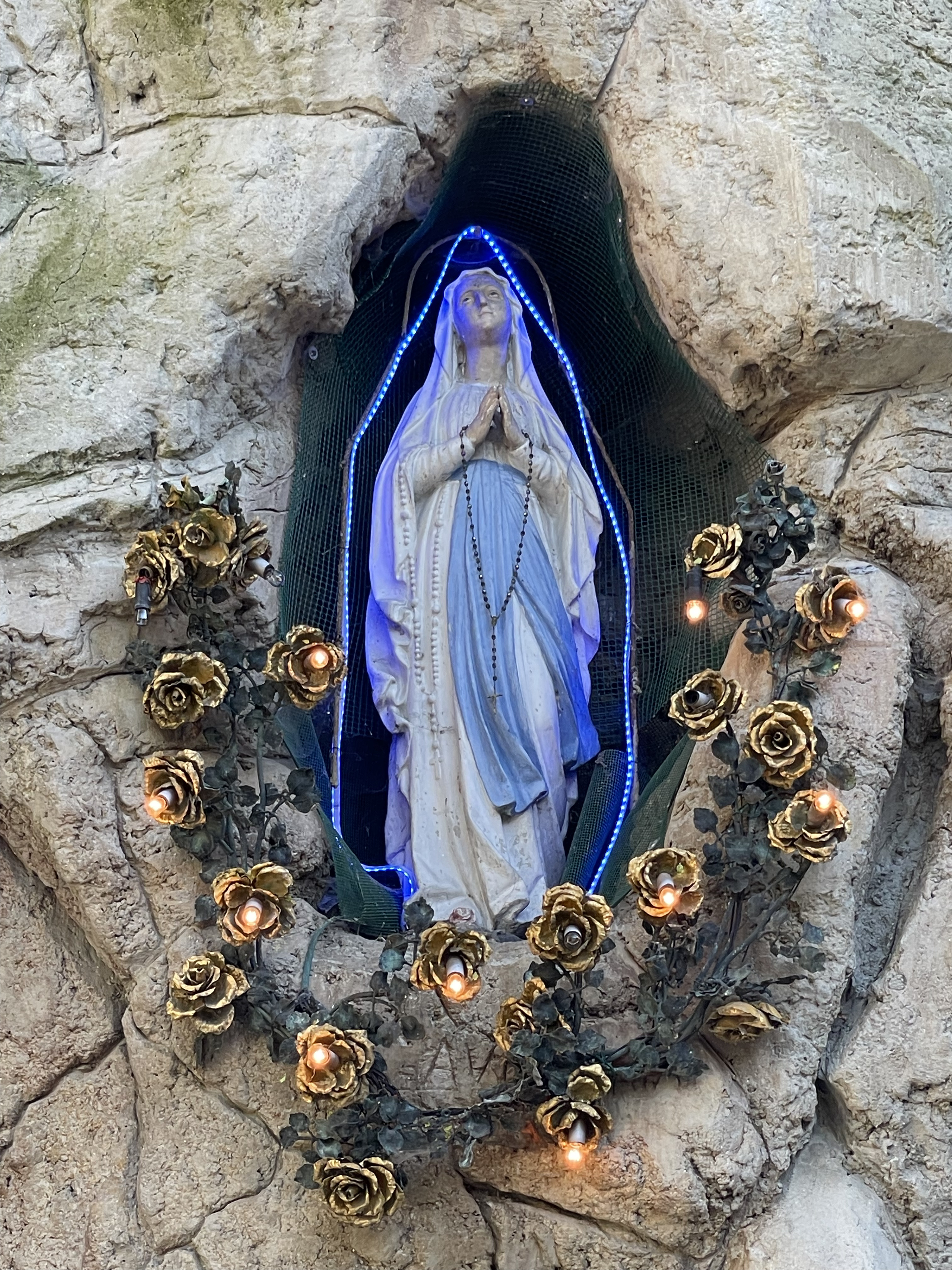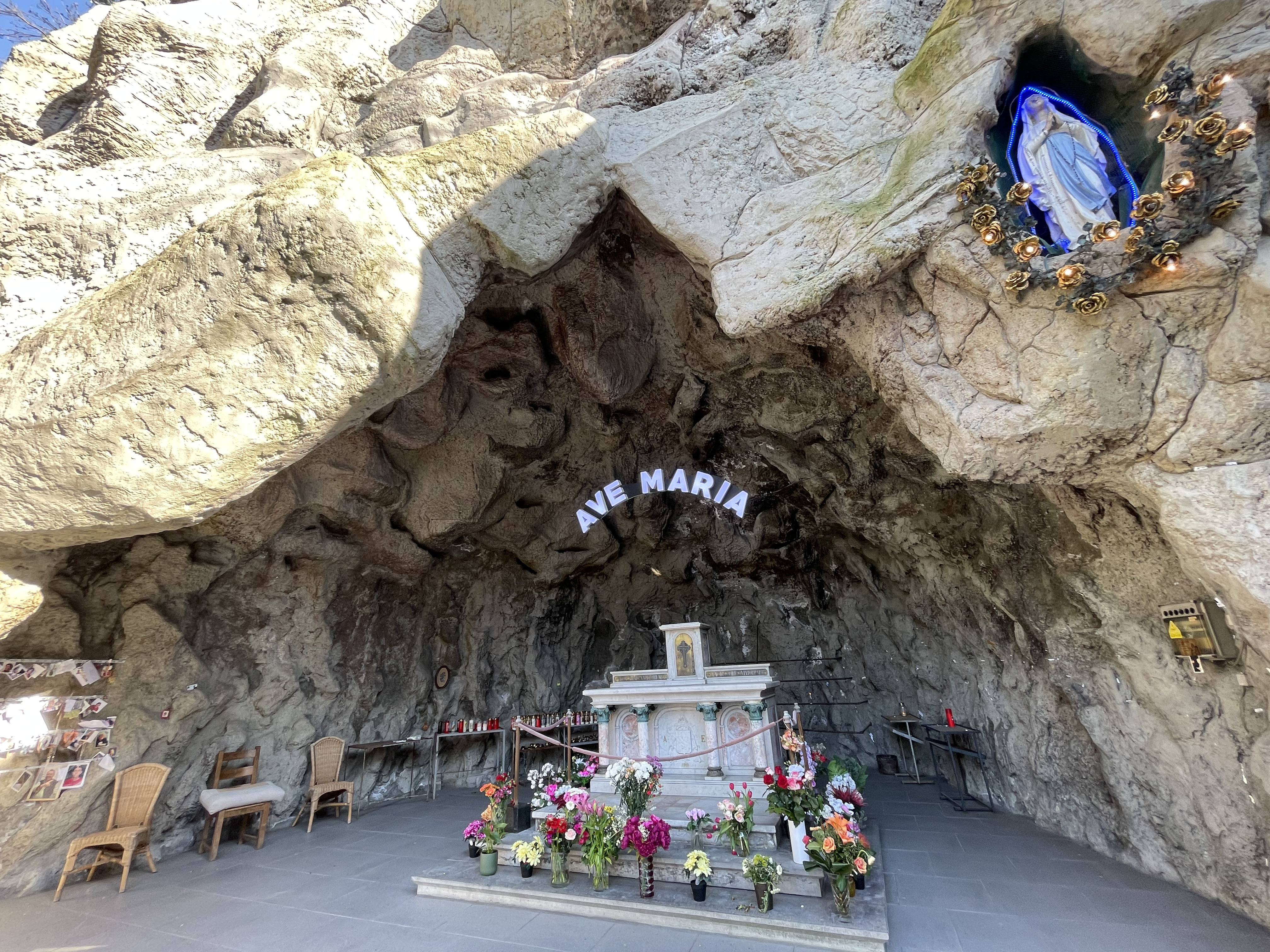 And this isn't the only copy. Just around Brussels there are several. Then around Europe, North-America, and throughout the world. What's going on? It all comes to Grotte de Massabielle, located in Lourdes in Hautes-Pyrénées, France. But that cave is mostly known as the Grotte de Lourdes, a Catholic pilgrimage site.