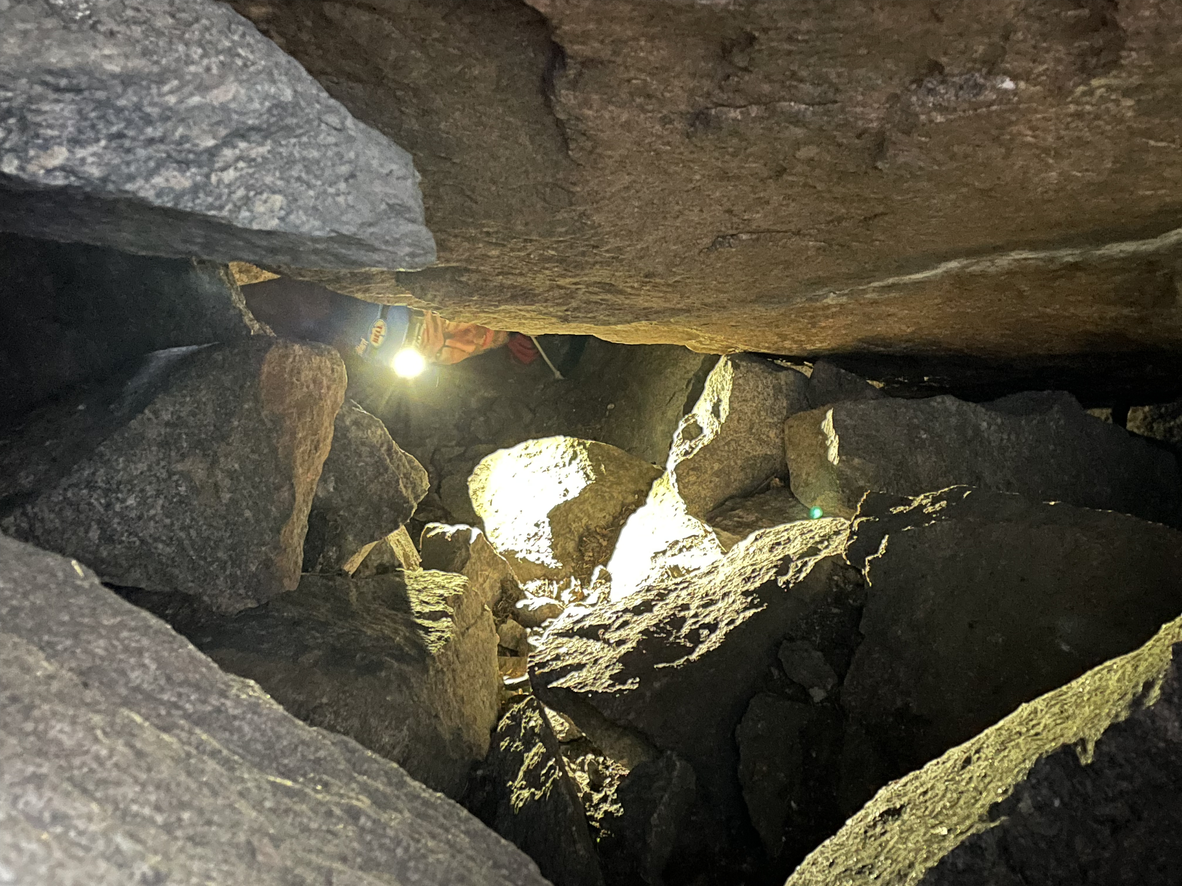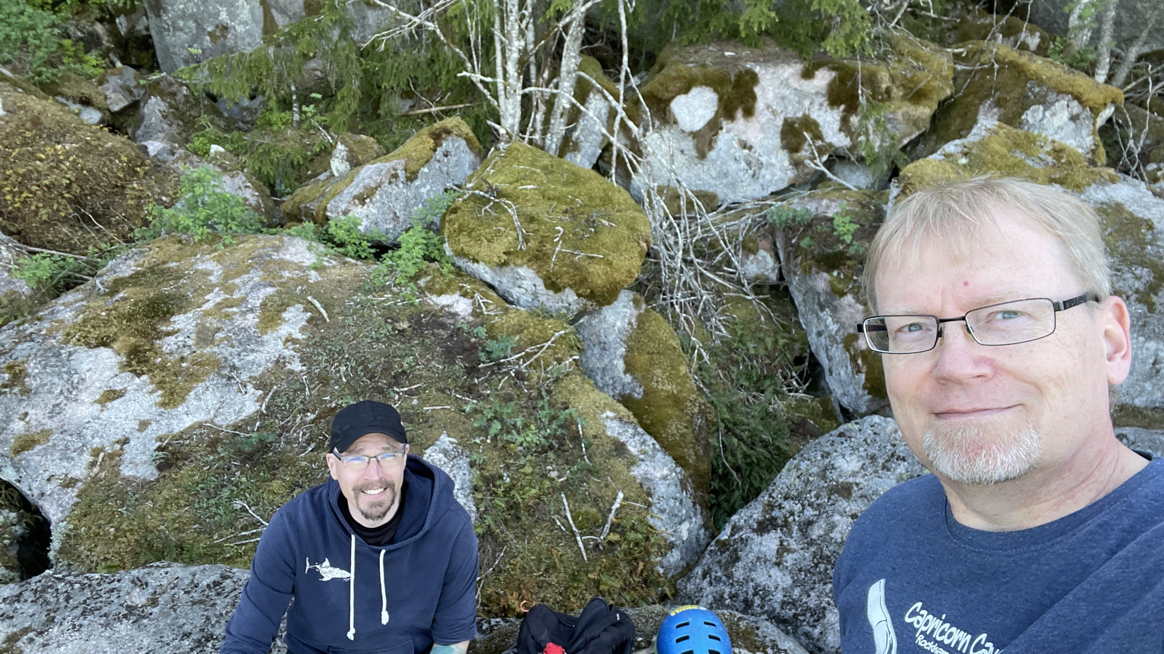 Harri and I had a nice evening excursion in Korkberget. He's been there many times, and frequently leads groups to caves, including to Korkberget. I wasn't sure if I would be able to show him anything he hadn't seen before, him being an experienced guide and writer. But I've been in Korkberget probably more times than anyone else, pushing a month or so spent on site on. my map-creation exploration :-)