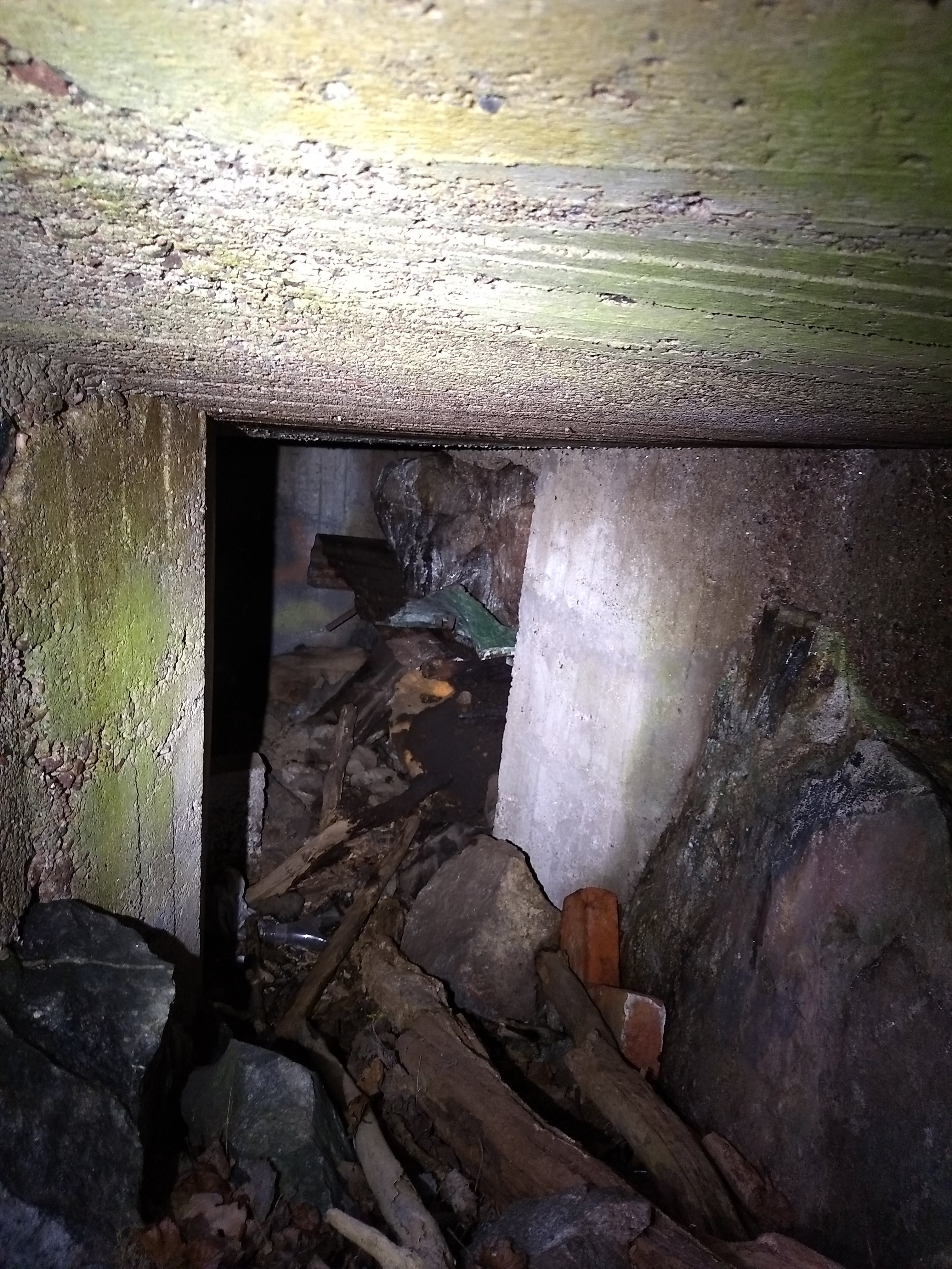 I found a bunker, at the top of the hill there some fortifications (perhaps bases for guns), and there's also basement ruins of a house.