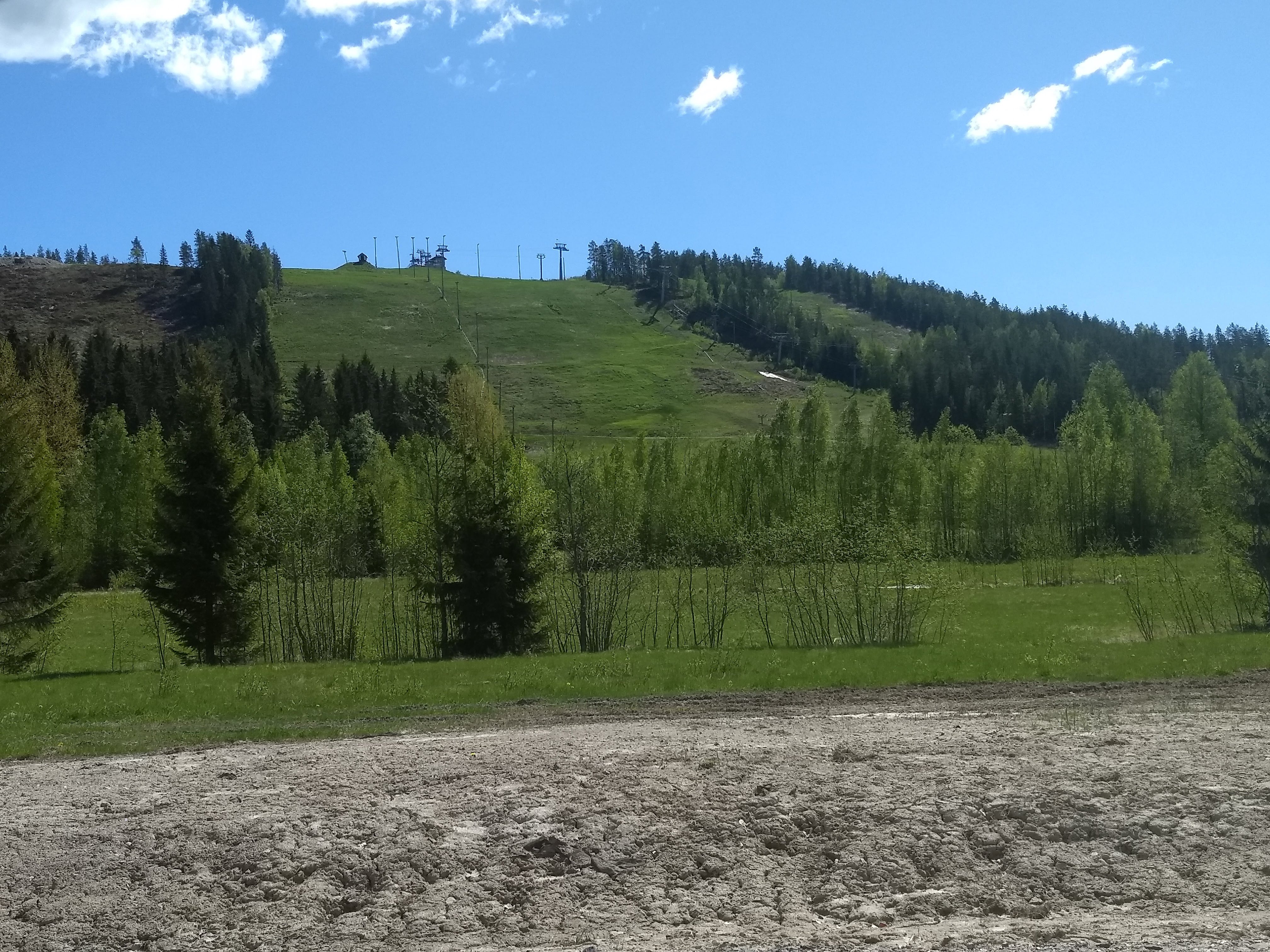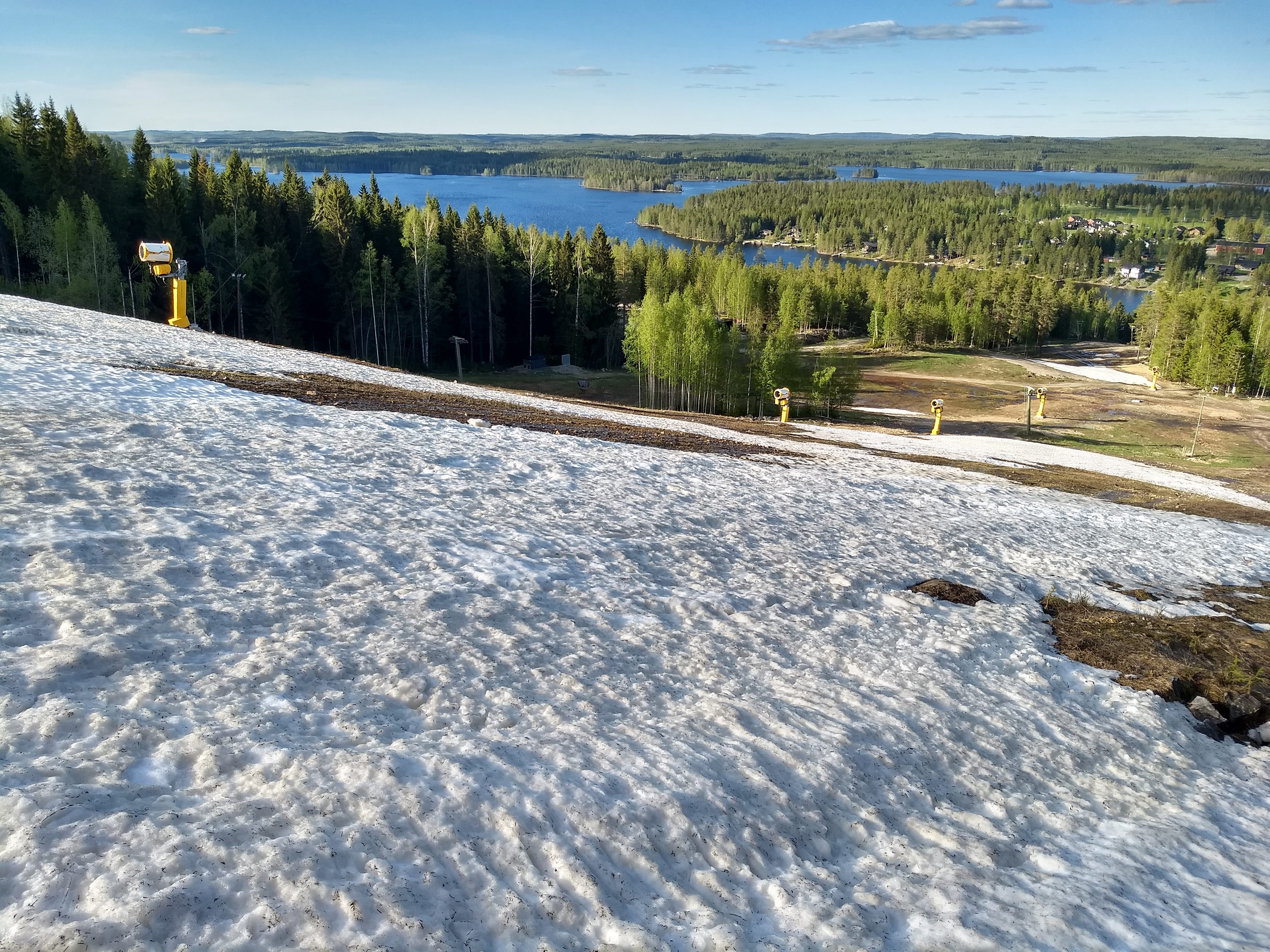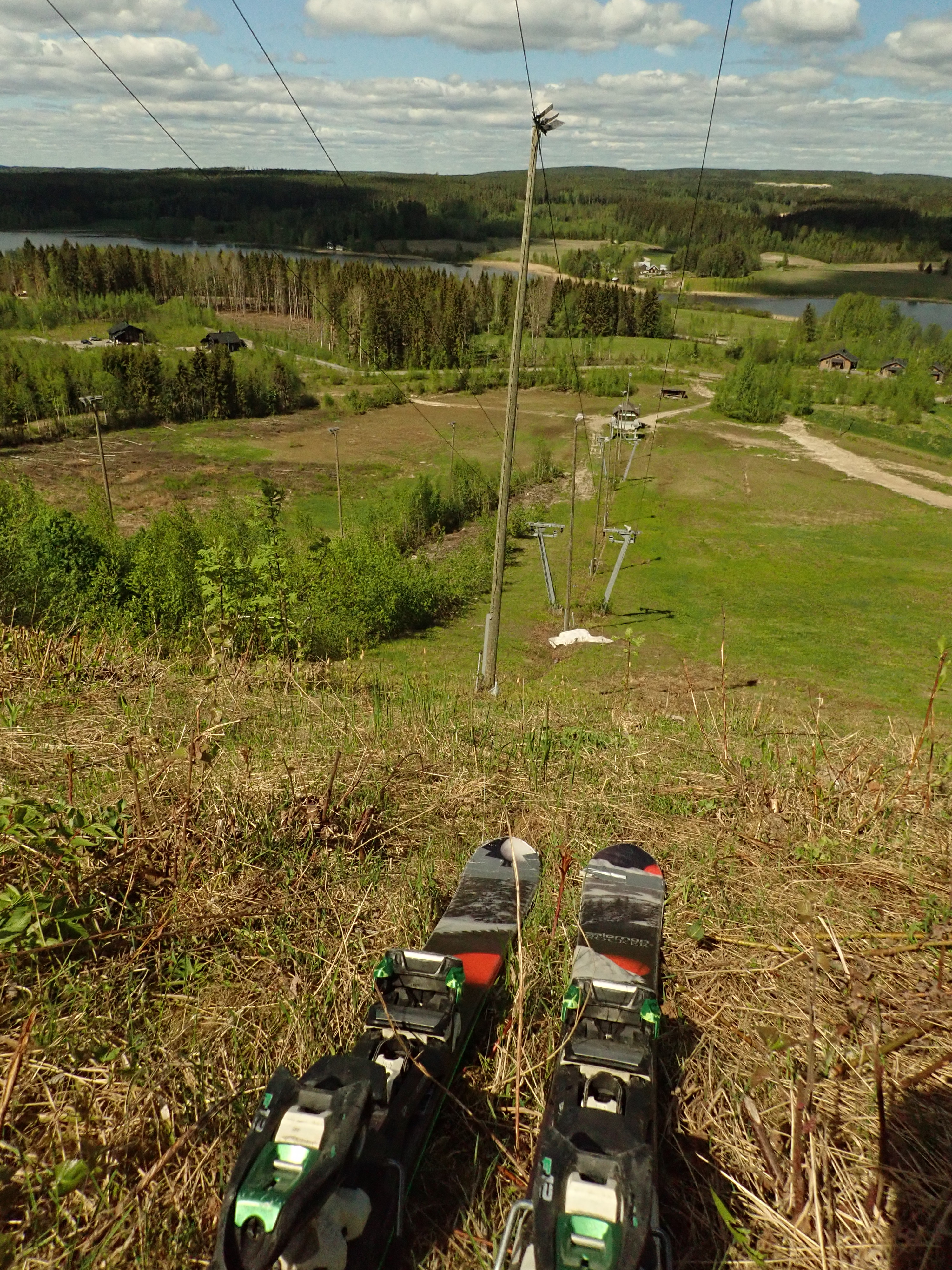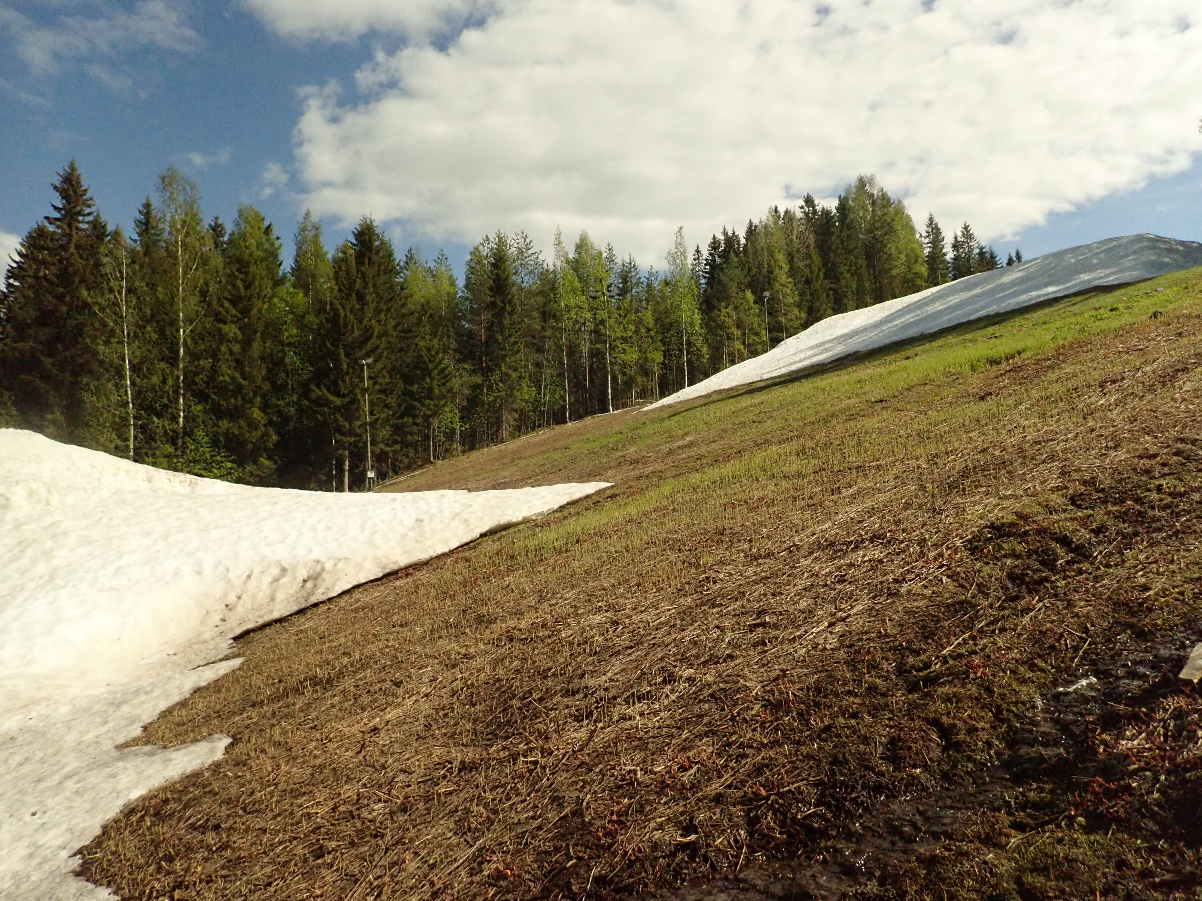 First I went to Himos, which turned out to have 1.5 meters of snow. That's the length, not thickness. The grassy hill was also too steep and rocky for easy skiing, but I skied it anyway.