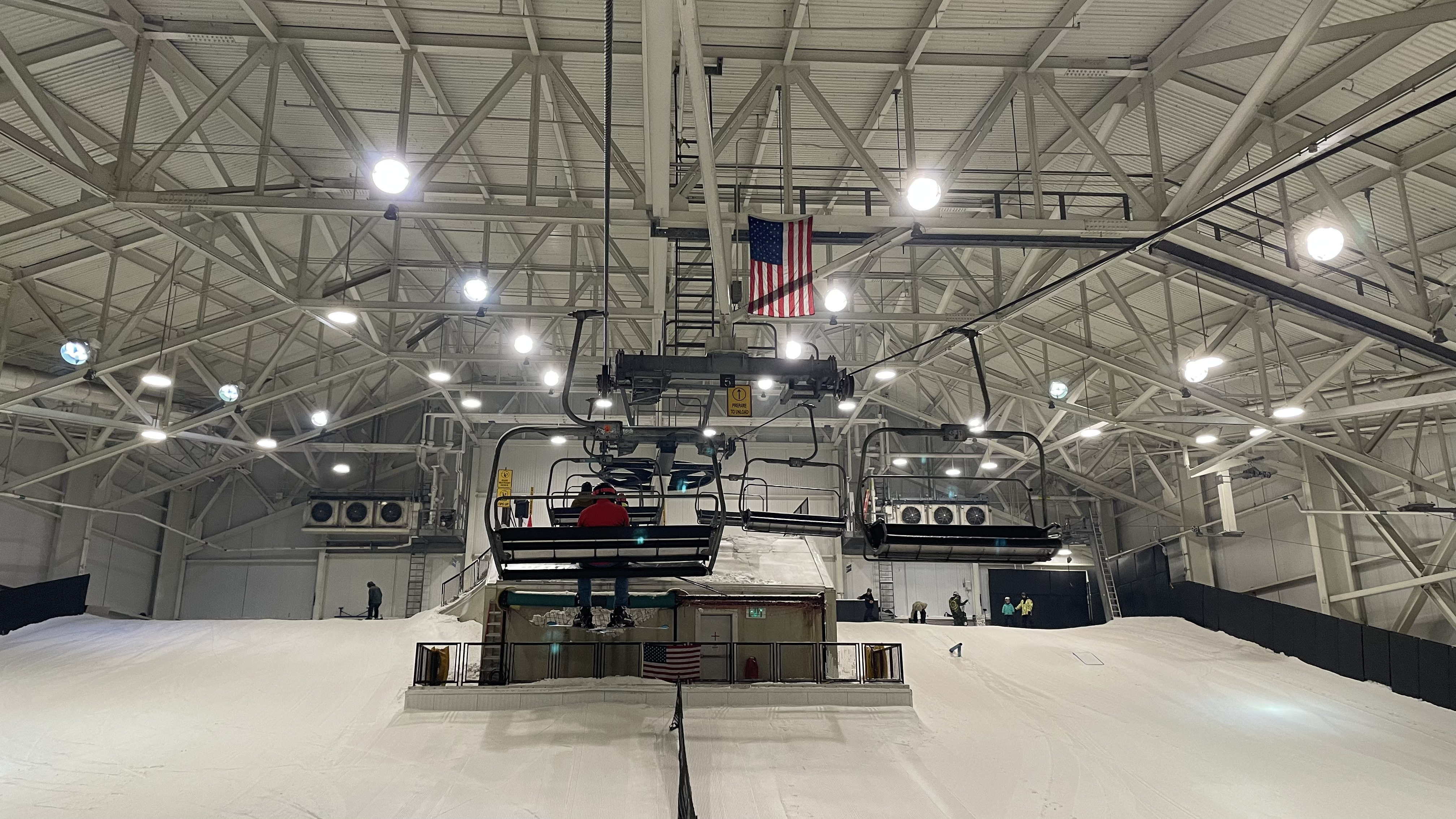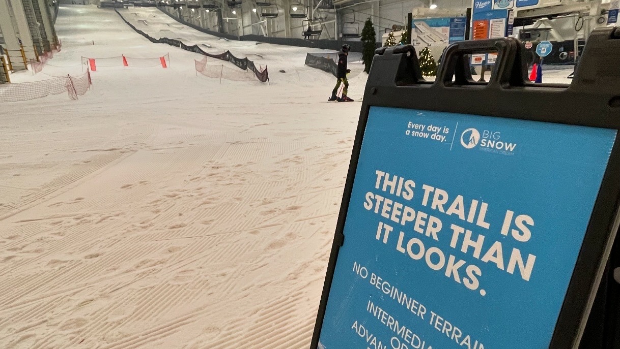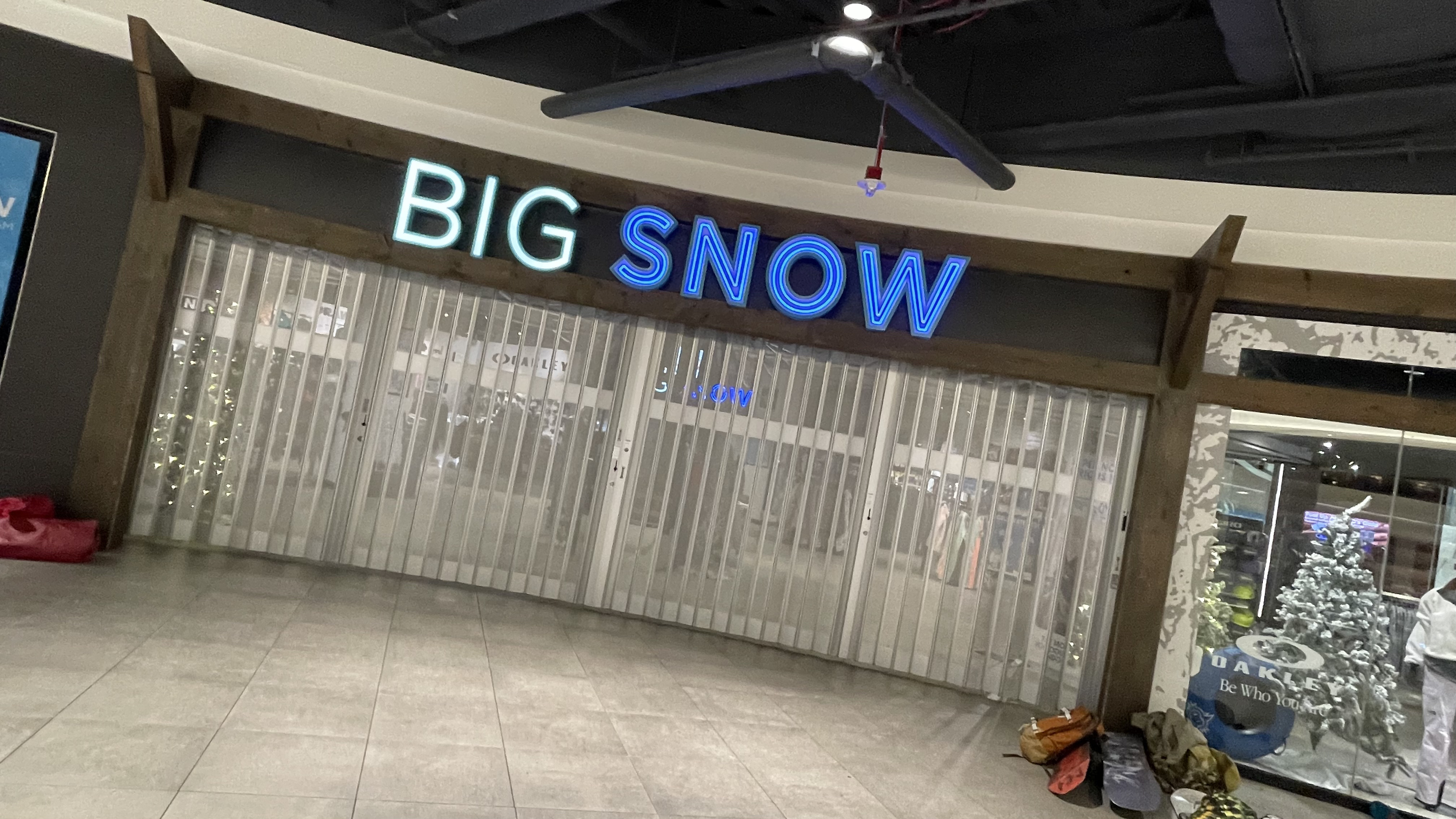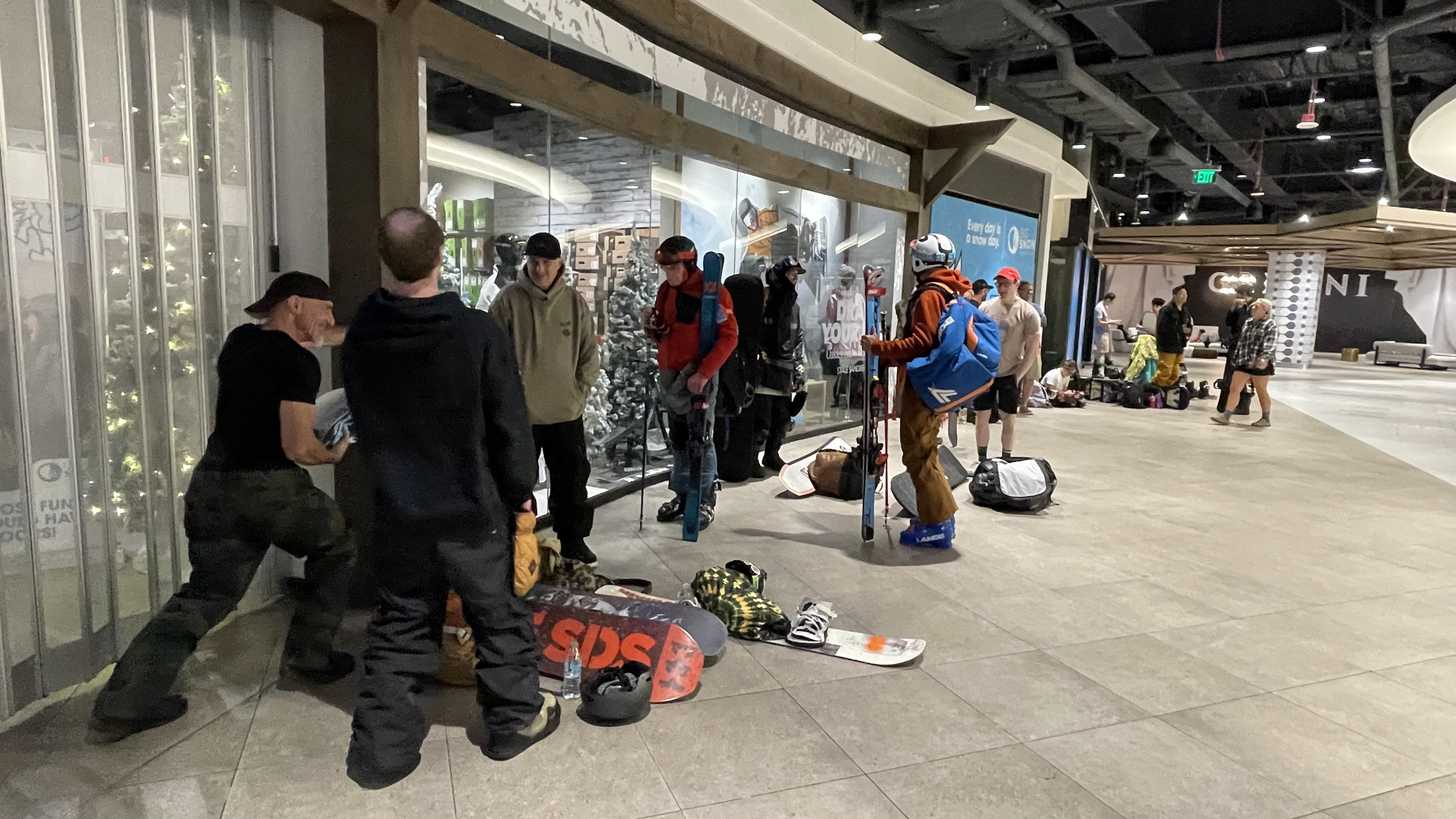 And that, ladies and gentlemen is North America's only indoor ski resort, the Big Snow. In a mall, naturally. And equally naturally, whenever skiing is opening the dirtbags are lining up. And even more naturally, I cut the line and enter first:
