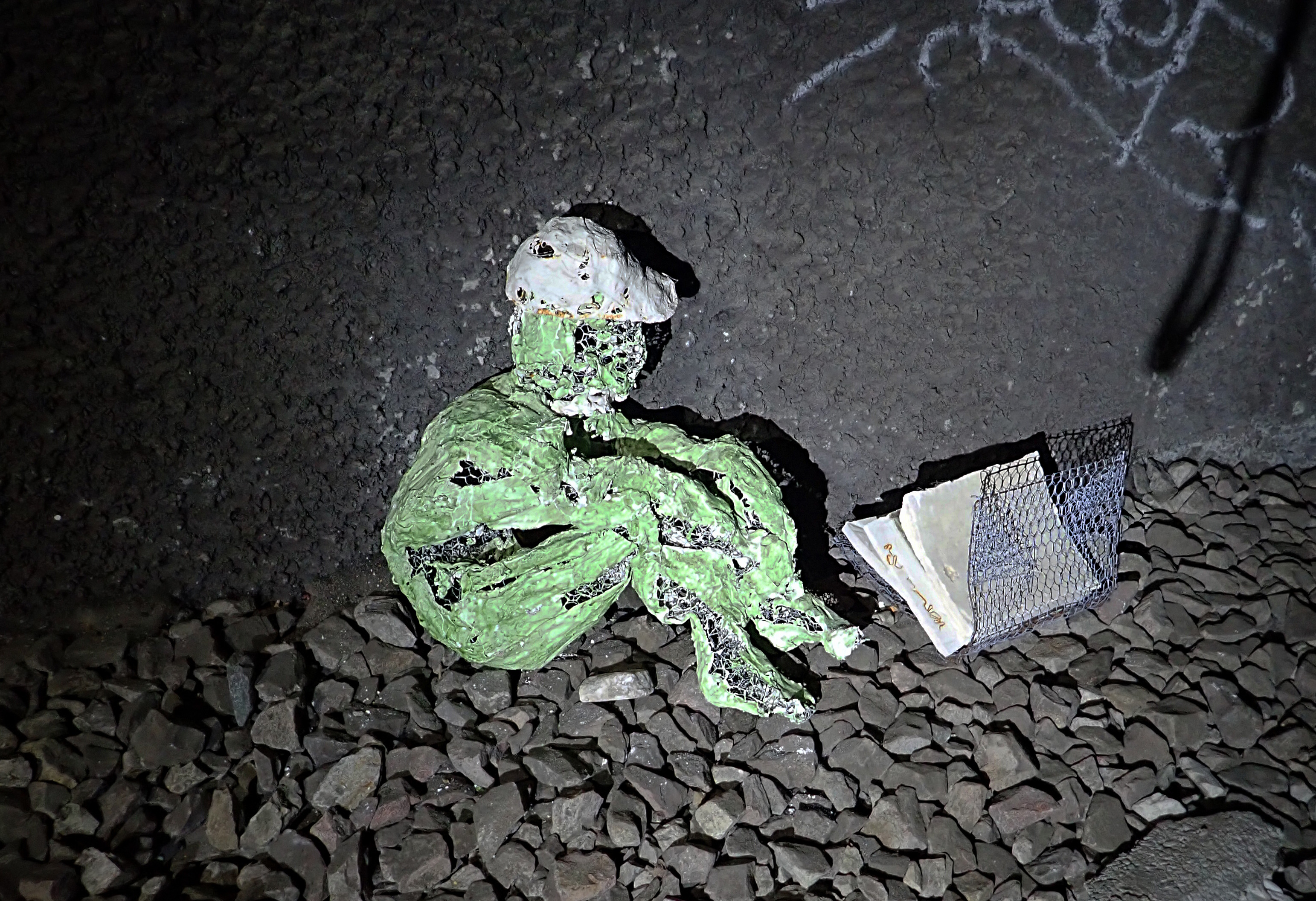 I'm in Paris for a meeting, and on the way to the airport we visited the abandoned underground railroad line. What did we find? An art show and sculptures deep inside the tunnels! And also wonderful graffiti!