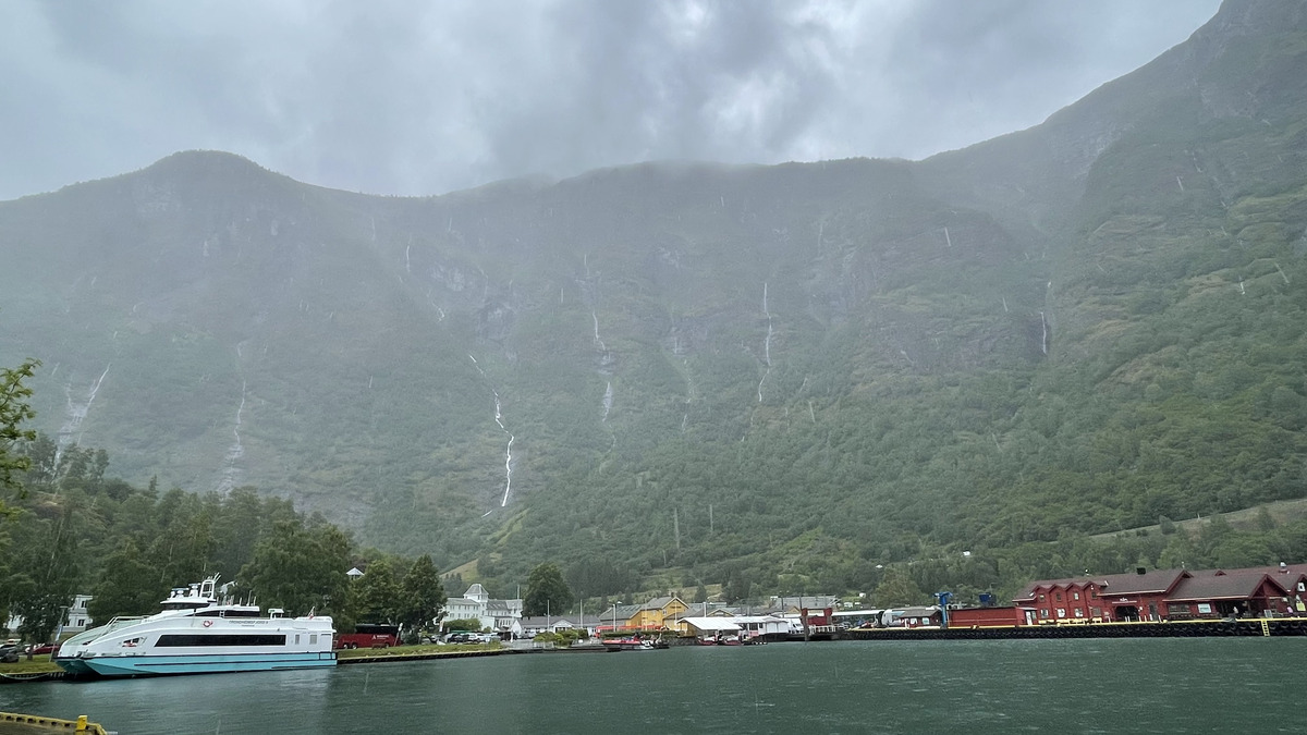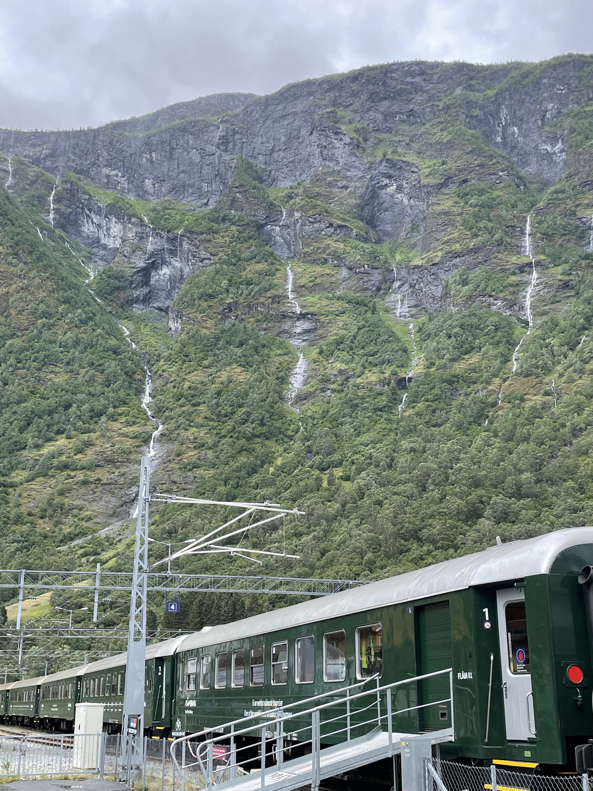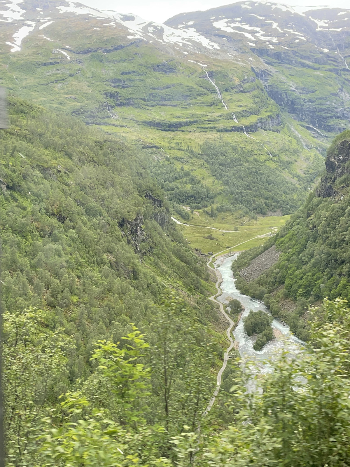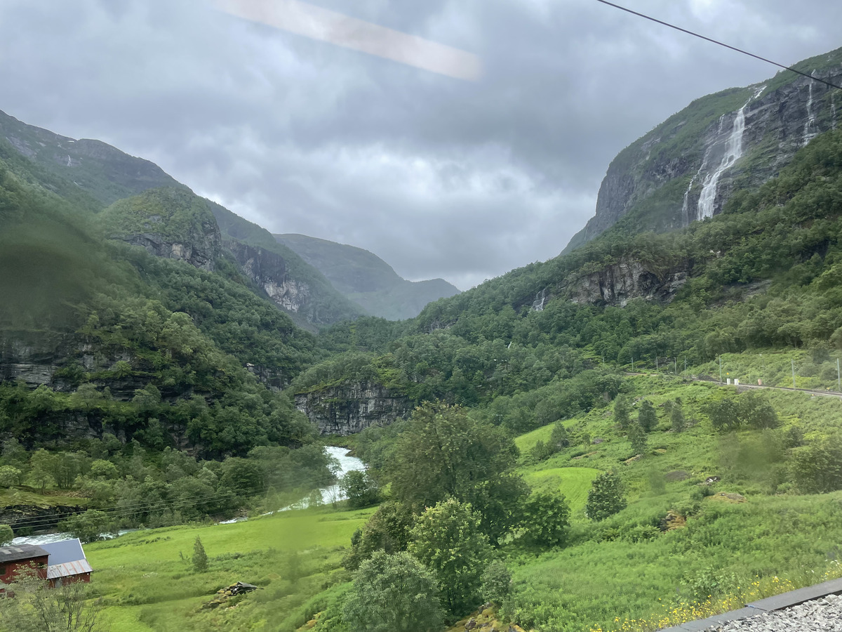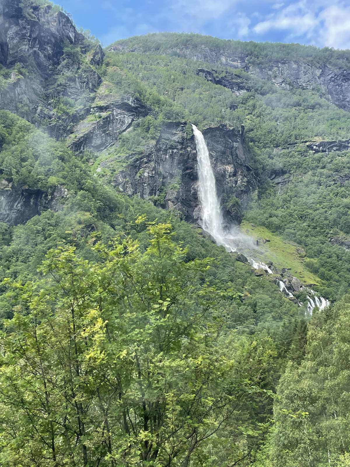 While going on the Flåm railway (see the other article), I noticed that on Google Maps there was a marking for a "cave waterfall", Grottefossen-Høgabru. I saw it briefly when the train drove by, the river entered the mountain and came out shortly thereafter on the other side. And there was an additional similar underground water flow after the Kjosfossen waterfall, under the station. These seem man-made, however, as in both cases the water is taking a different direction to bypass the station or the bank that the rails were on.