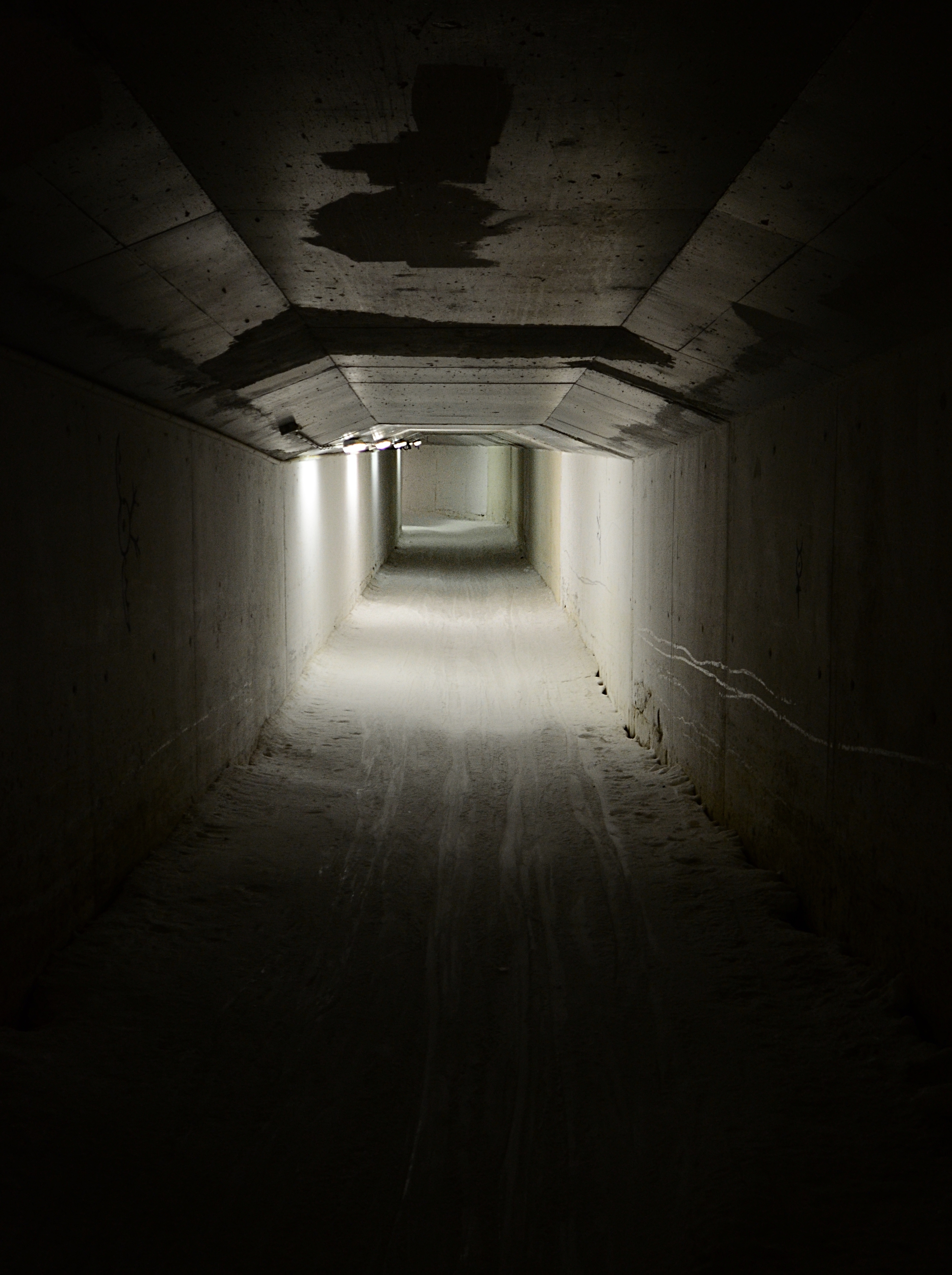 Inside the concrete block and under the runway