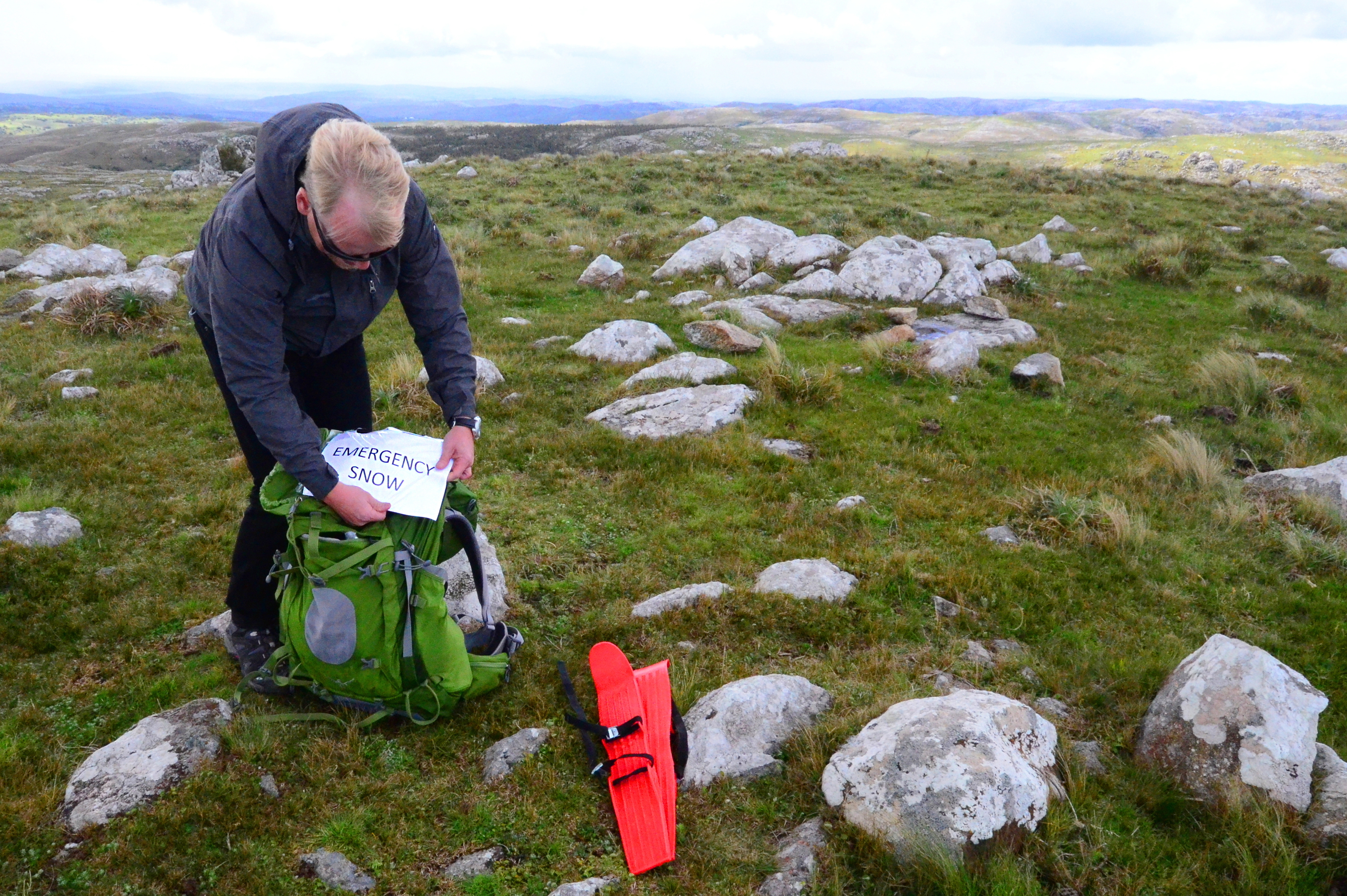 The emergency snow pack is still at -66 degrees. GPS says that I am at the right spot. I have miniskis on my feet. Everything is ready for the first descent of Uruguay's highest mountain. But first I need to bring on the winter.