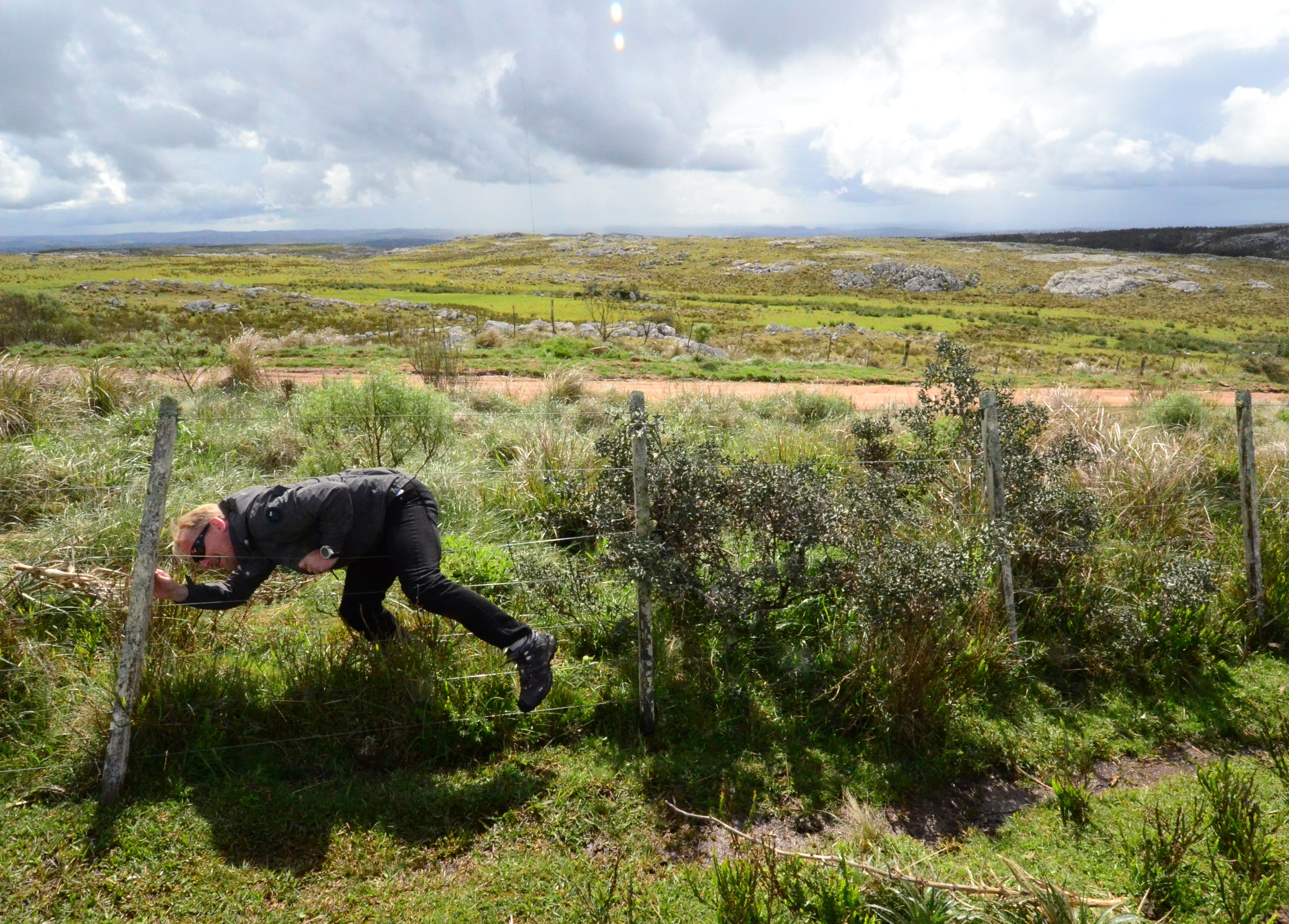 The hardest part of the climb was passing through a fence: