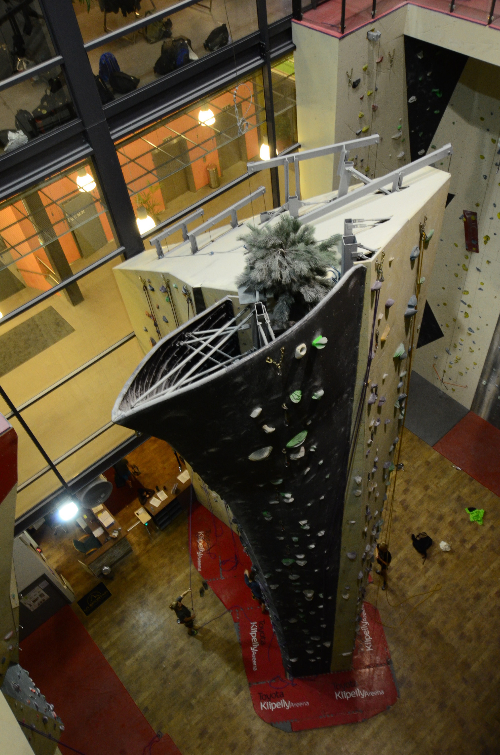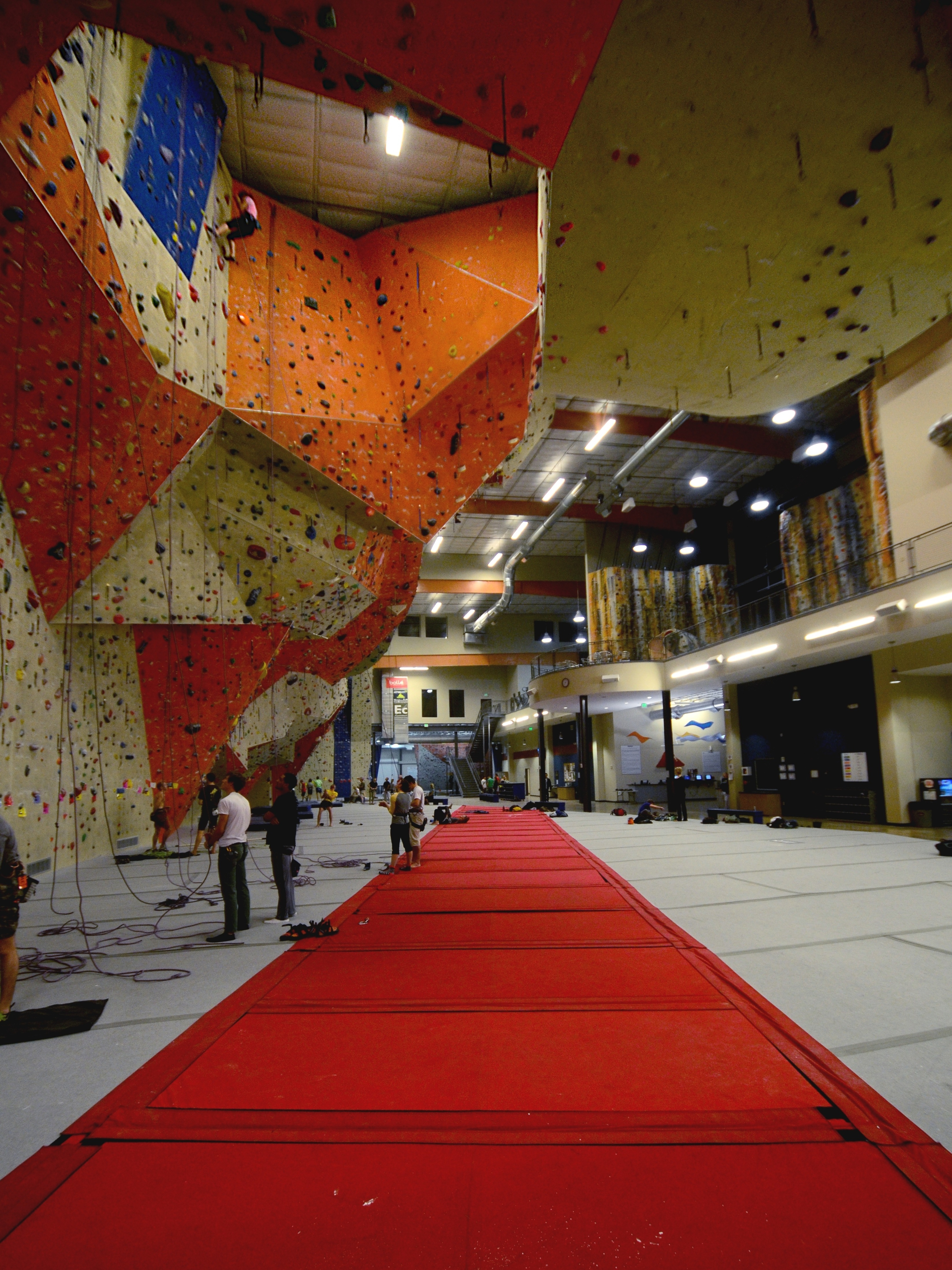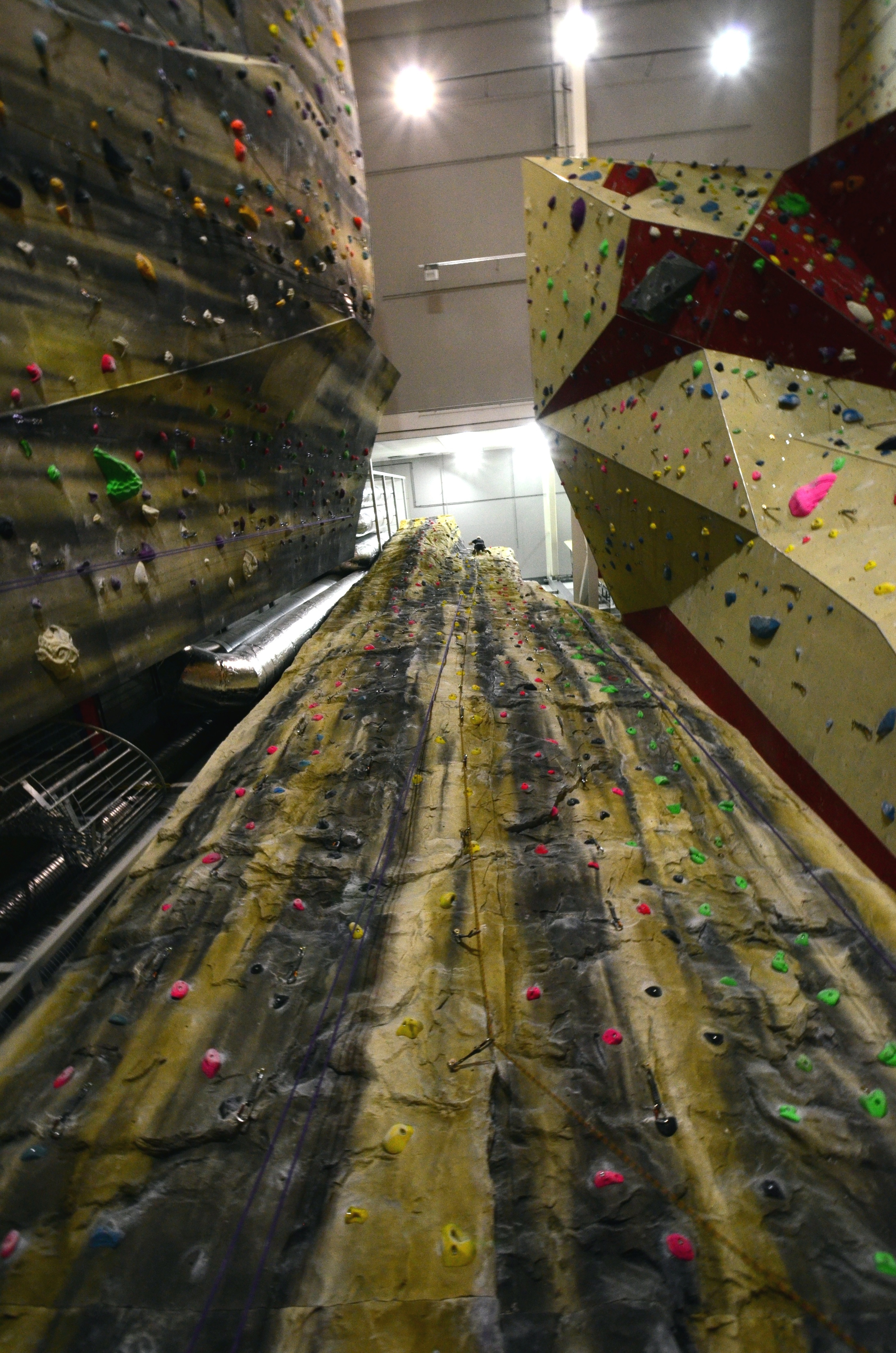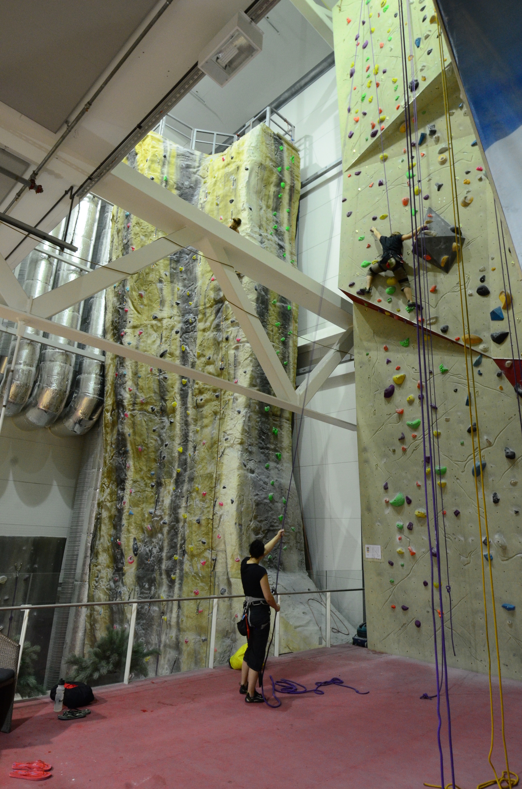 The most striking feature in the main climbing hall are the roofs. You can start a climb from the wall and proceed to the roof, then continue to another vertical section, and finally land back to the middle of the floor on your rope.