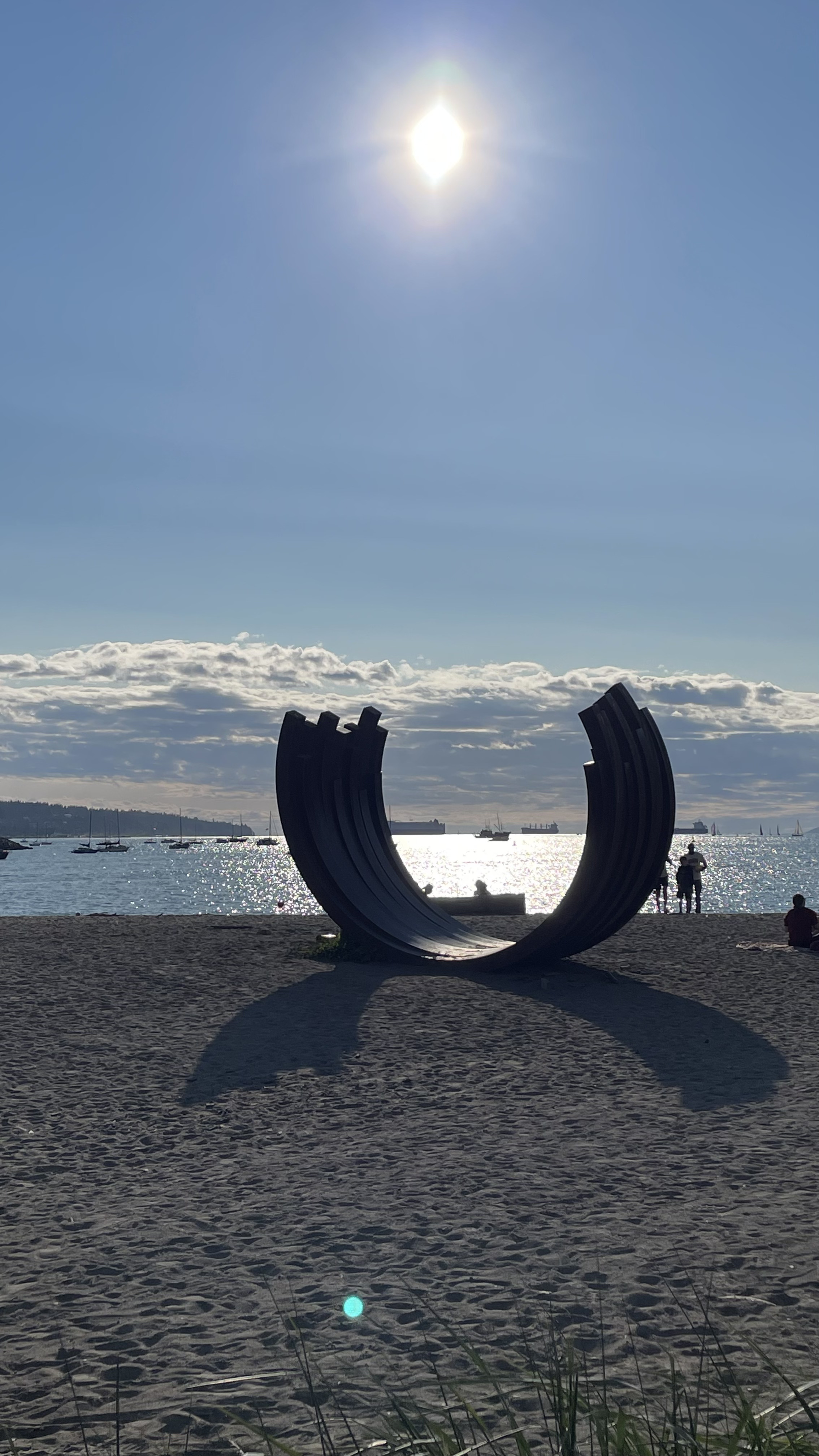 The beach at English Bay (link, coordinates N 49.285548 W 123.143912):