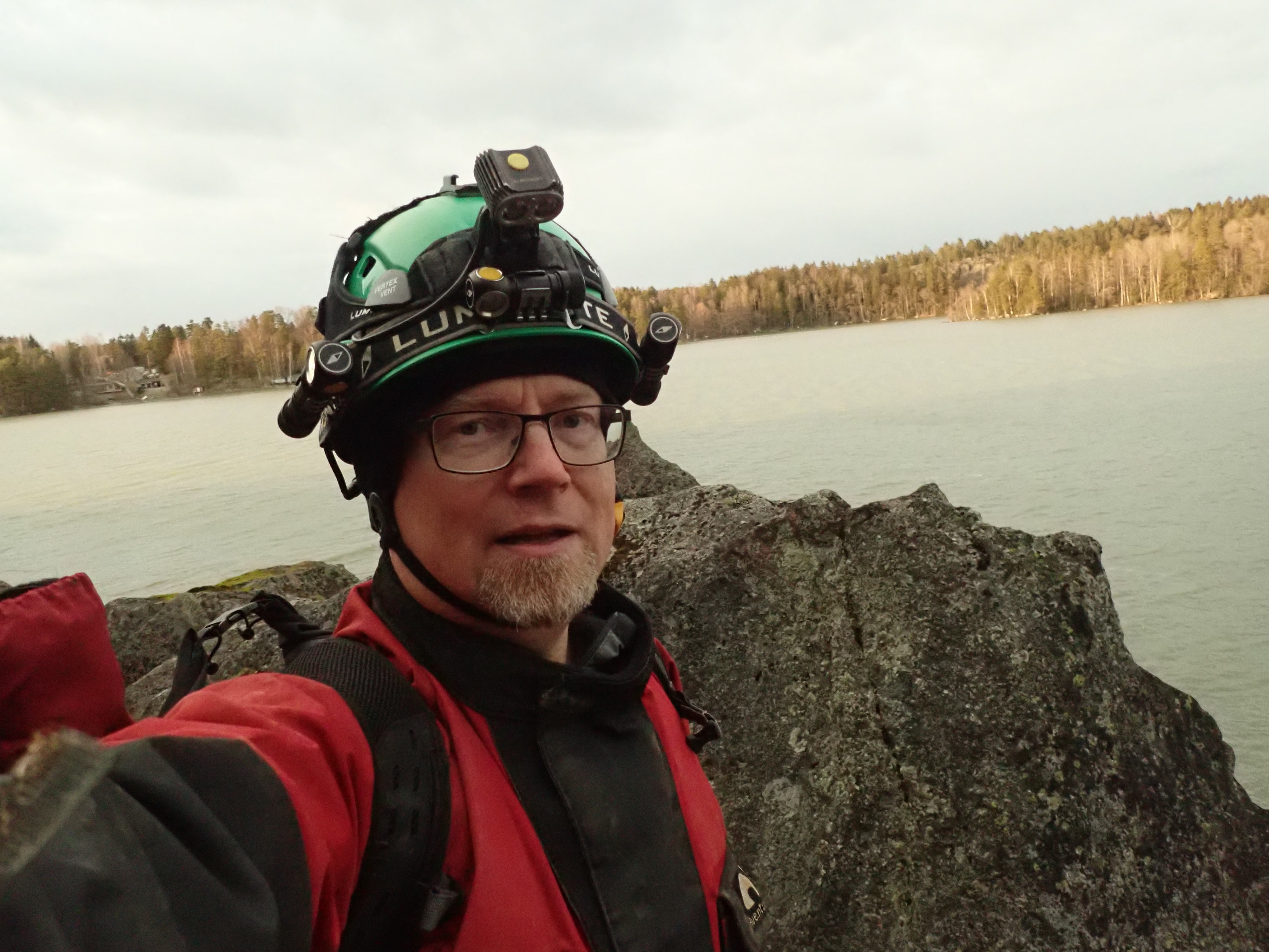 Another caver's club virtual meeting! Nice! Since the others played around with nice picture backgrounds, I decided to have a background of my own: in a cave in Korkberget, Kirkkonummi.