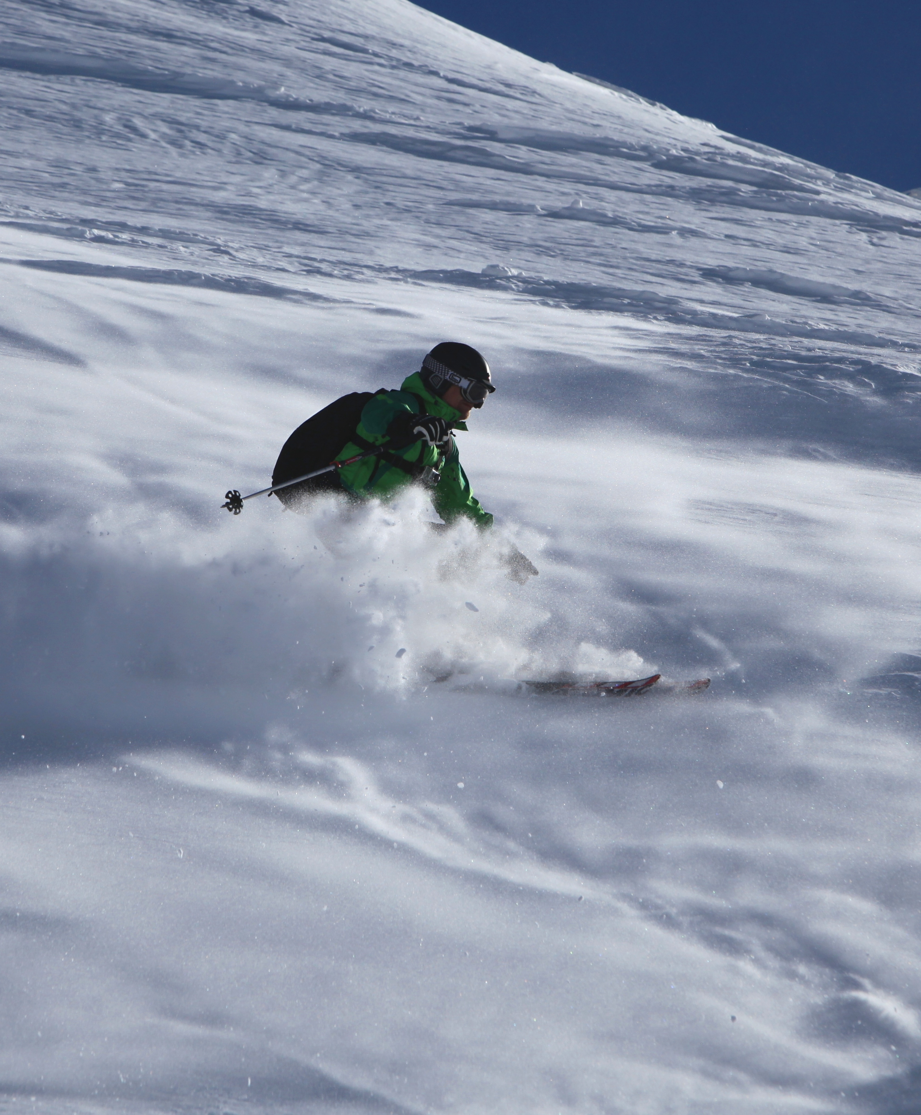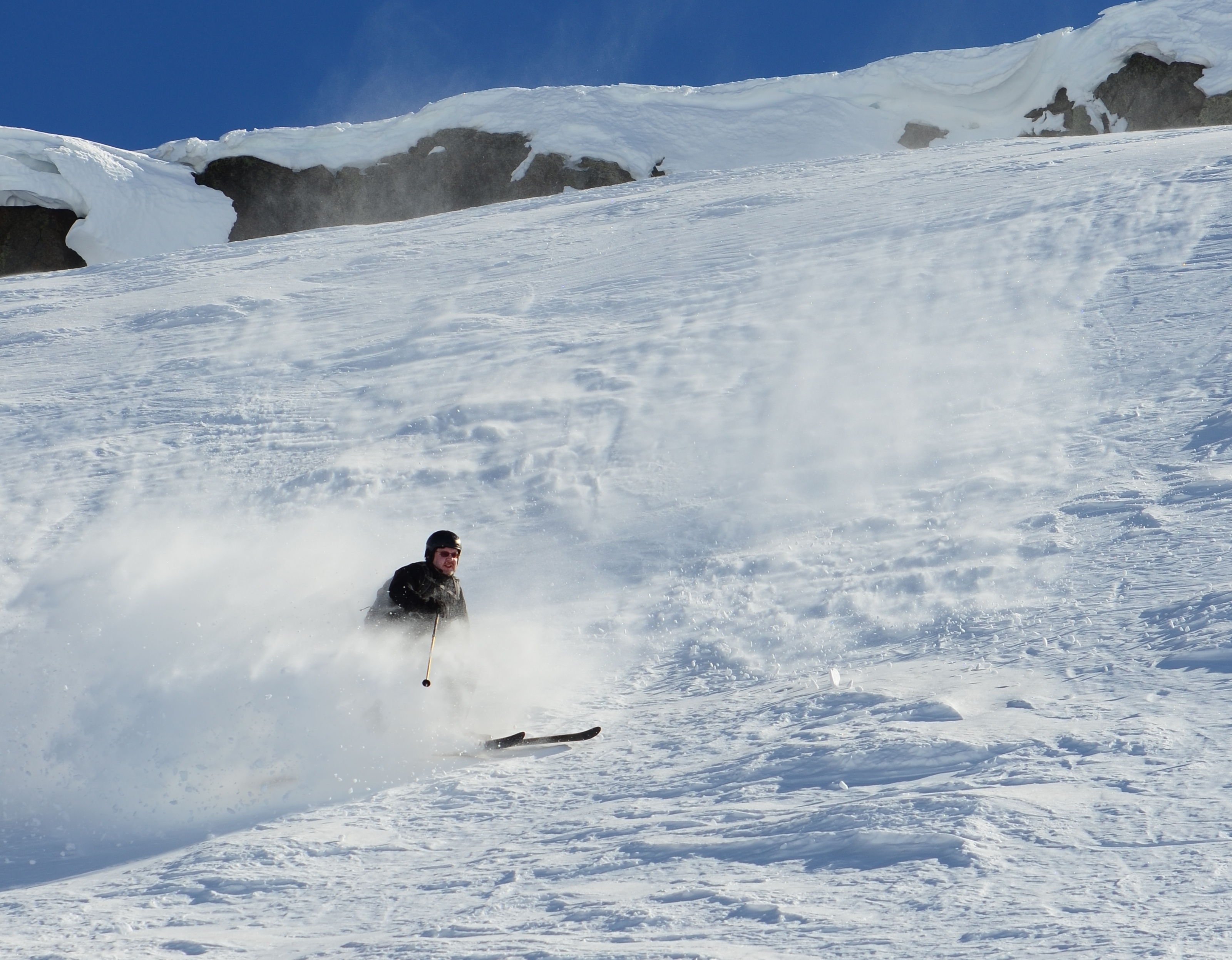 The most interesting off-piste routes are in the upper section. There is a steep face to the skier's right from the top station, for instance, and many interesting valleys and rock faces on both sides.