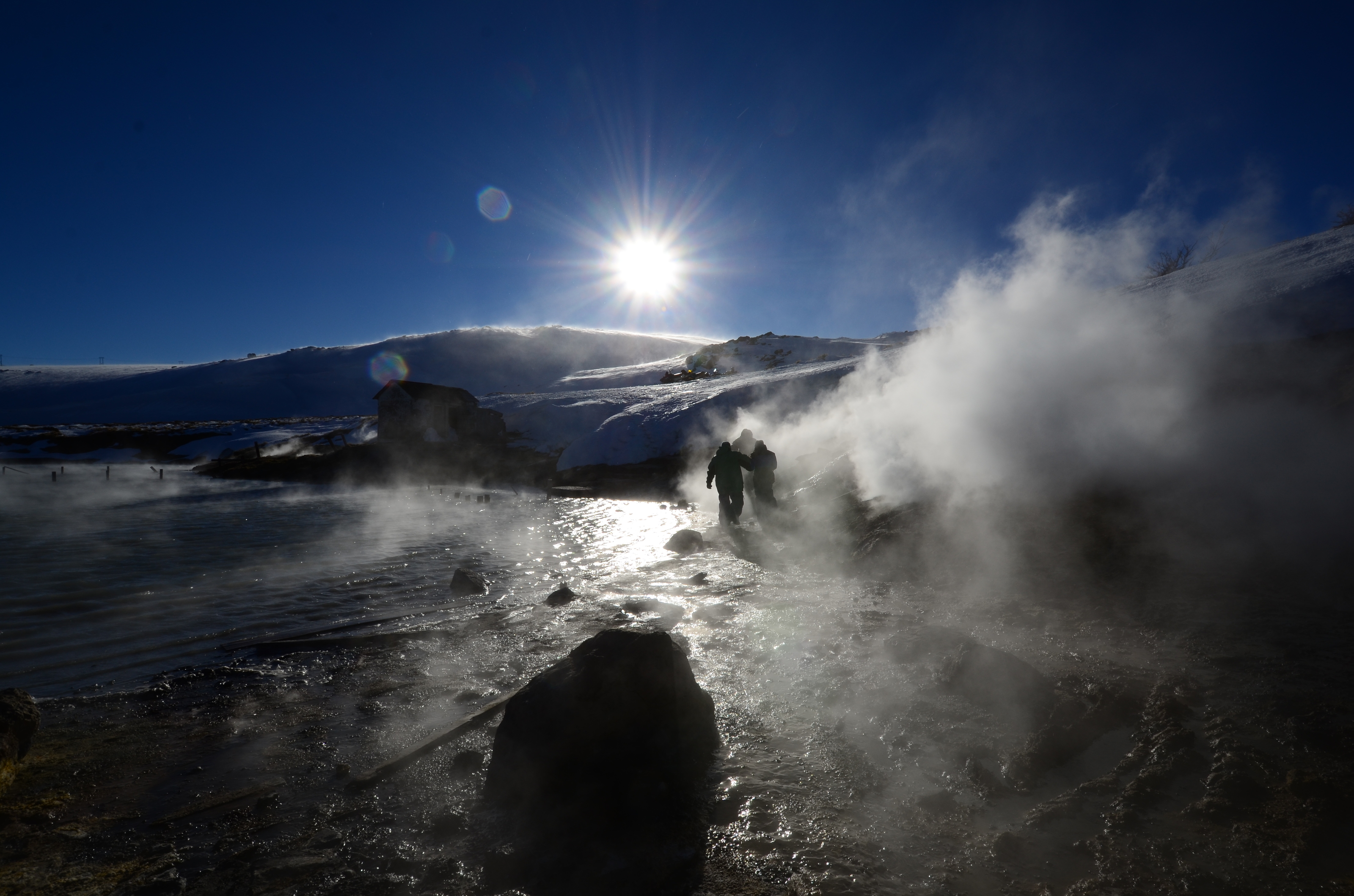 But it was a lot of fun and we did get to interesting places with the snow mobiles. We made a brief visit to Chile and saw many snow dunes and ancient volcano craters. We also saw the half-finished geothermal plants, designed to tap into the steam that is generated when melting water from the glaciers reaches hot material a thousand meters under the surface. Hopefully these plants will get into operation, as one plant is reported to be able to generate enough power for 100,000 people.
