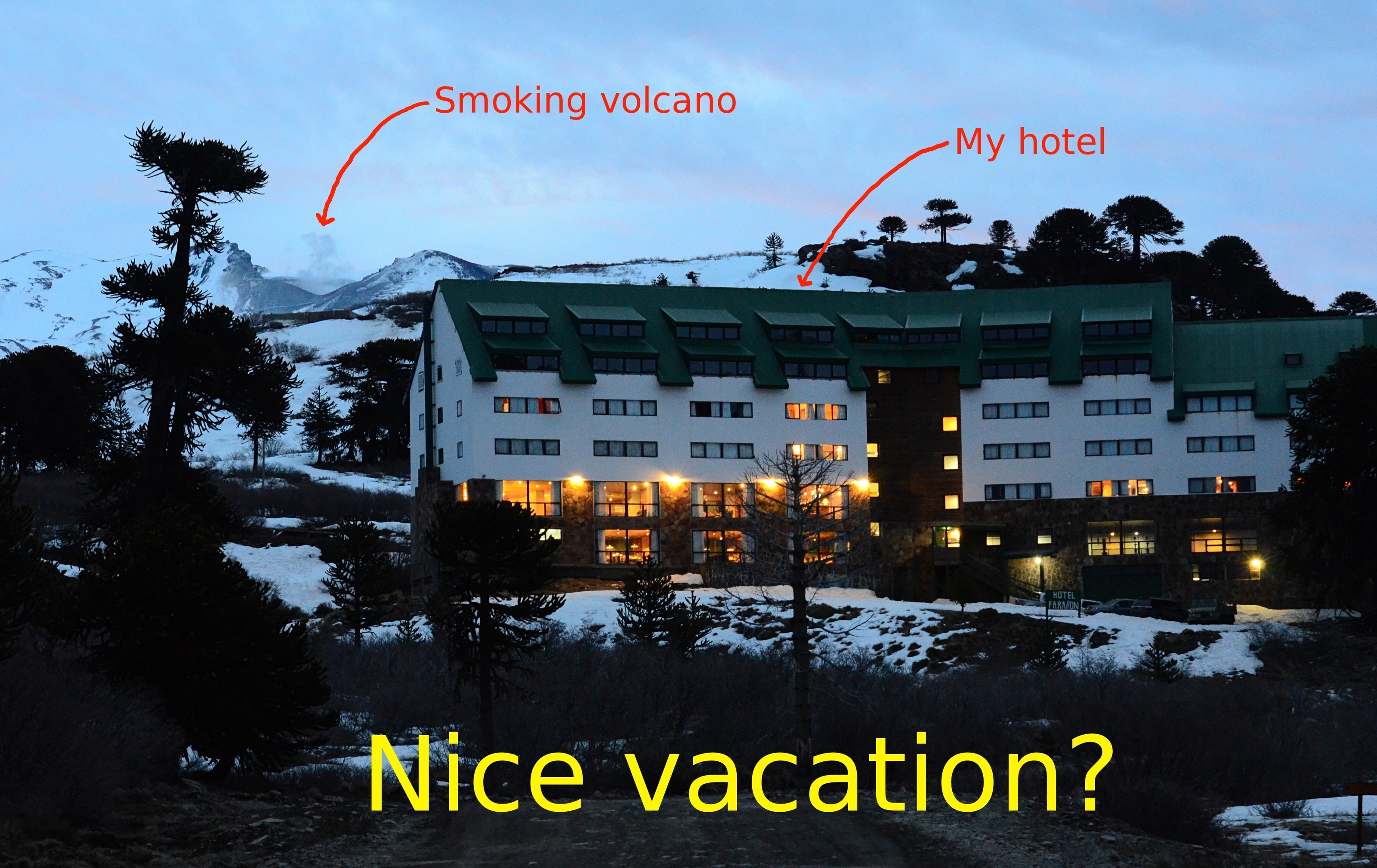 We stayed at Hotel Farallon, the closest major accommodation facility to the ski slopes. The hotel is a 5-10 minute walk away from the ski area. If there had been as much snow as there is on normal winters, the hotel's bandvagn would have taken us to the ski area from the front door. The hotel costs were around 65 USD per person per night, including breakfast. There are plenty of other places to stay at in Caviahue, but they are in the main village and little bit further away. I do recommend Farallon, for its location, the view, and for the nice owners -- who also speak English. For a large part of the Argentinian off-beat tourist locations, that is very rare. And I had failed to learn more than a couple of words of Spanish before the trip, despite my best intentions. Being able to speak at least some Spanish is generally recommended for travels to Argentinian backcountry.