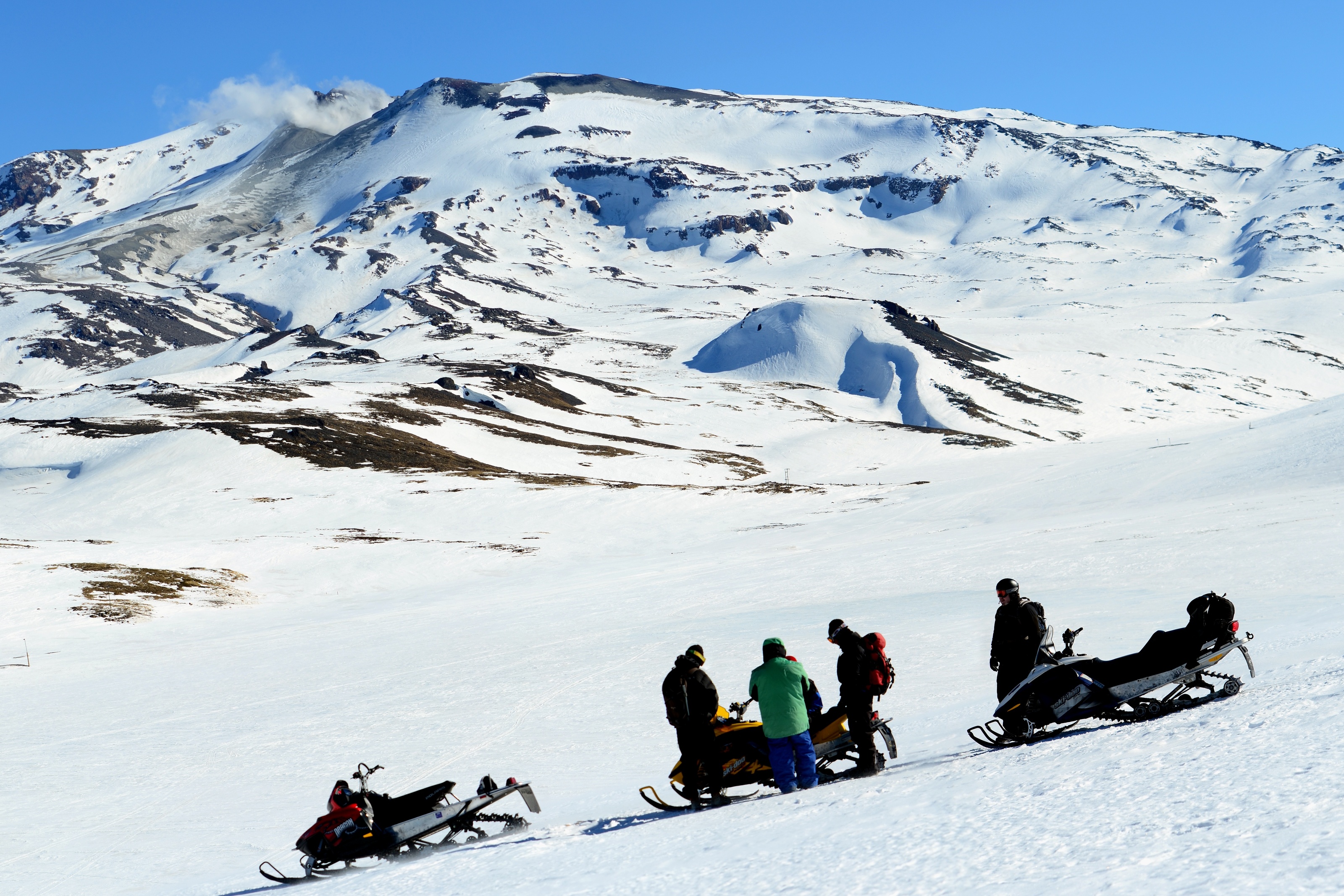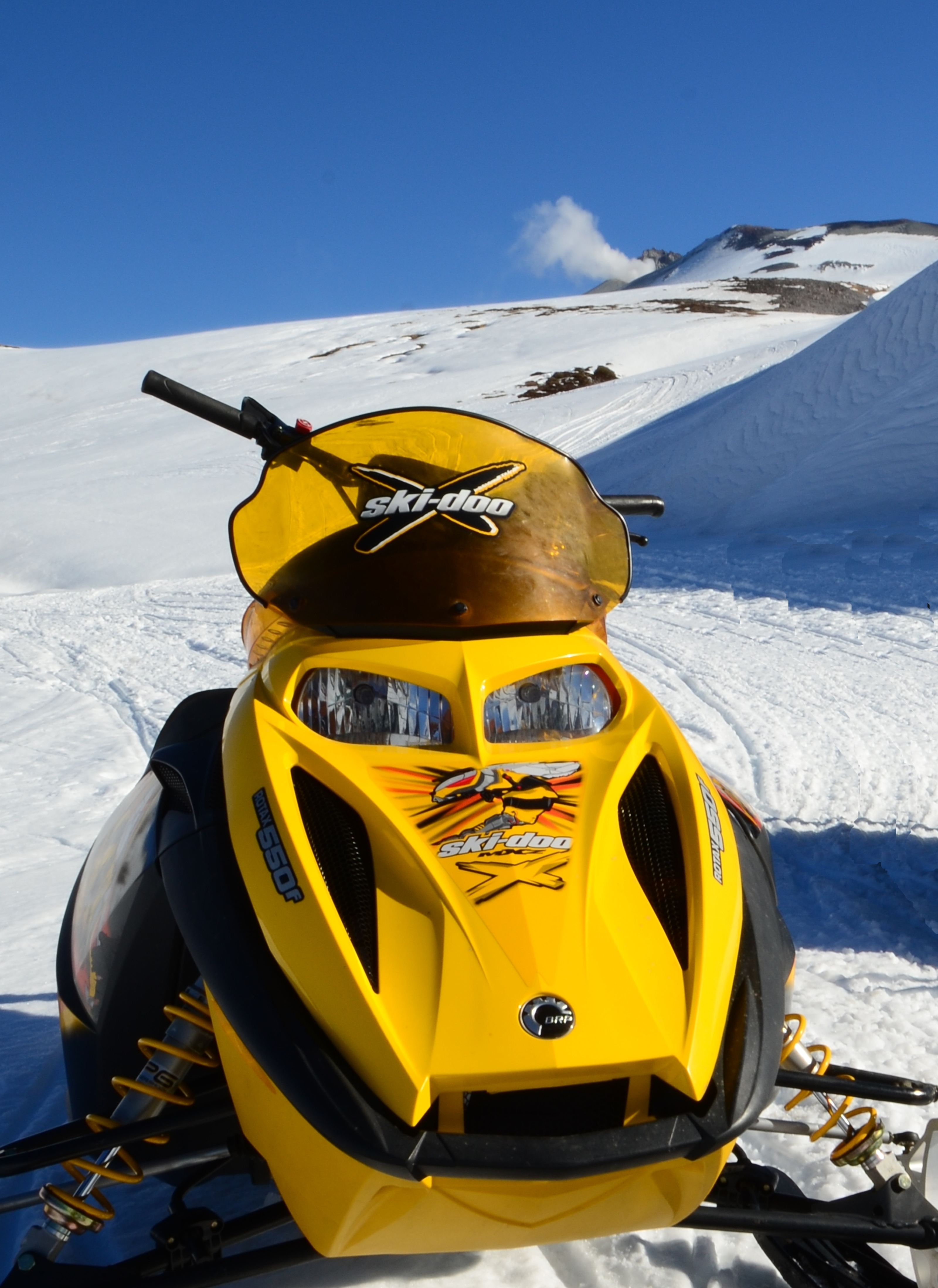 On our second day, we took a snow mobile tour with eneQene guides. The tour started with a small 4WD drive off the resort, and then we rode half a day on snowmobiles around the volcano area. It was my first time on a snowmobile, and I was surprised how hard and difficult driving on them is. Compared to skiing, one has to be far more careful about where to take the snowmobile; steeps and side-way slopes are off-limits. It was also a lot of work - at least as a beginner - to control the snowmobile.