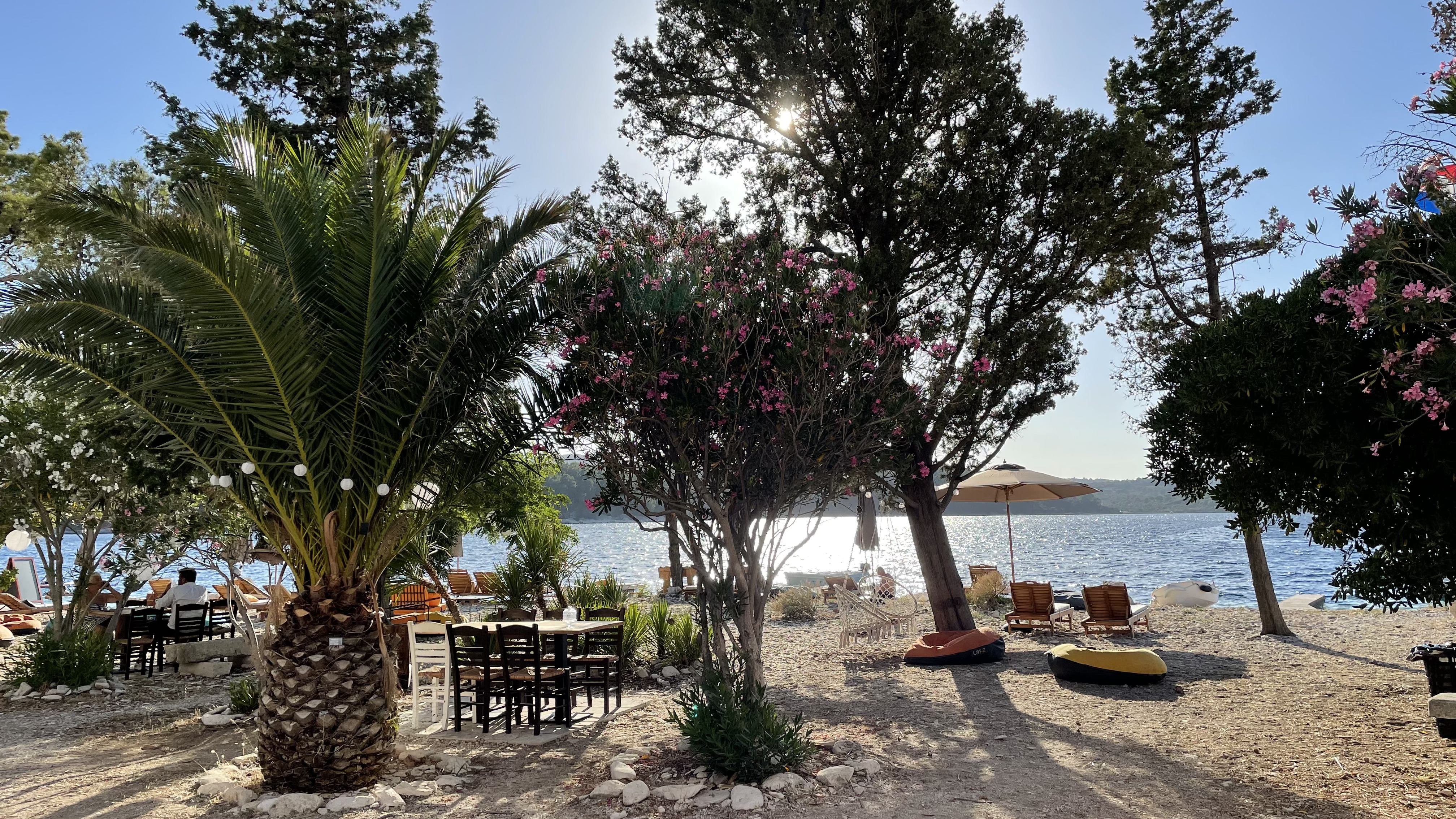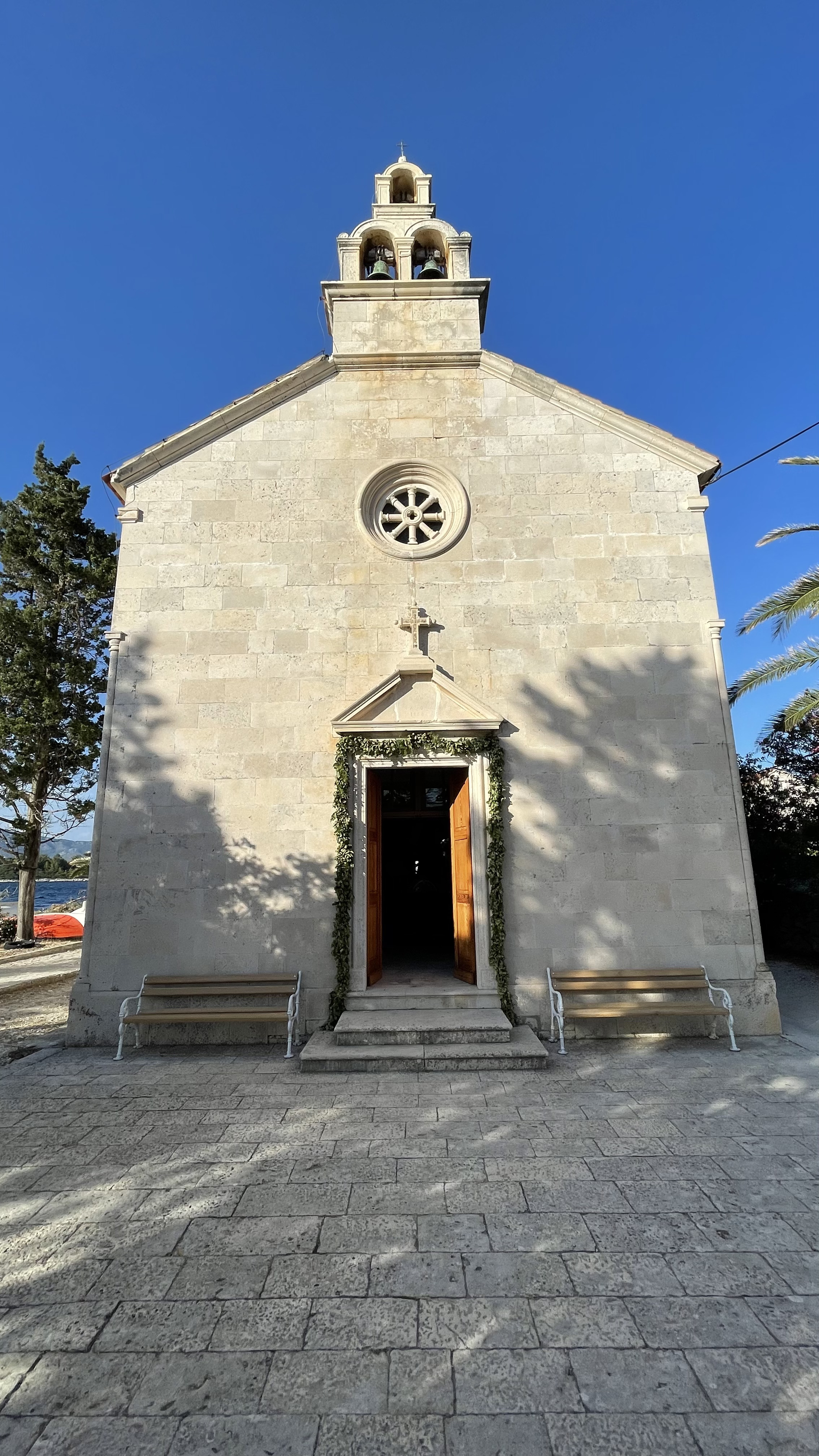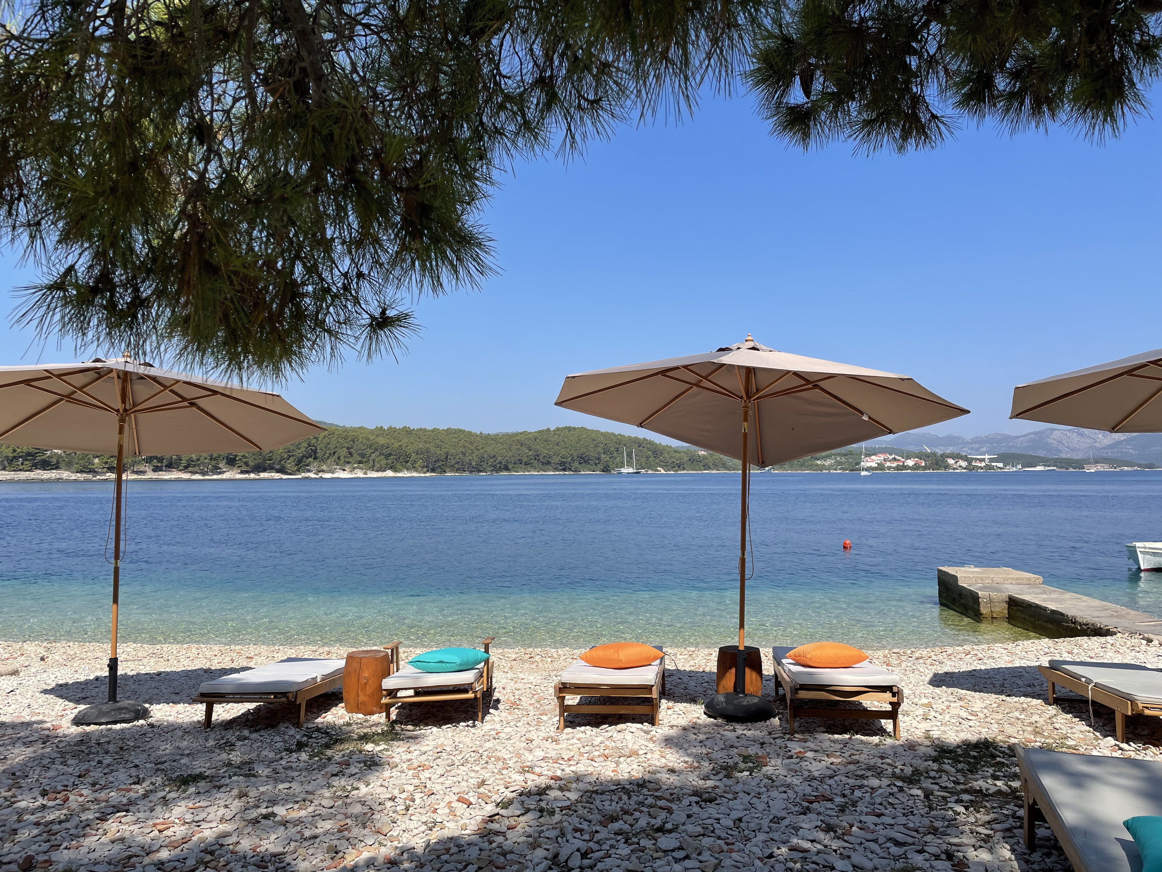 But the beach is where the church is, the taxi boat harbor, and the fine-dining restaurant (The Arts Club) is. The beach coordinates are N 42.937802 E 17.166205.
