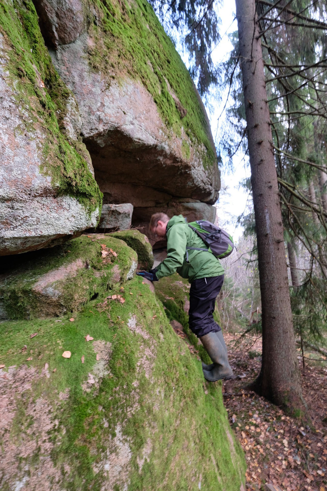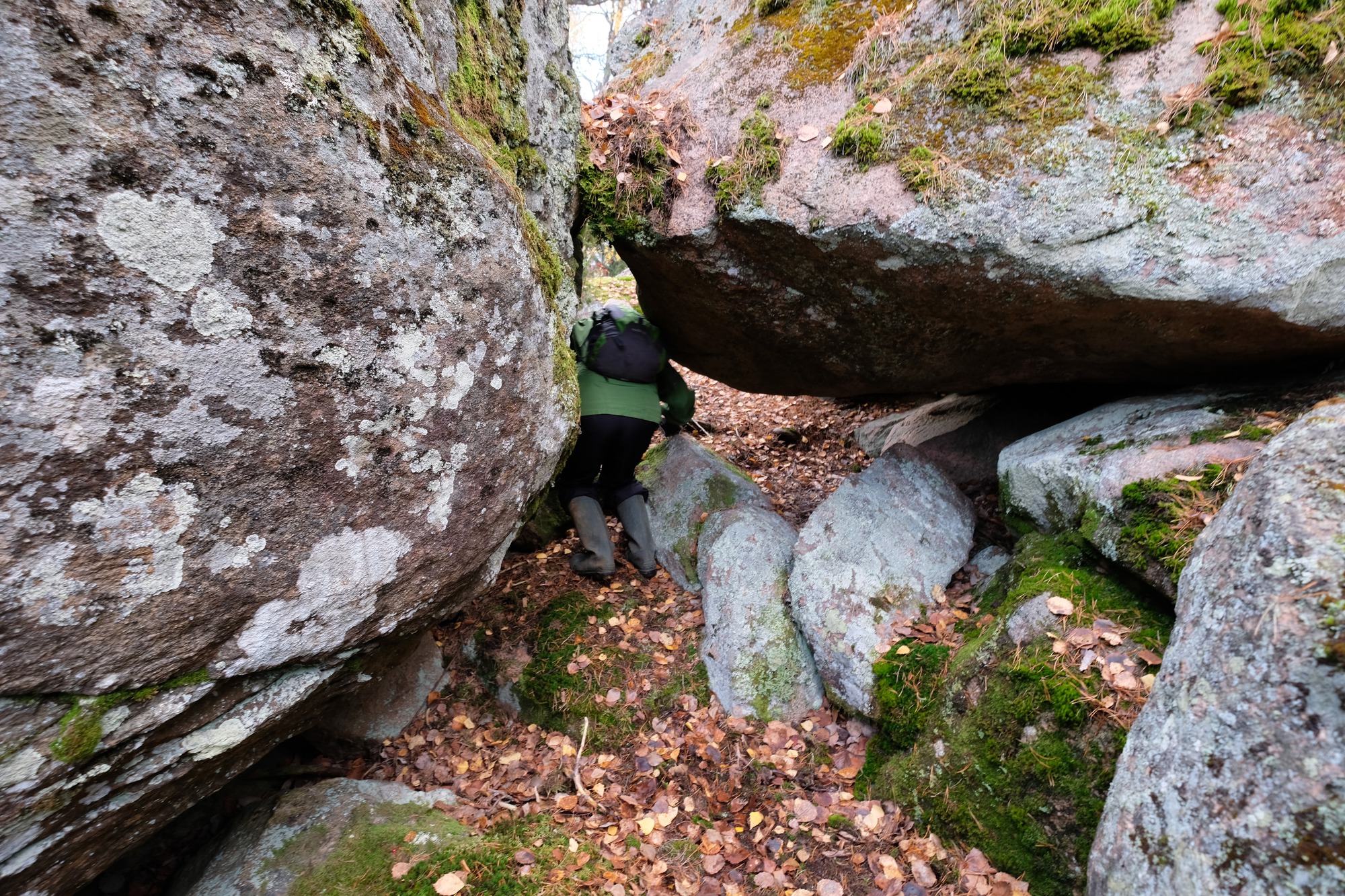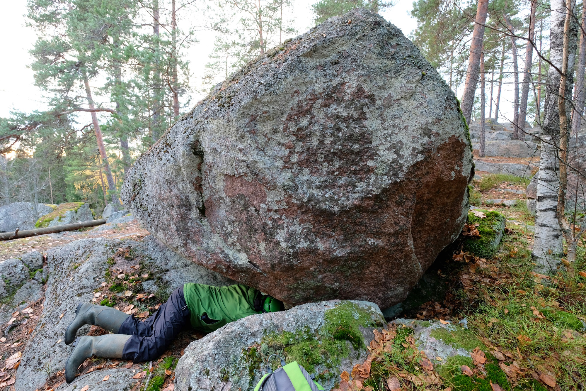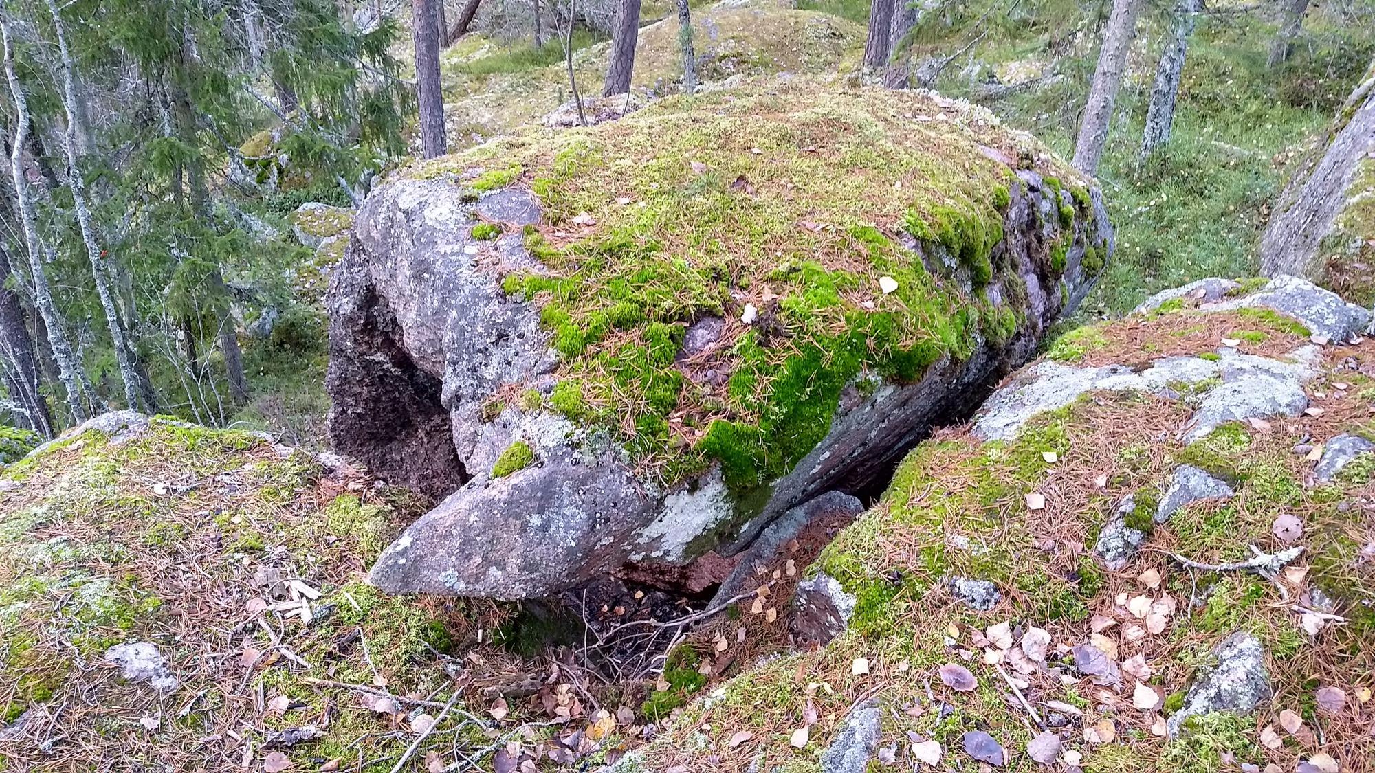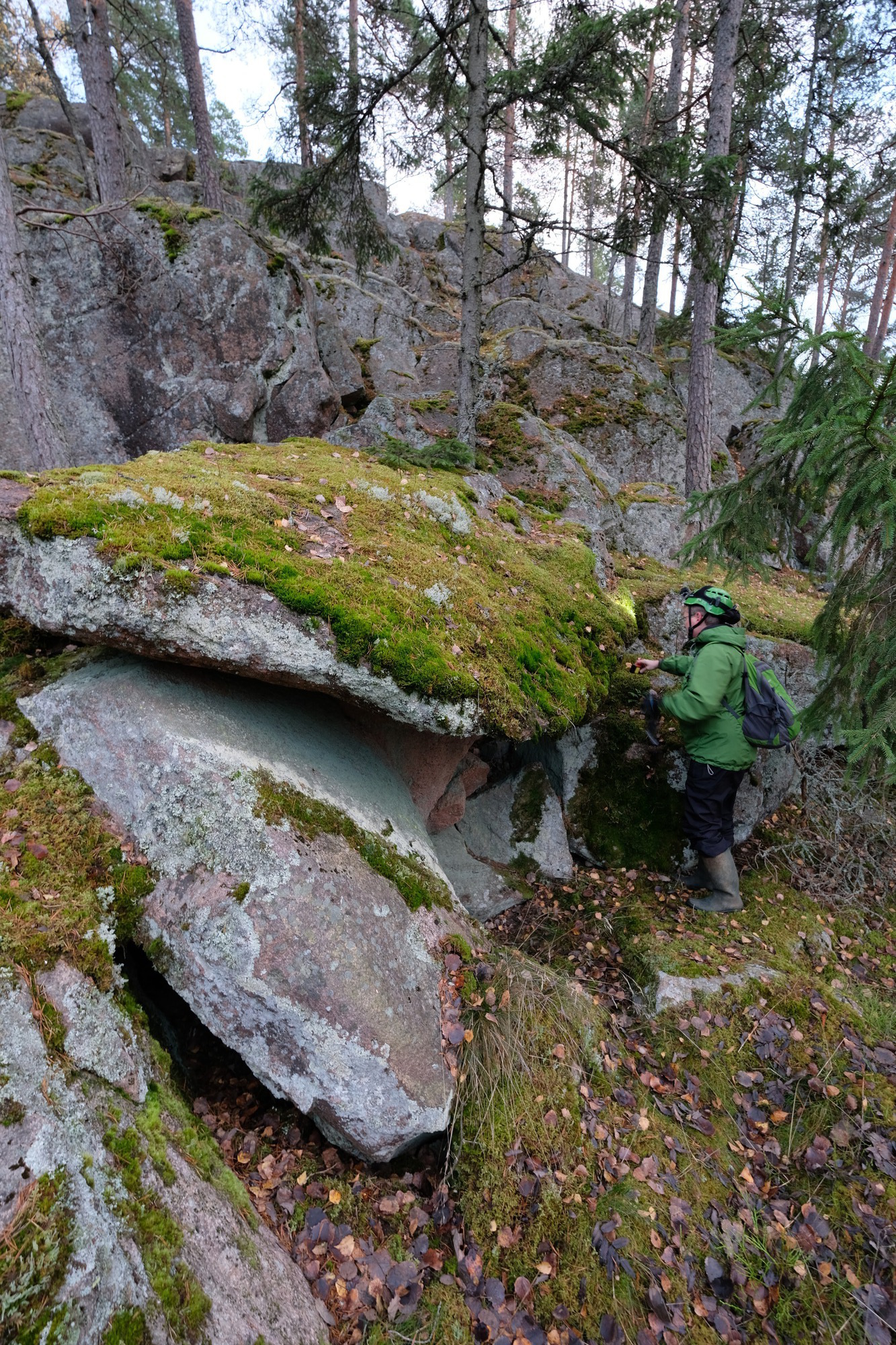 It is the usual story, a "Suomen Luolat" book tells that there's a cave at certain coordinates. But when we show up, our GPS and the coordinates don't quite match. And there are caves around, possibly several, although we're not quite sure which ones the book referred to.