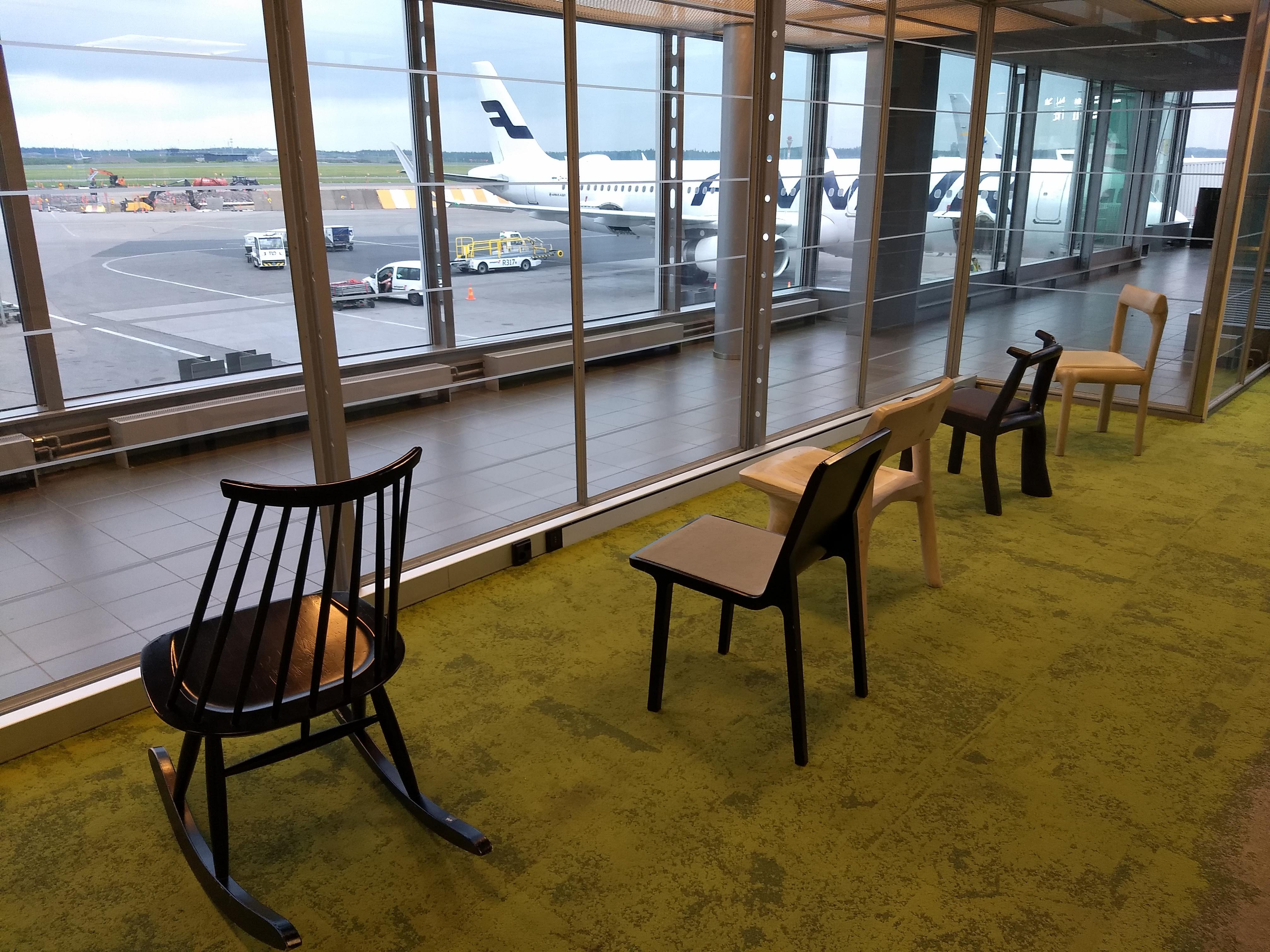 Quiet place, green grass, views, a rocking chair... at an airport. Hard to believe, but there is this lounge at HEL called KAINUU.
