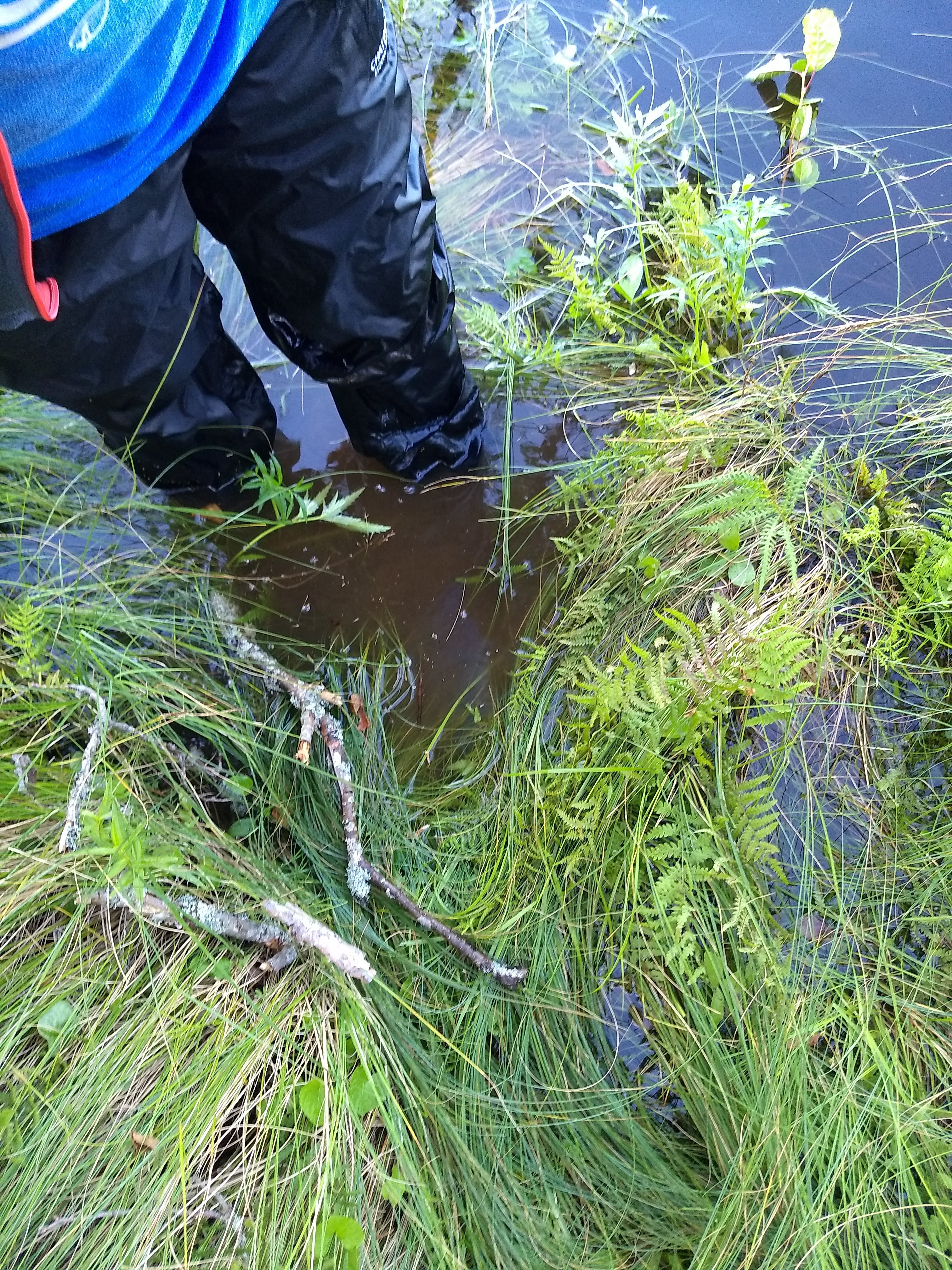 Today's swim was at the Träskbyträsket ("lake village lake"). Nice swim. The only thing was ... that the lake is in the middle of nowhere, and as I approached it, it became apparent that is surrounded by a swamp. Getting wet before getting wet in the lake.