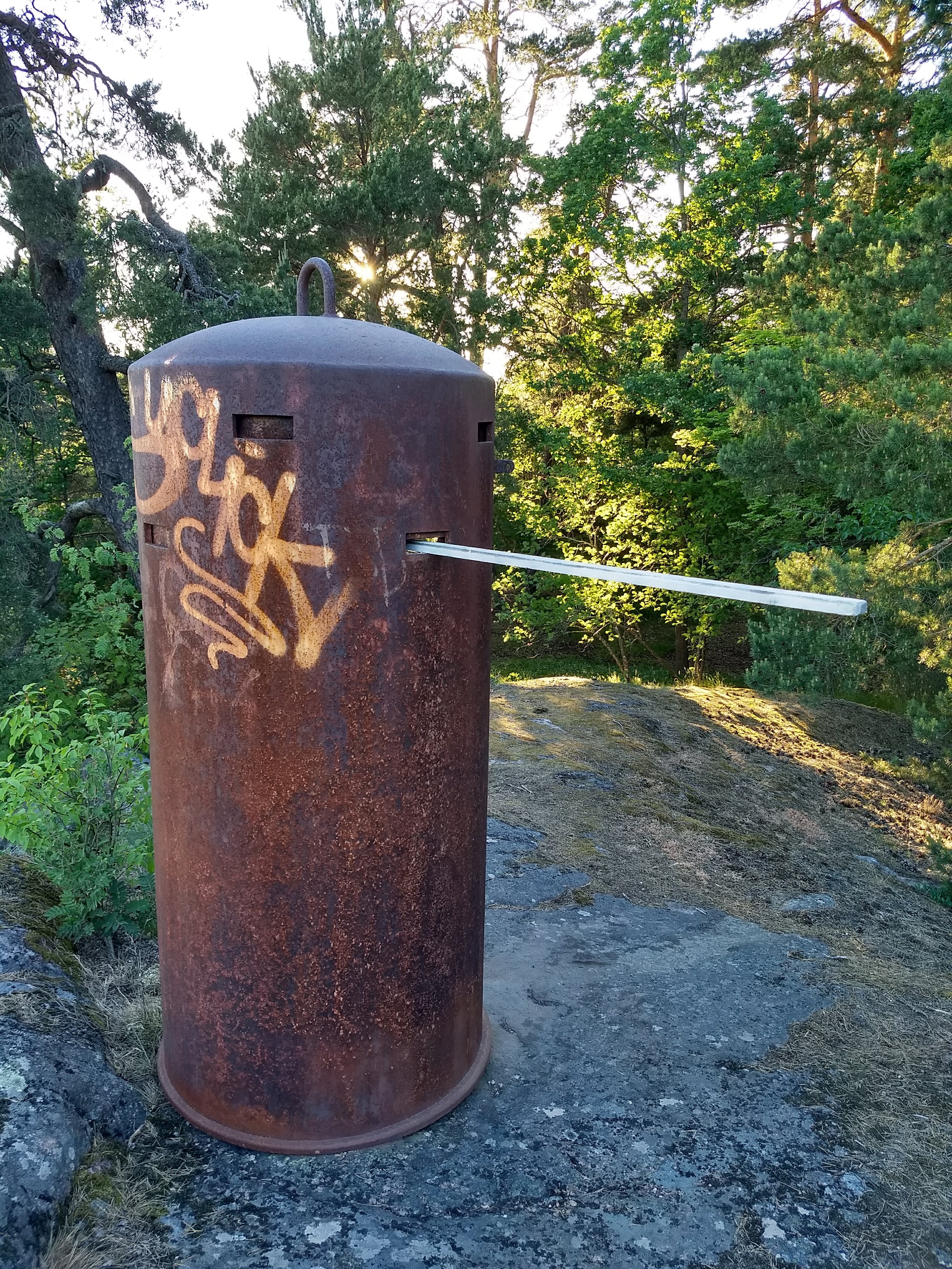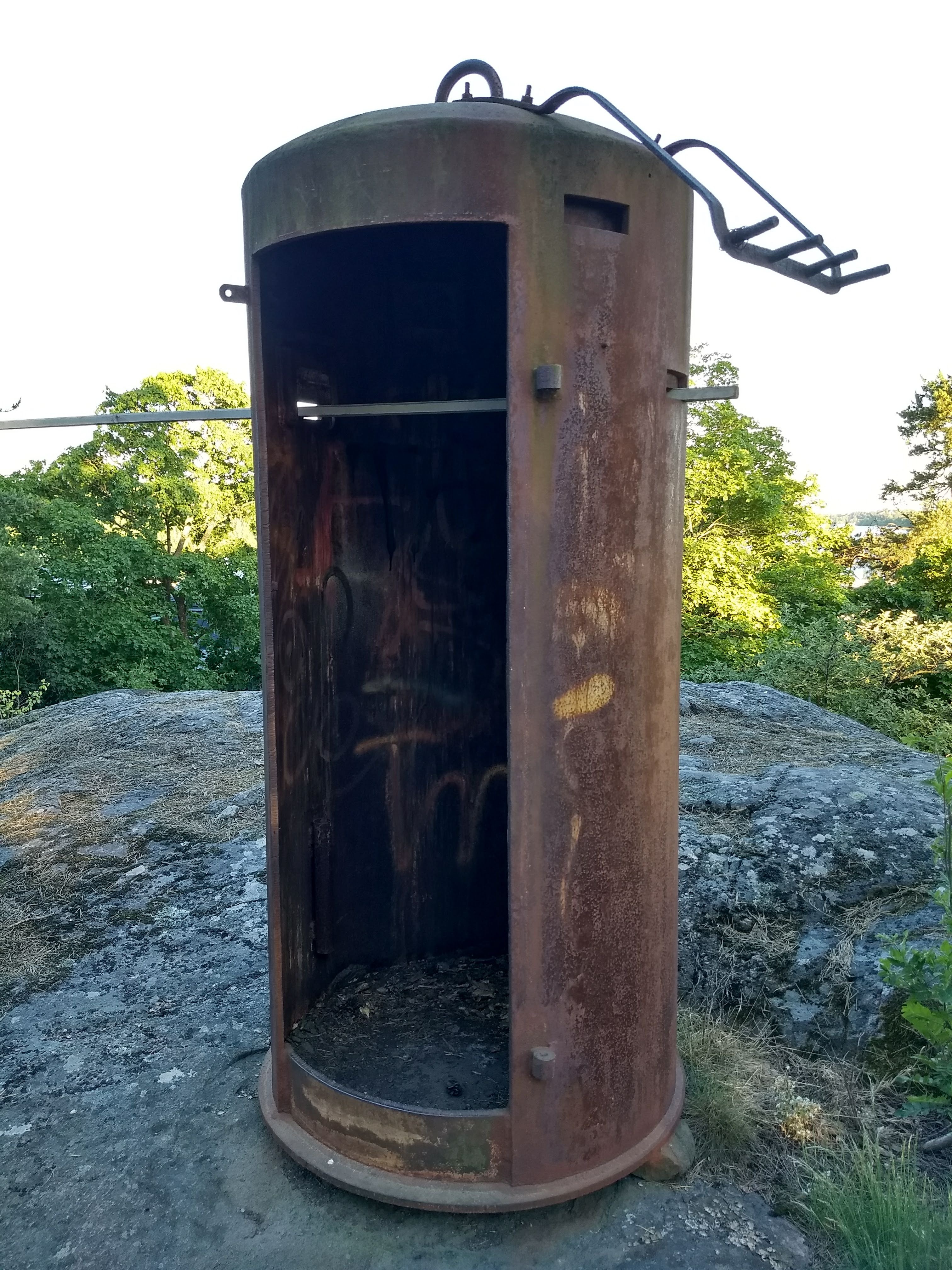 Mystery metal hut. I was looking for an entrance to a tunnel I saw in Rotebro, but was in the end unable to find a way in. I did, however, find an odd, round metal hut at the top of the cliffs.