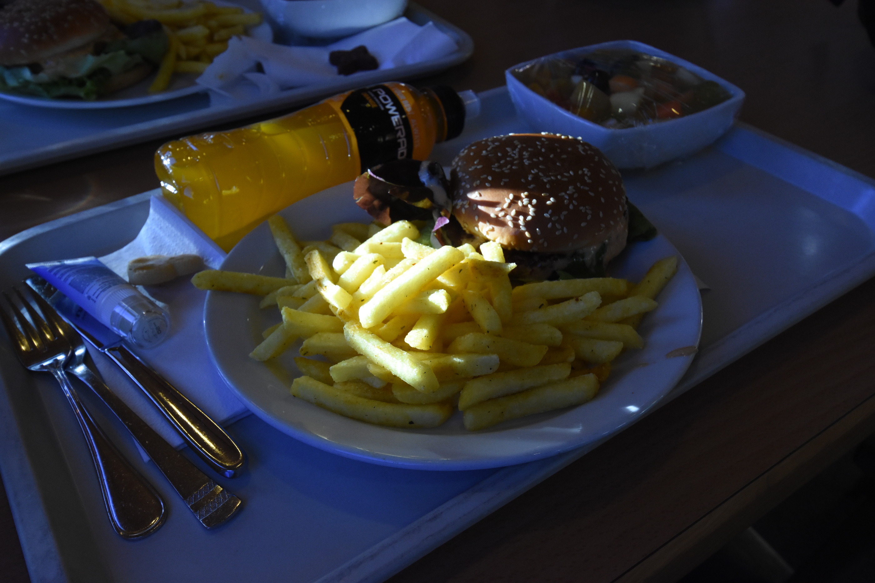 Two burgers, two cokes, two desserts: 80€!