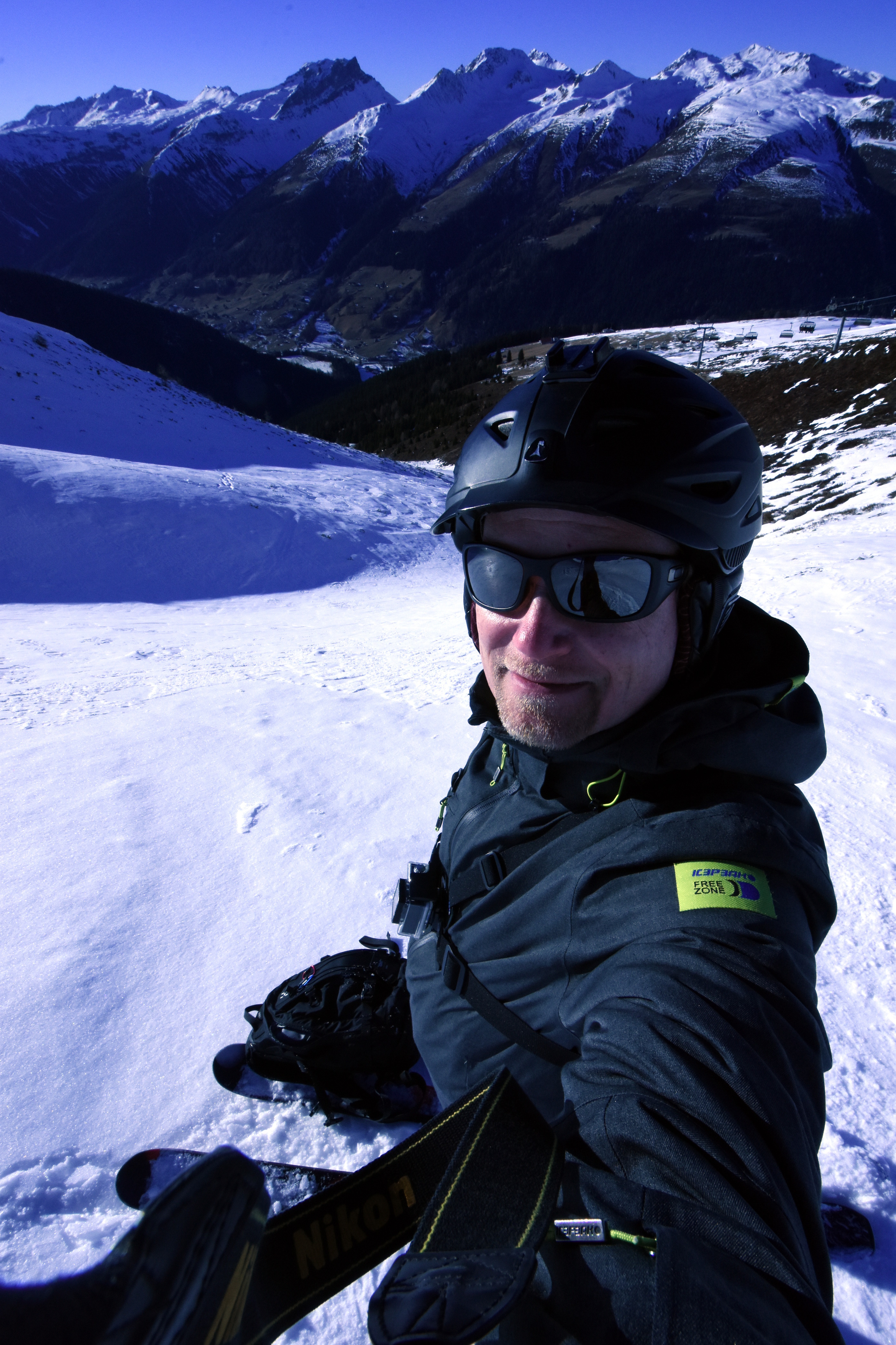Even with the little snow, we found nice couloir or side valley on the right side of the Jatz run. Untouched by other skiers... a bit scary for possible rocks buried in the few centimetres of snow, but a very nice run with occasional deeper patches of soft snow.
