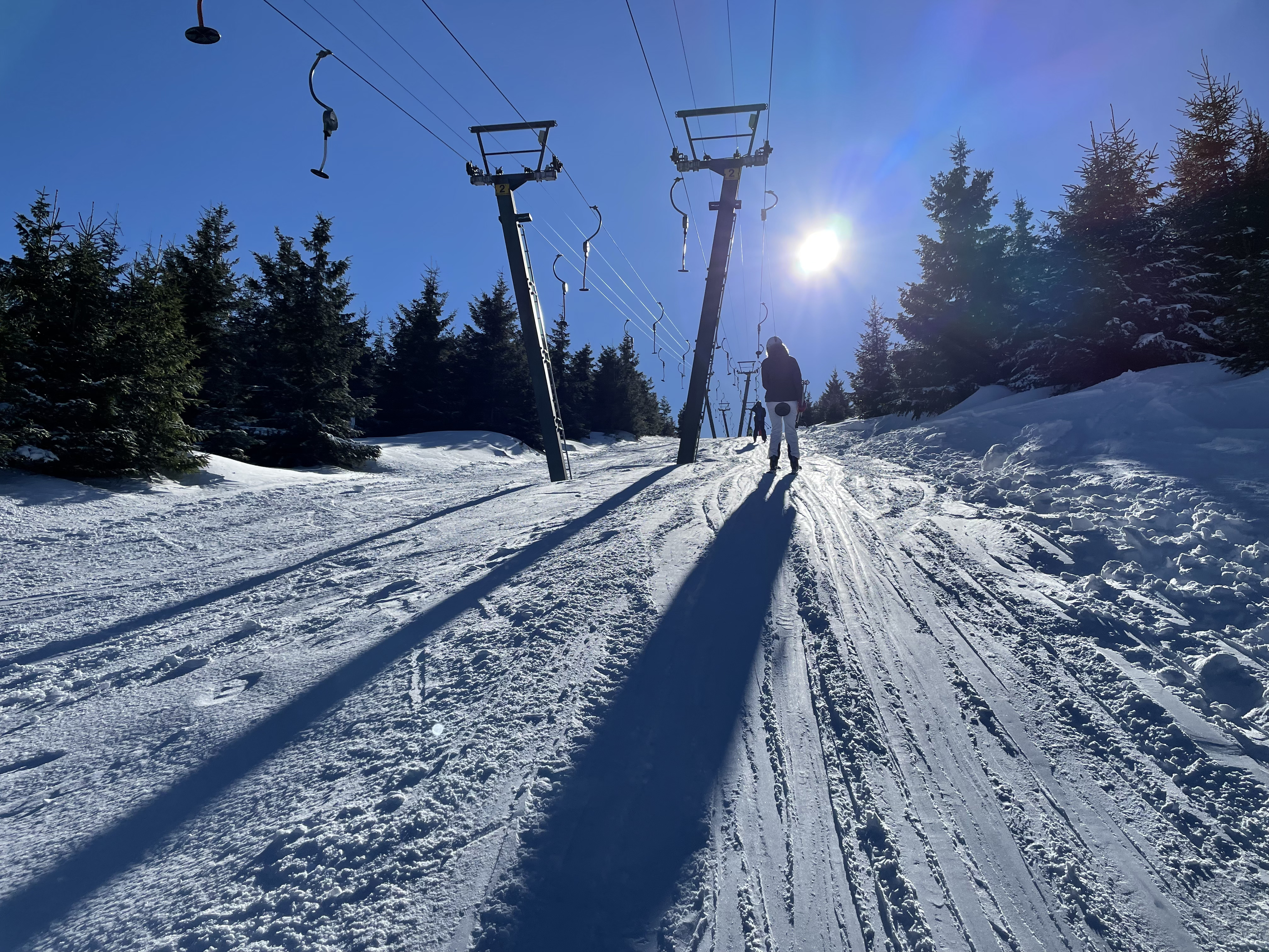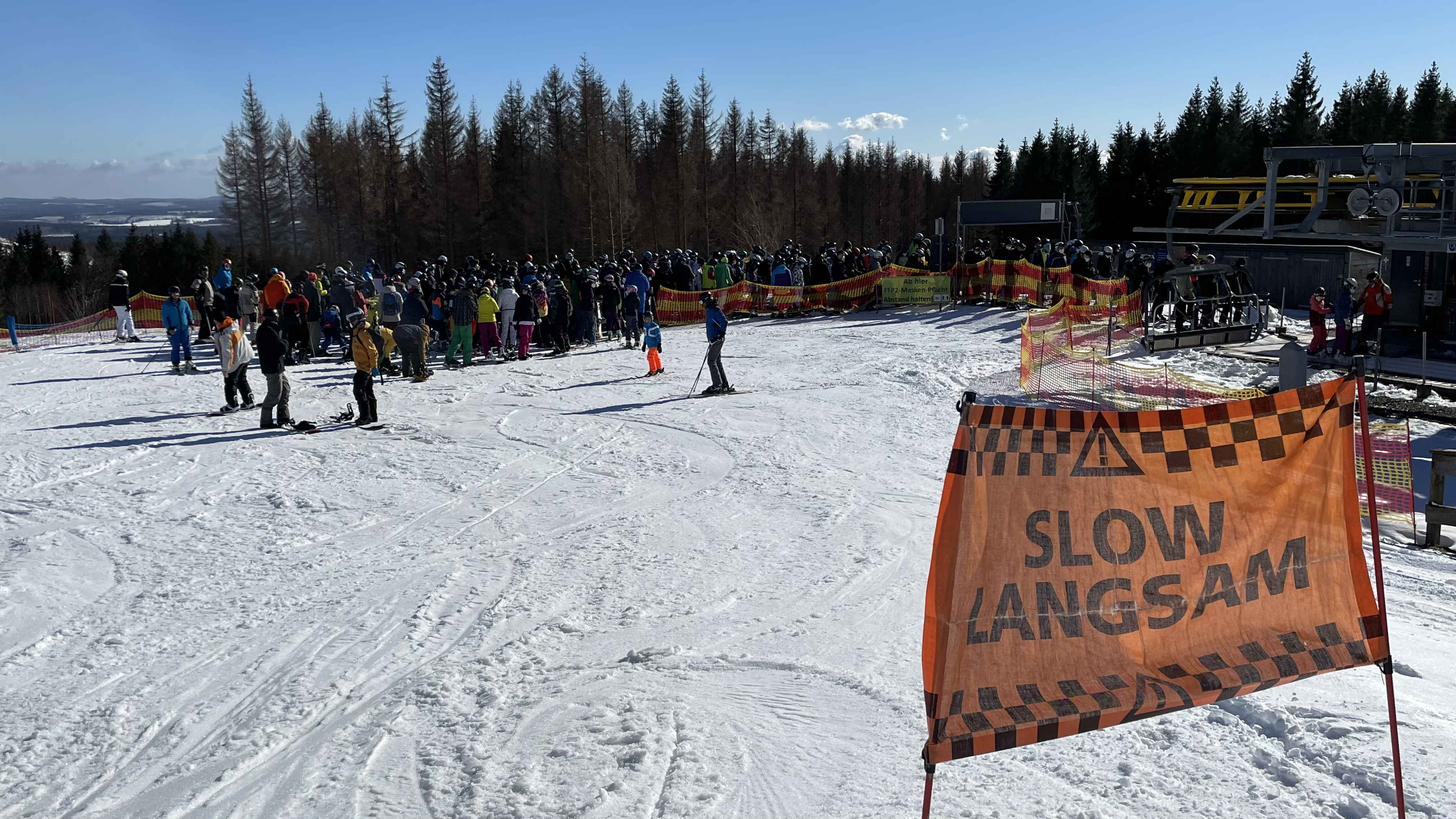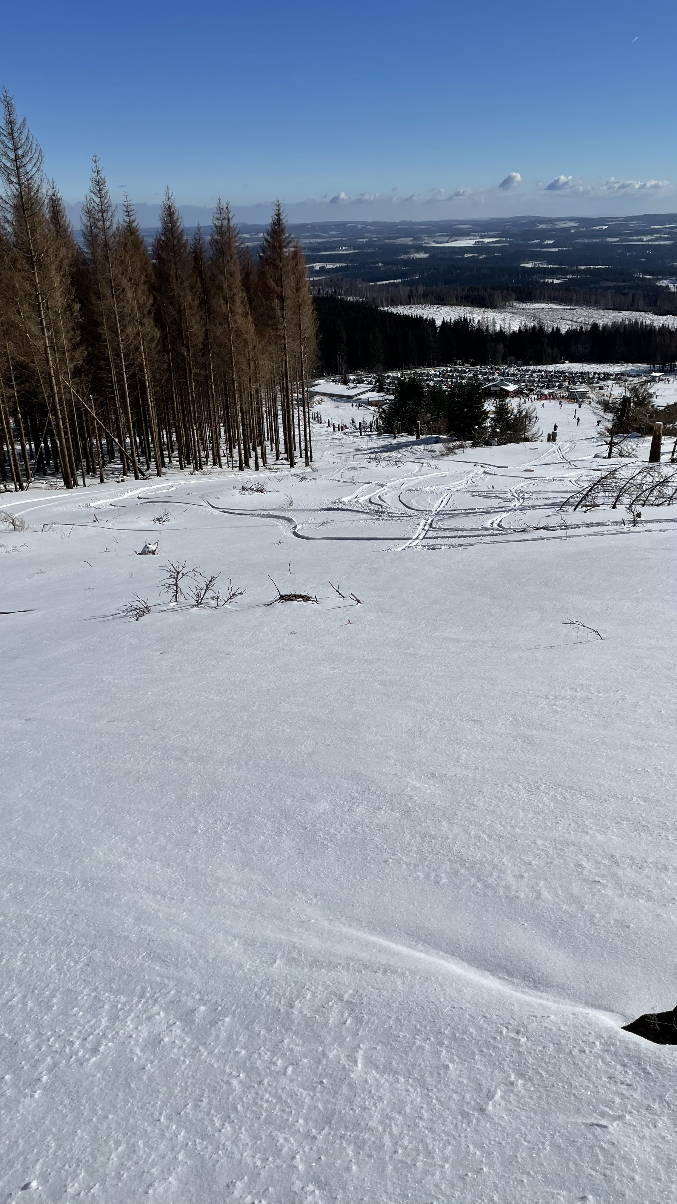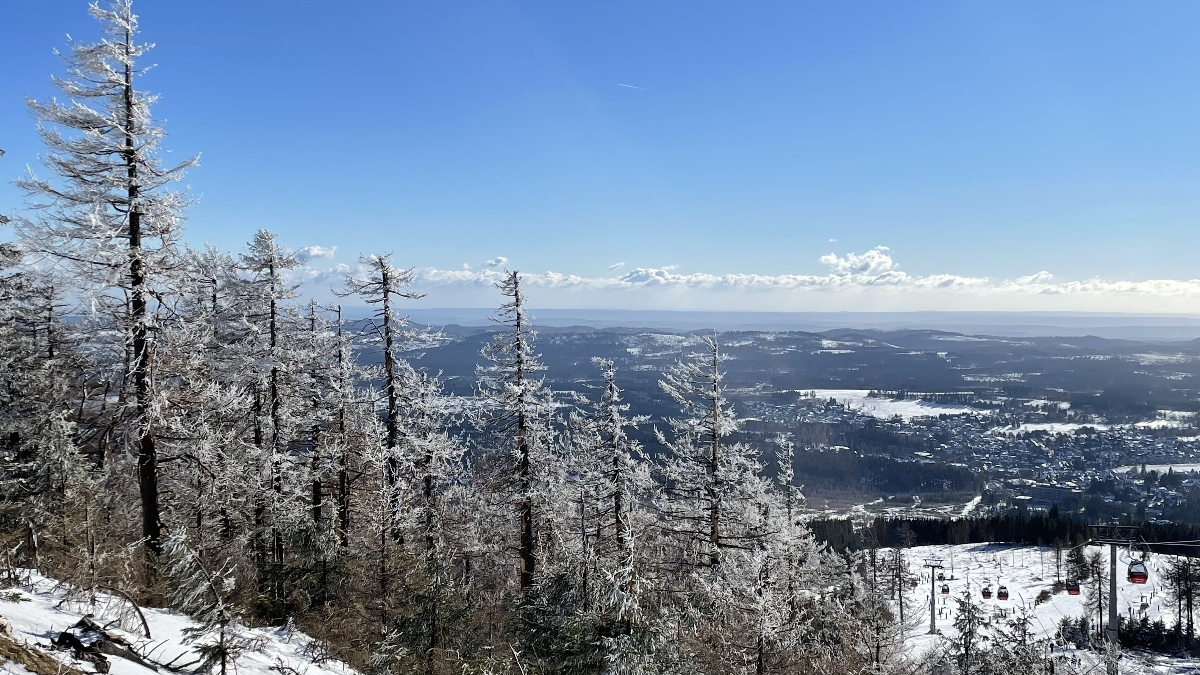 I've never heard of this place. But, it is a cozy national park, relaxing, forest, some caves around... and it is also a 971 meter high mountain, the highest in Lower Saxony. So obviously there's a ski resort with lifts. Including a gondola! The views are nice, the weather like sunny, and to my luck there was also some fresh snow on the sides of the ski slopes. Can't complain: