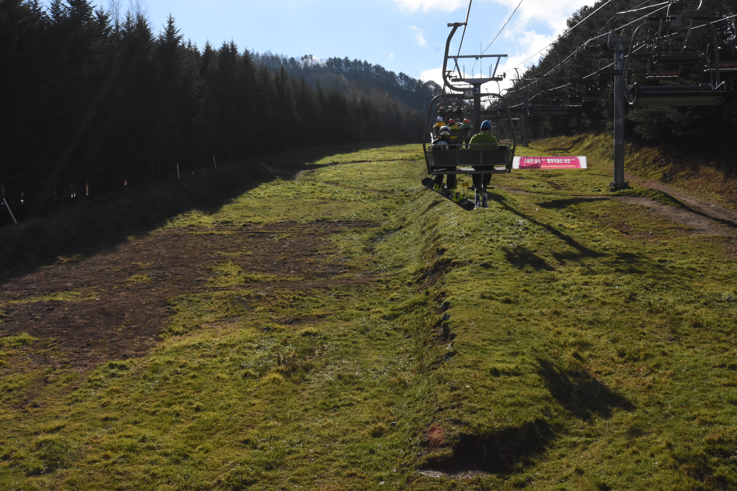 I had been working sixteen hour days for the last ten days in Seoul and fried my brain in the process, so I asked Chloe from the hotel concierge to tell me where I could find snow. She drew a map of Korea for me, starting with the crux over the north part: "don't go there". Probably good advice :-) She drew the mountain ranges, and started calling the ski areas, even if it was too warm for them to be open this year at this time. But to her surprise, there was one that was open.